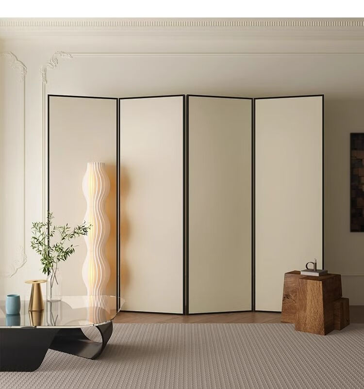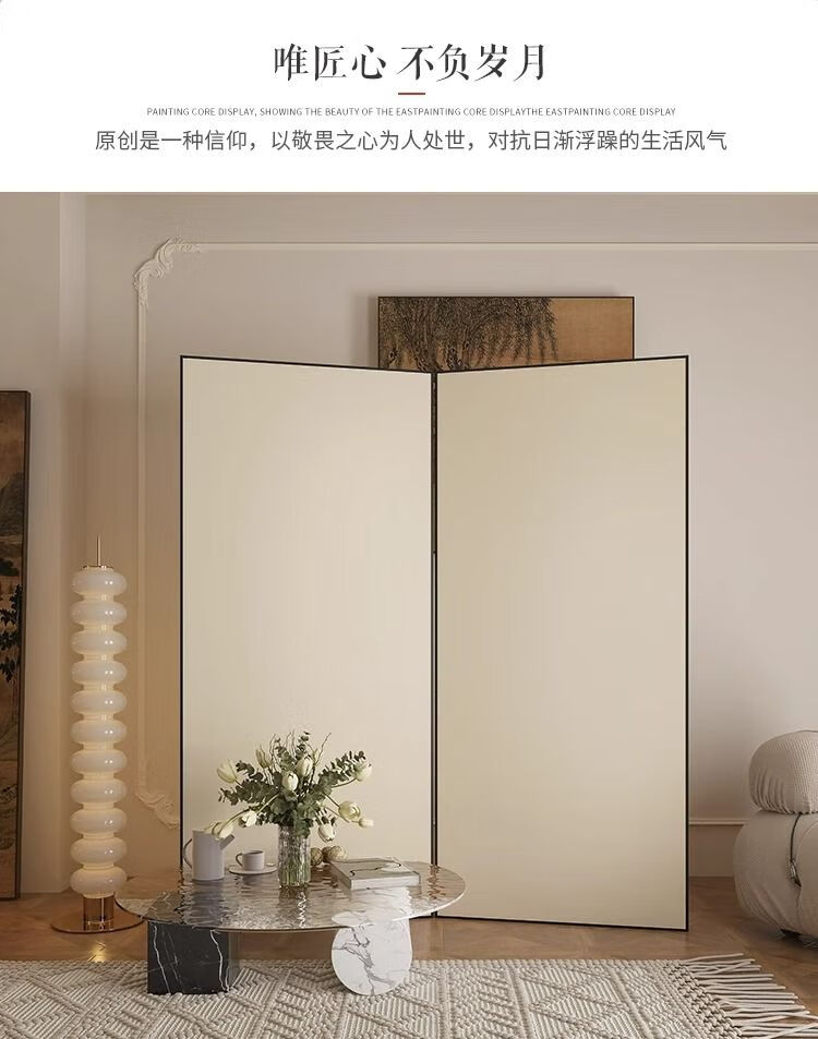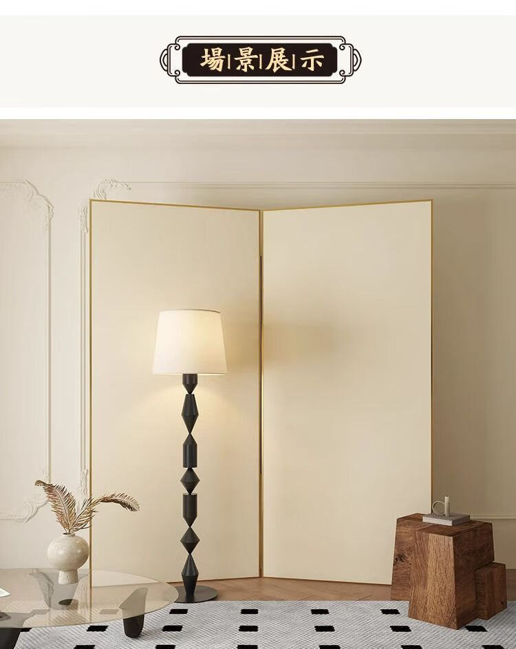 欣慕雅直播间拍照背景墙奶油风屏风隔断现代简约客厅可折叠移动2025新款 防透(边框颜色默认金黄色) 2扇:100CM宽180CM高