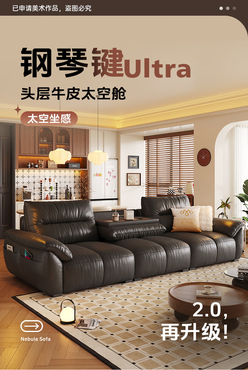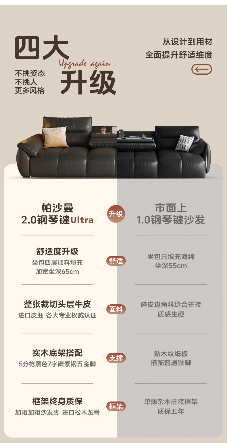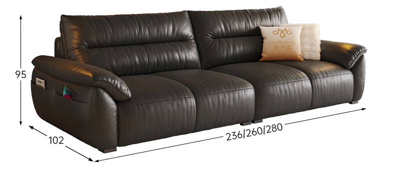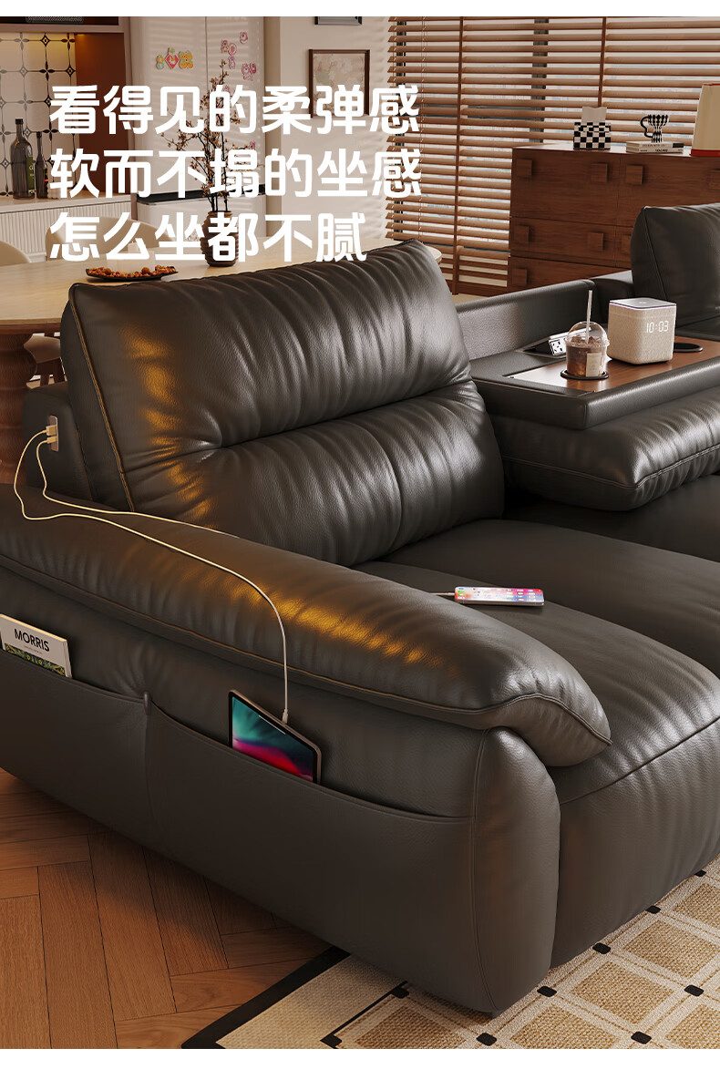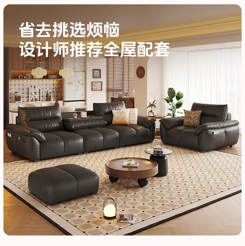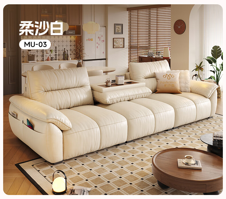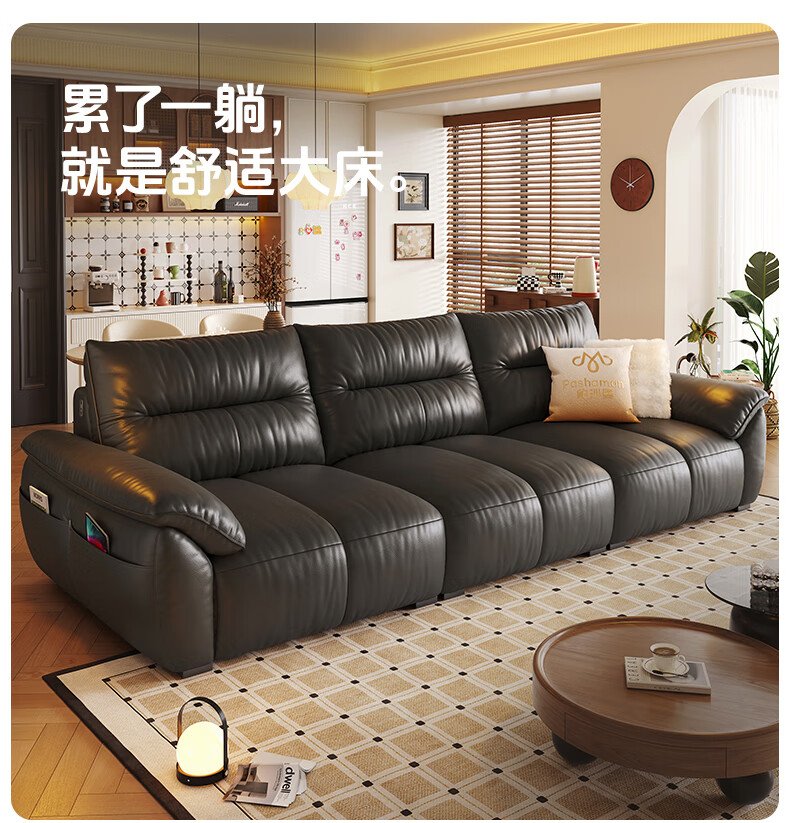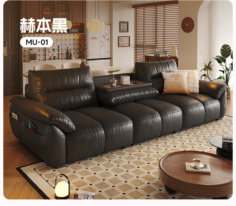 帕沙曼真皮沙发钢琴键大象客厅复古新款多功能快充储物高靠背沙发7226ZP 【升级款·翻倒几·快充】2.99米多人位 【舒享版】MU真皮 轻弹棉+竹炭海绵