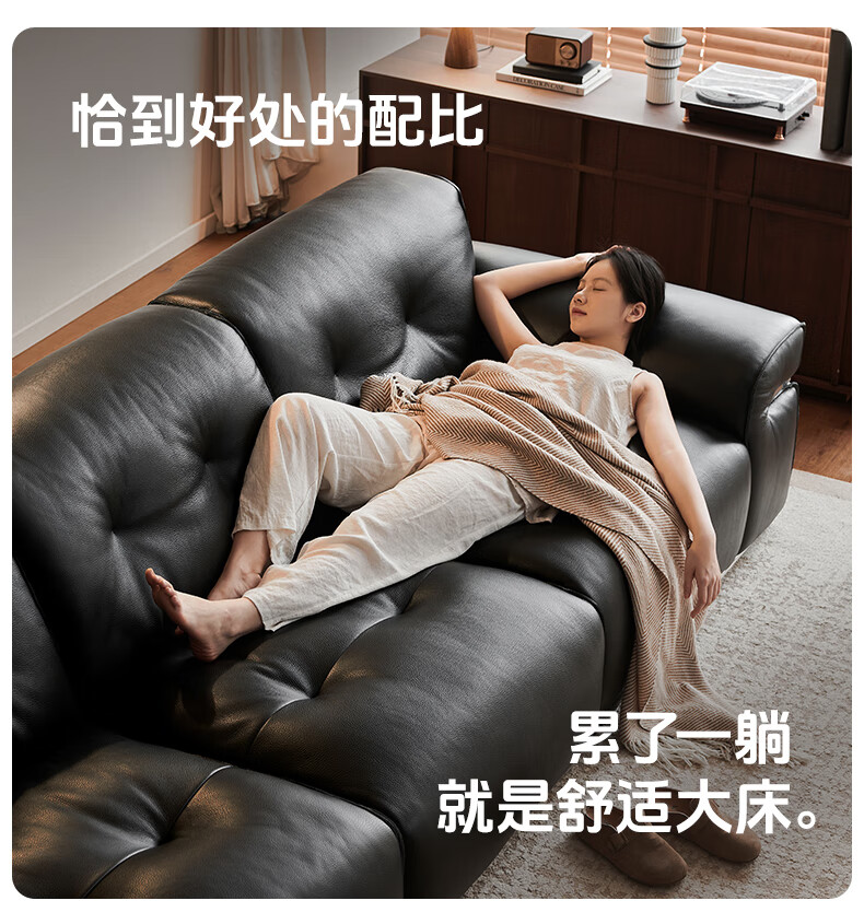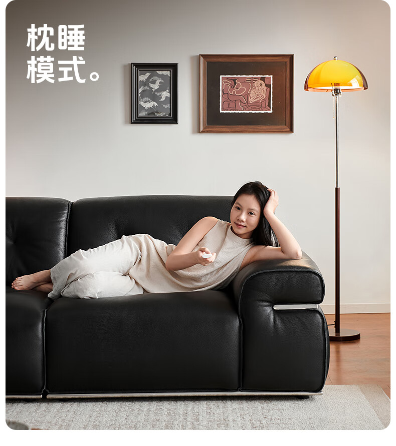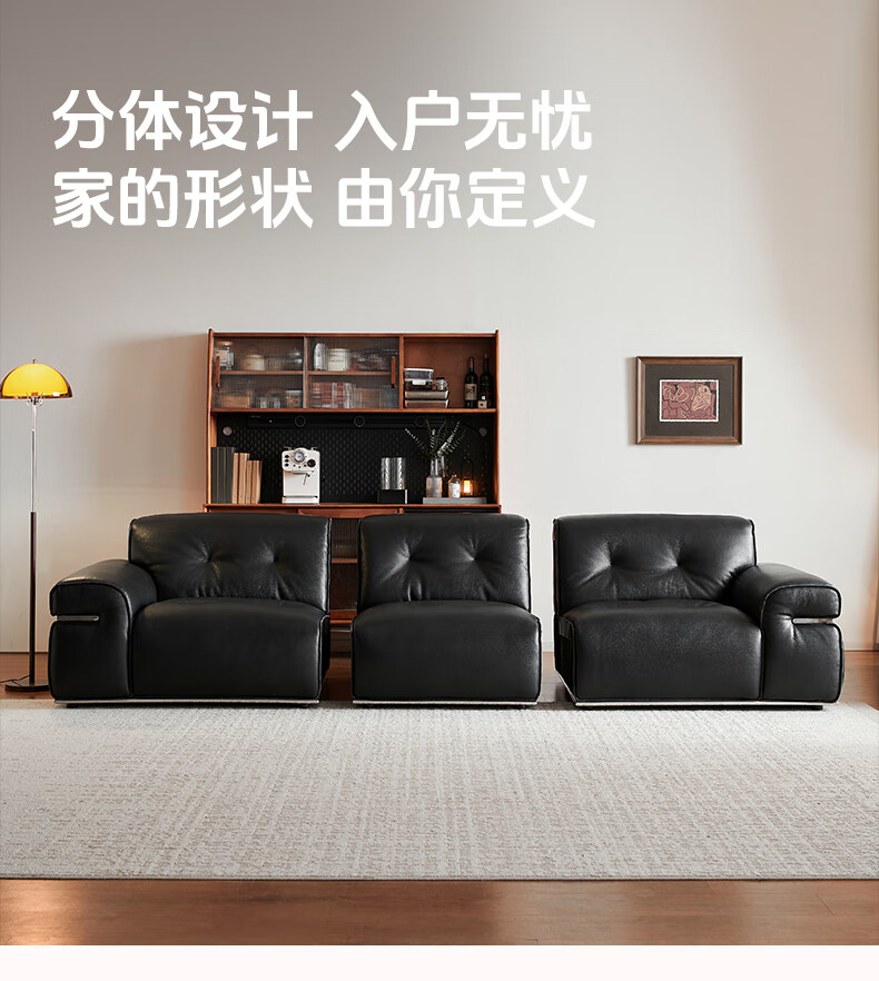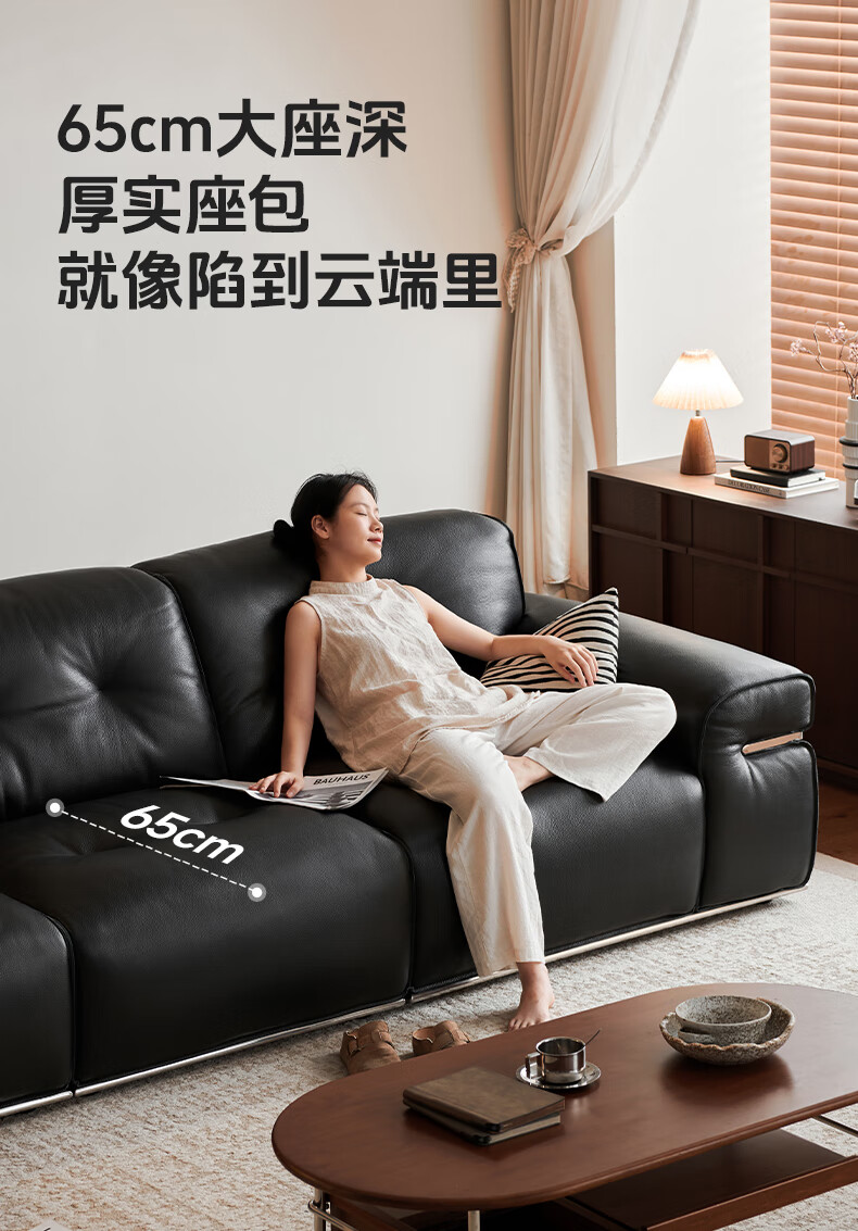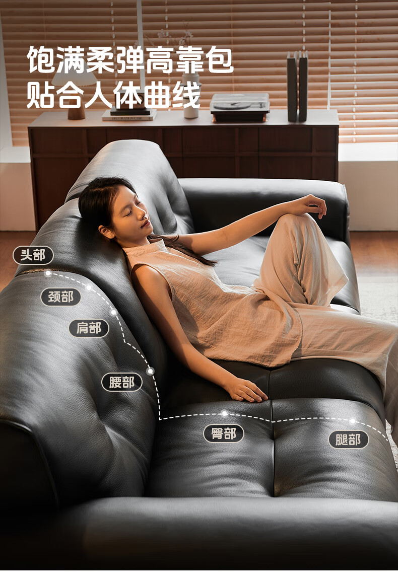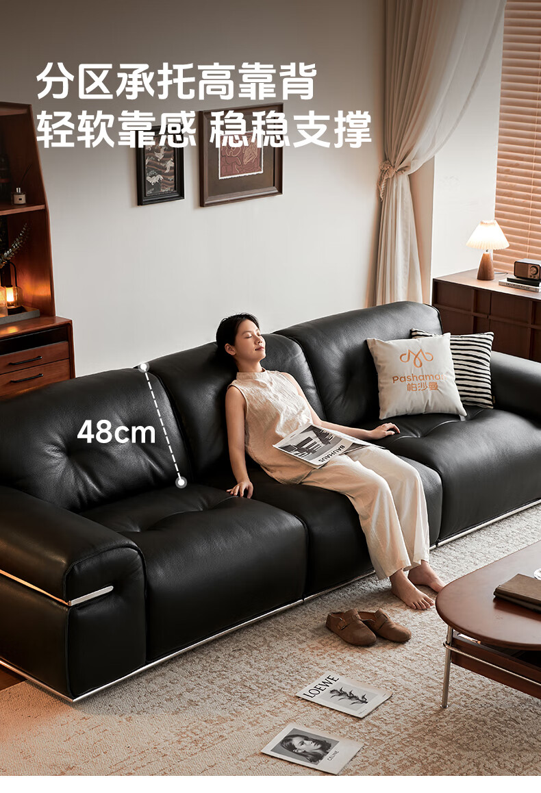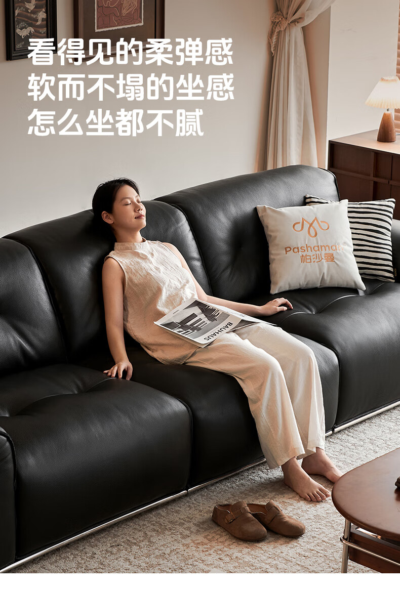 帕沙曼 真皮沙发大黑牛复古风意式极简客厅轻奢大座深小户型沙发7206ZP 3.17米多人位【全新零压坐感】 MU全真皮