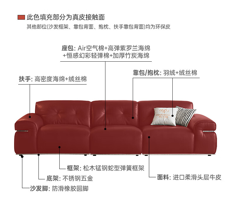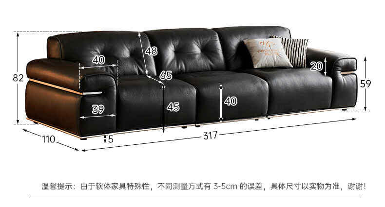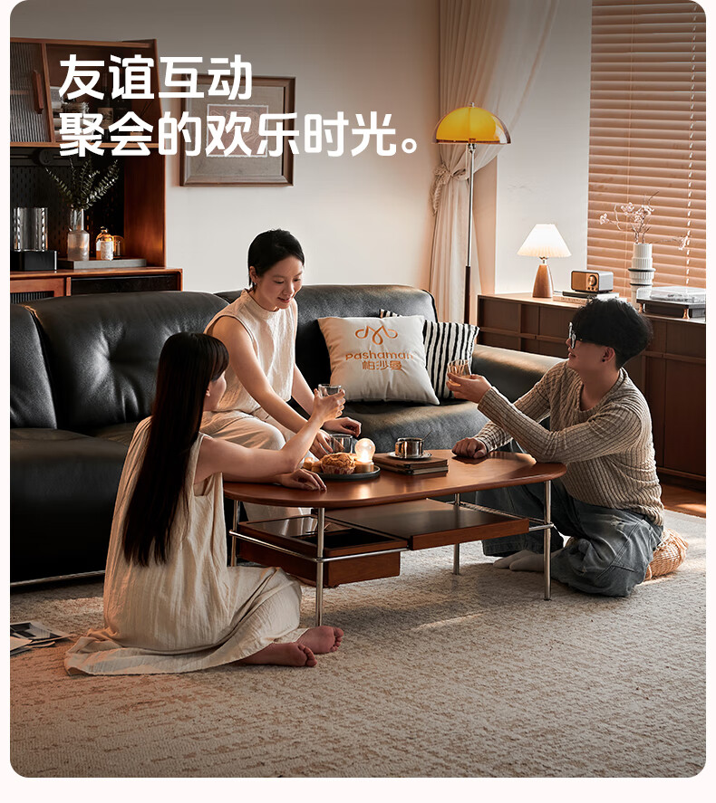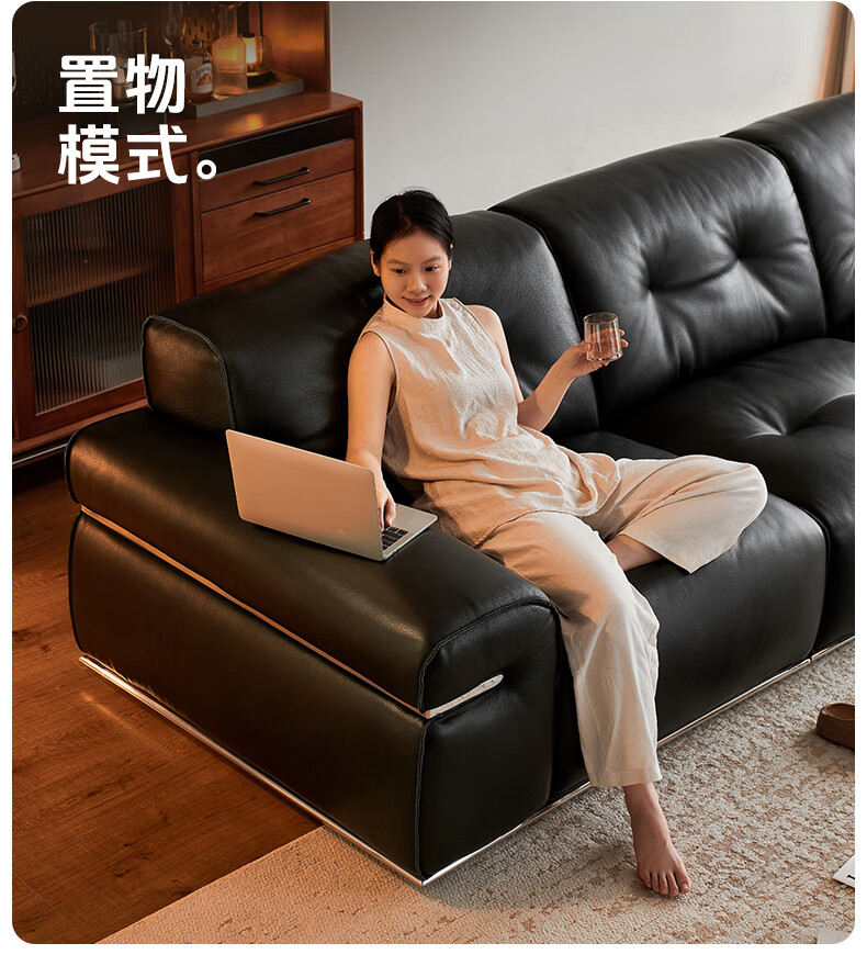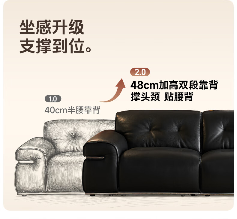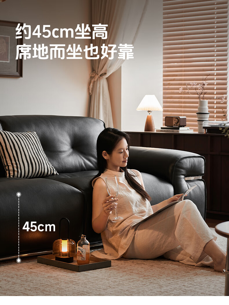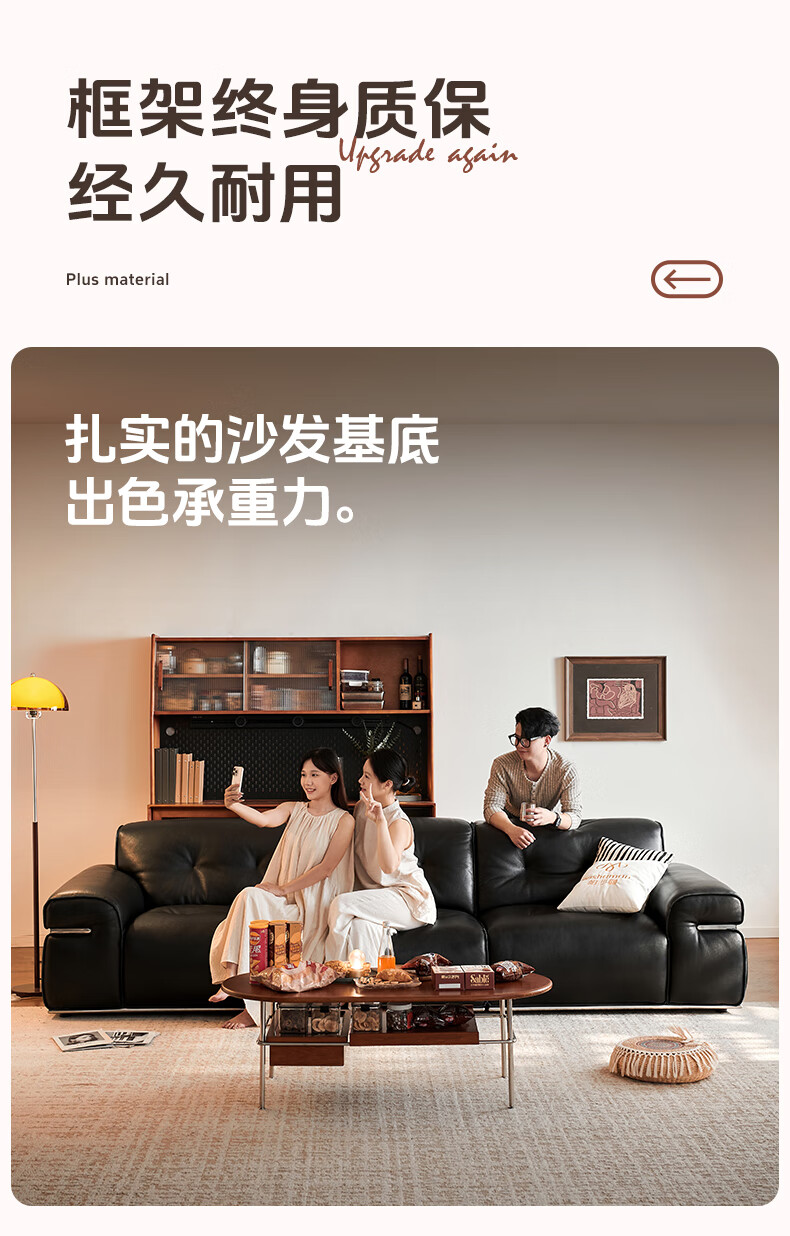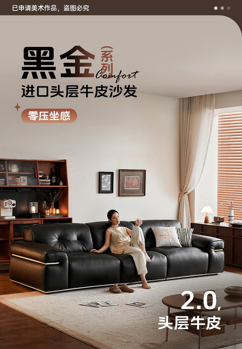 帕沙曼 真皮沙发大黑牛复古风意式极简客厅轻奢大座深小户型沙发7206ZP 3.17米多人位【全新零压坐感】 MU全真皮