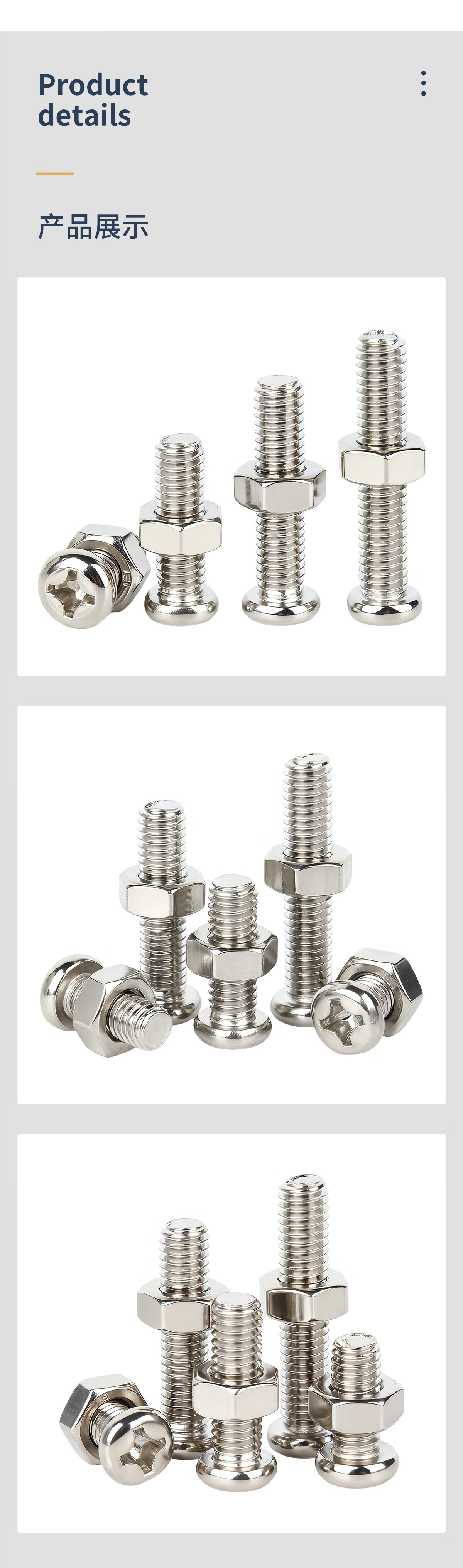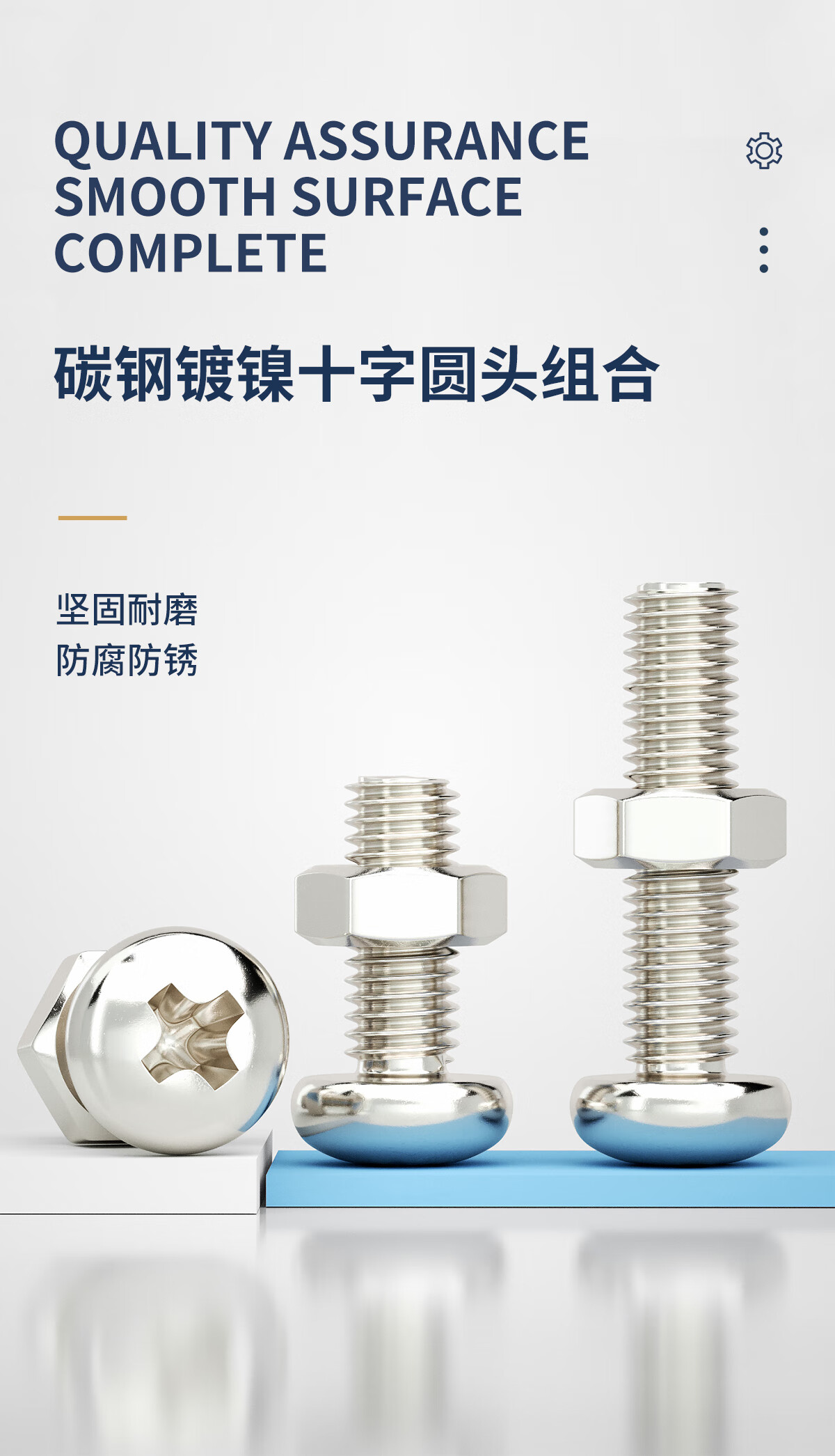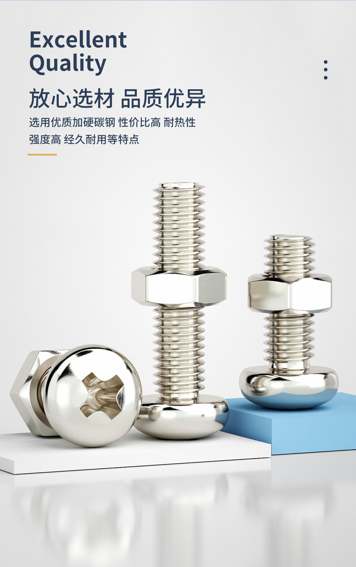 固万基(GUWANJI)铁镀镍十字圆头组合螺丝钉大全盘头带六角螺母套装螺栓M2M3M4M5M6 M2x2头3.5[500套]