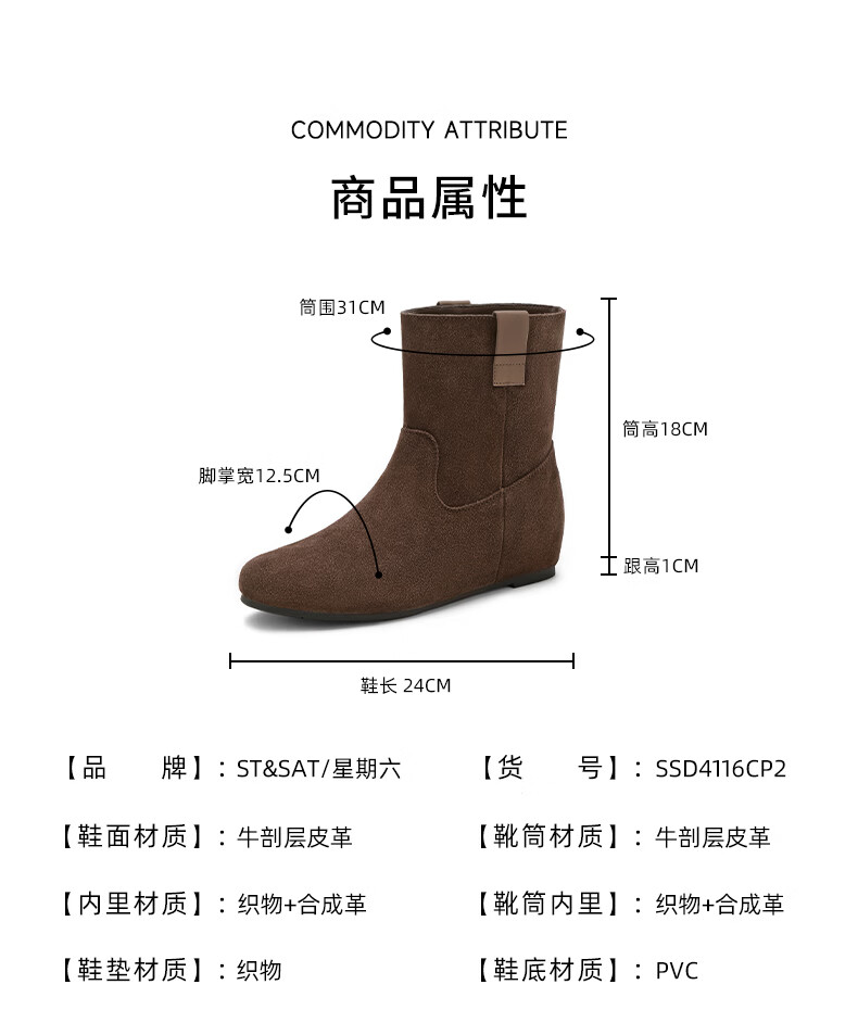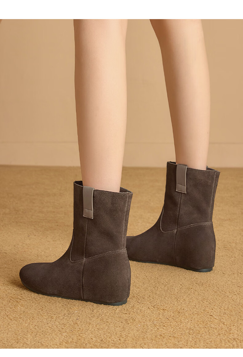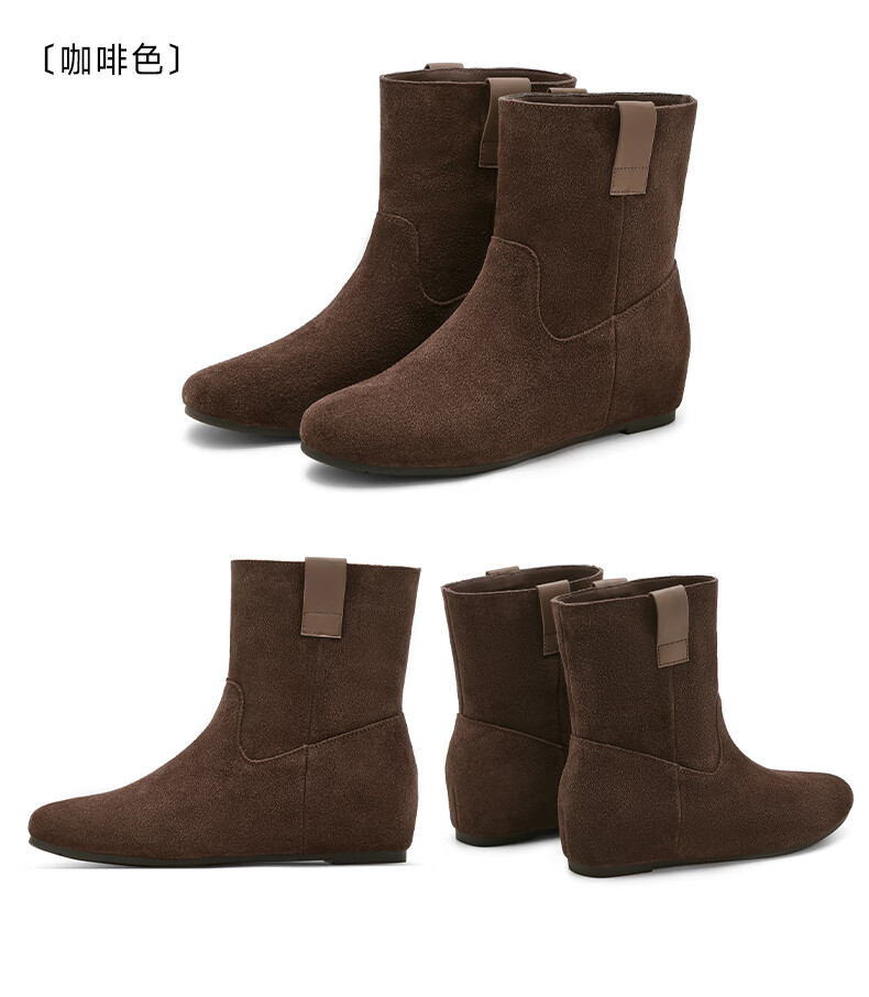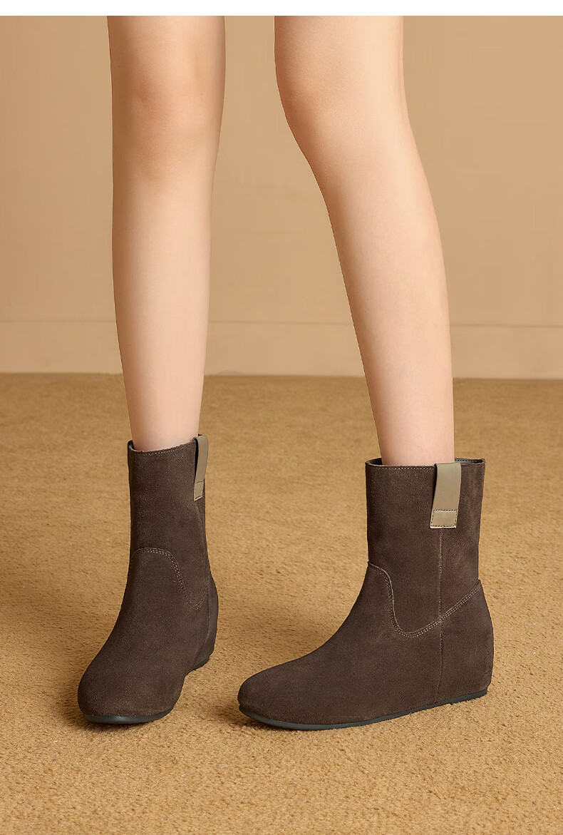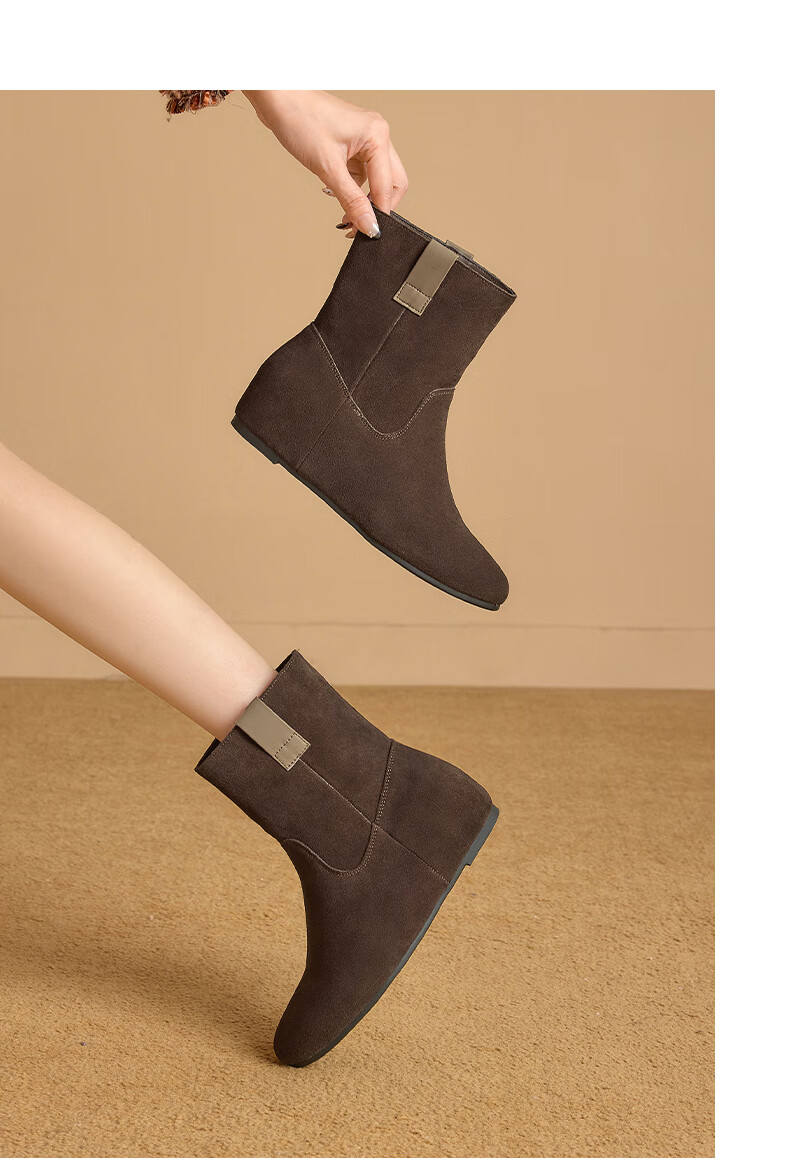 星期六2025秋季新款真皮短靴女款复古平底勃肯女靴中筒西部牛仔靴 咖啡色 35 225