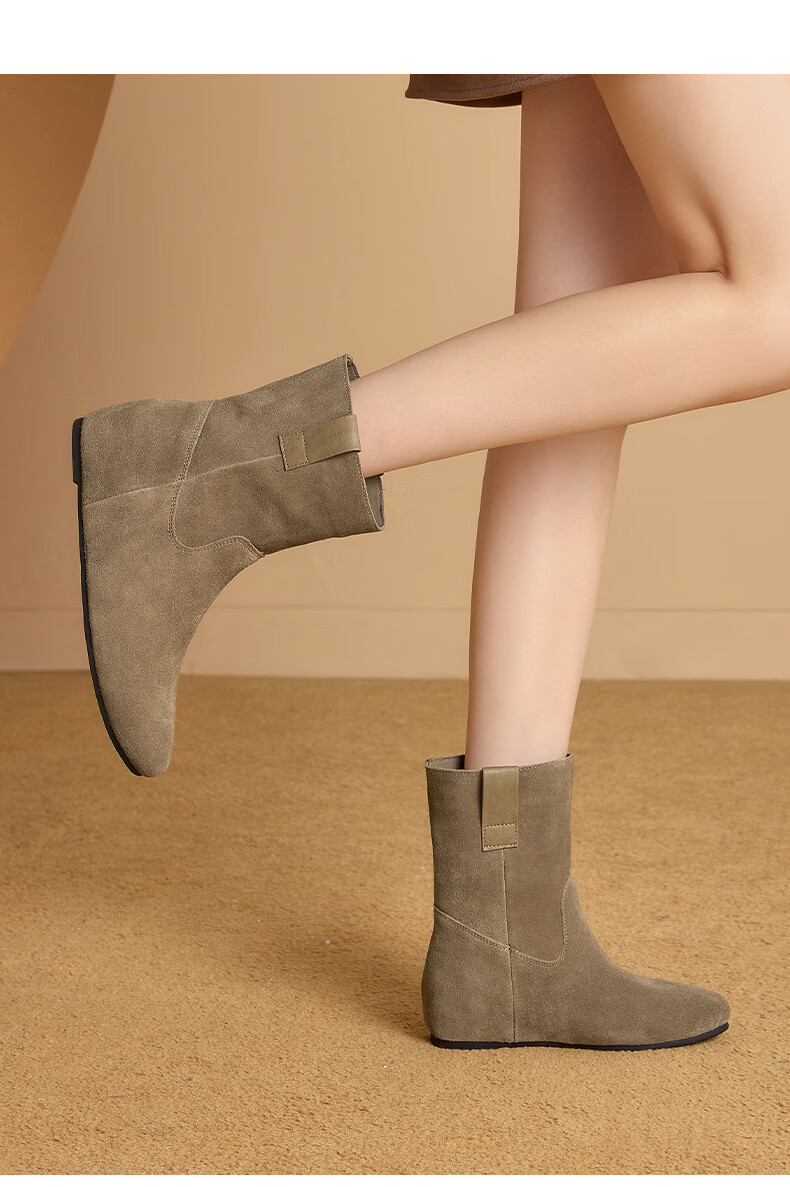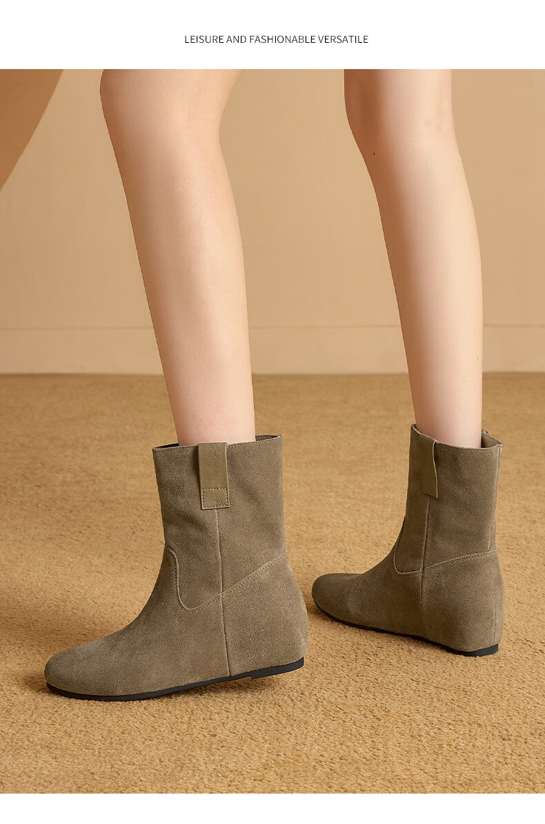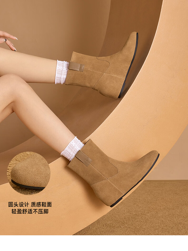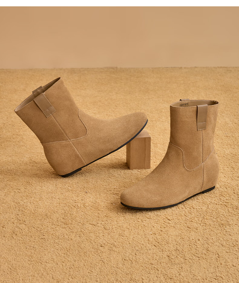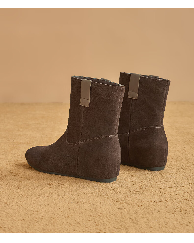 星期六2025秋季新款真皮短靴女款复古平底勃肯女靴中筒西部牛仔靴 咖啡色 35 225
