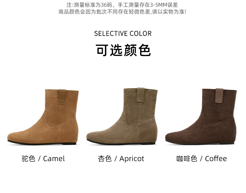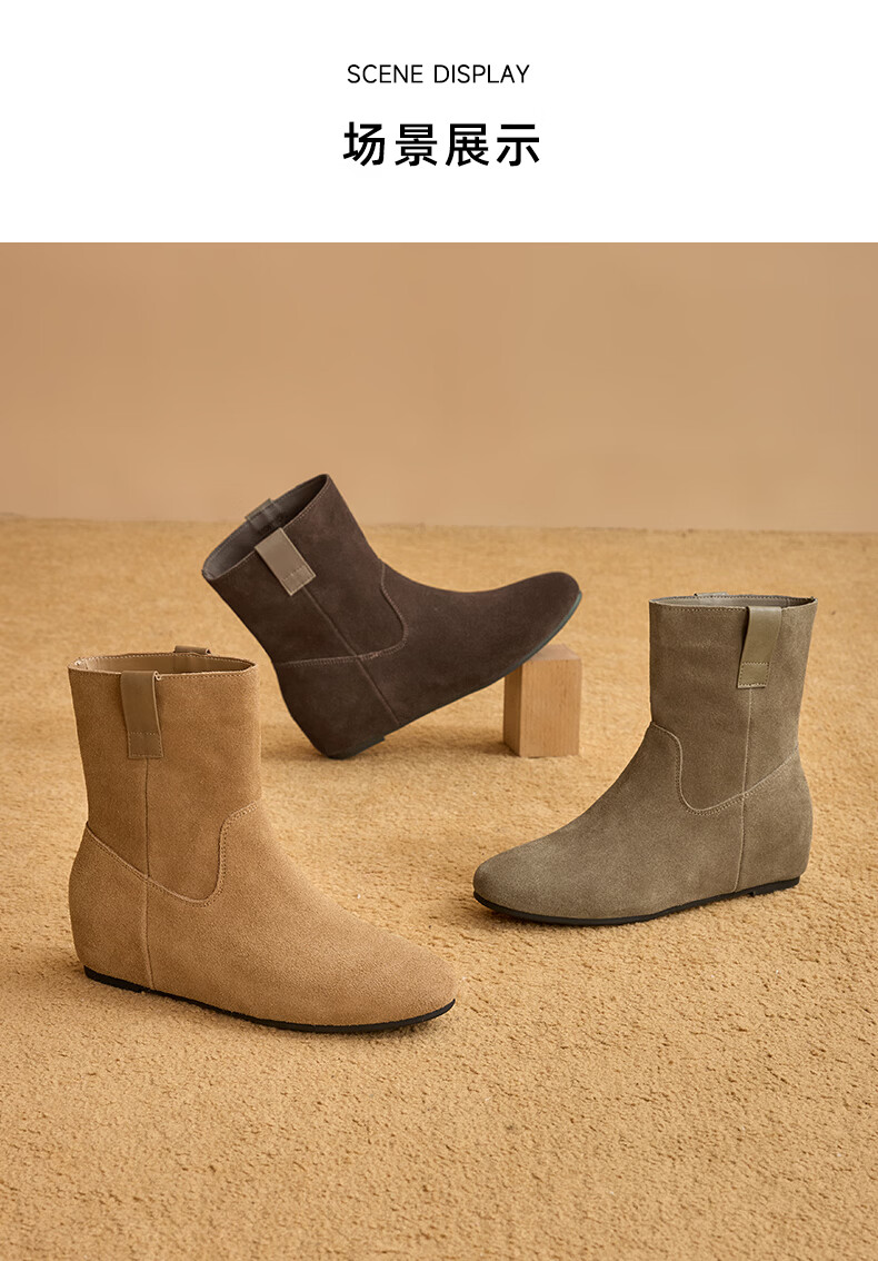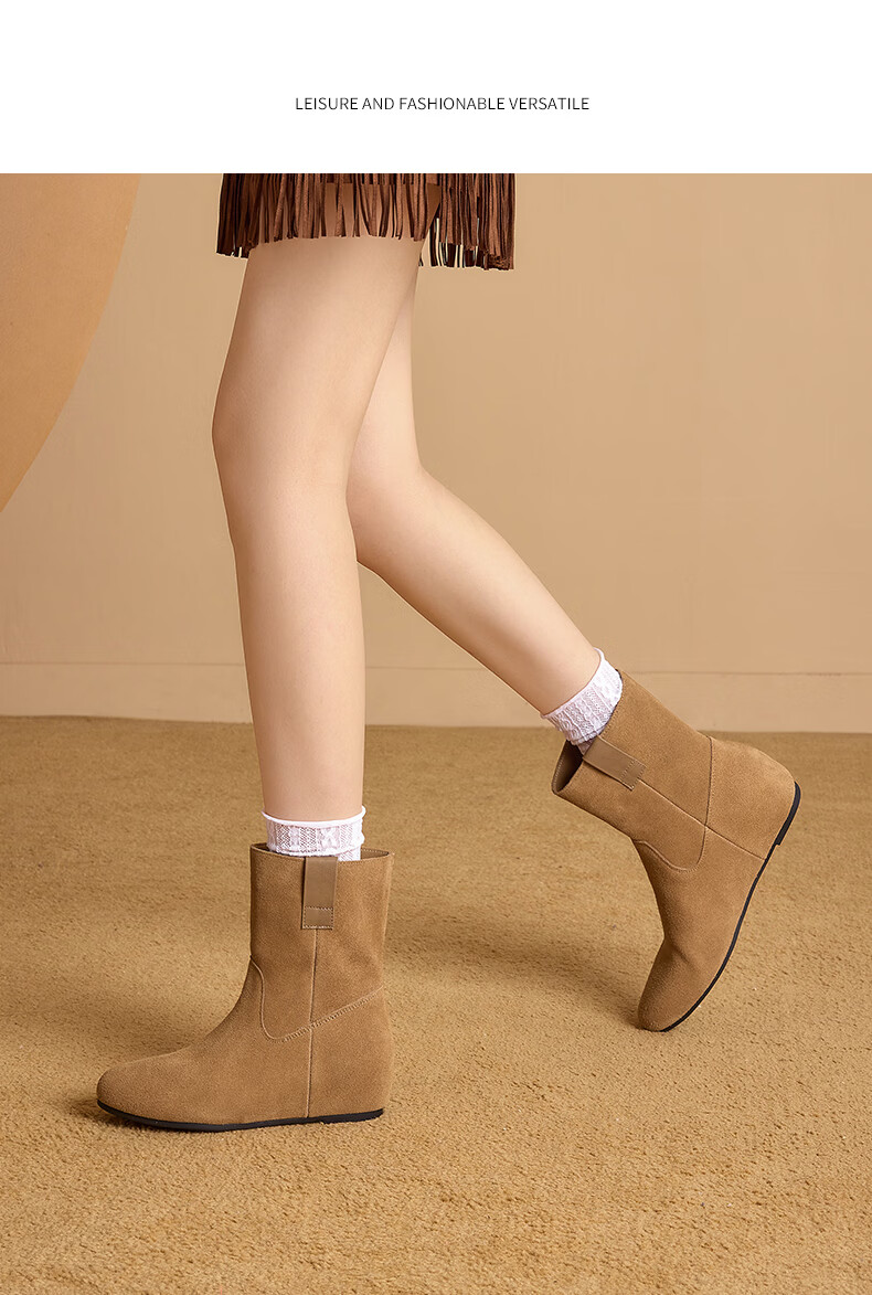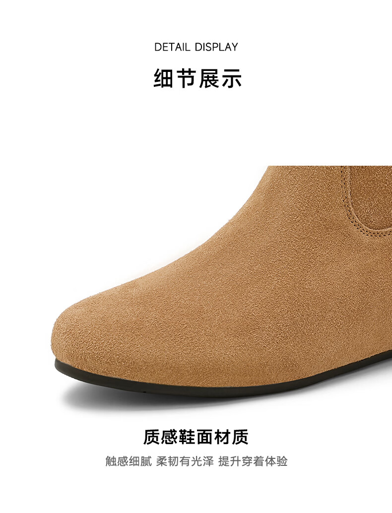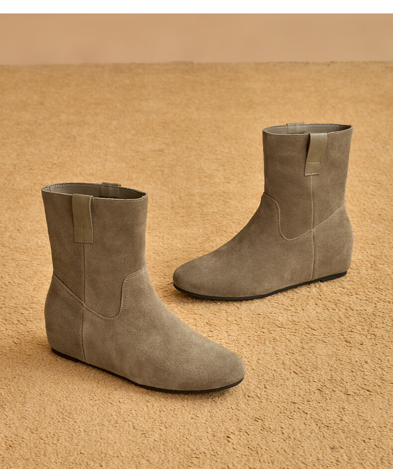 星期六2025秋季新款真皮短靴女款复古平底勃肯女靴中筒西部牛仔靴 咖啡色 35 225