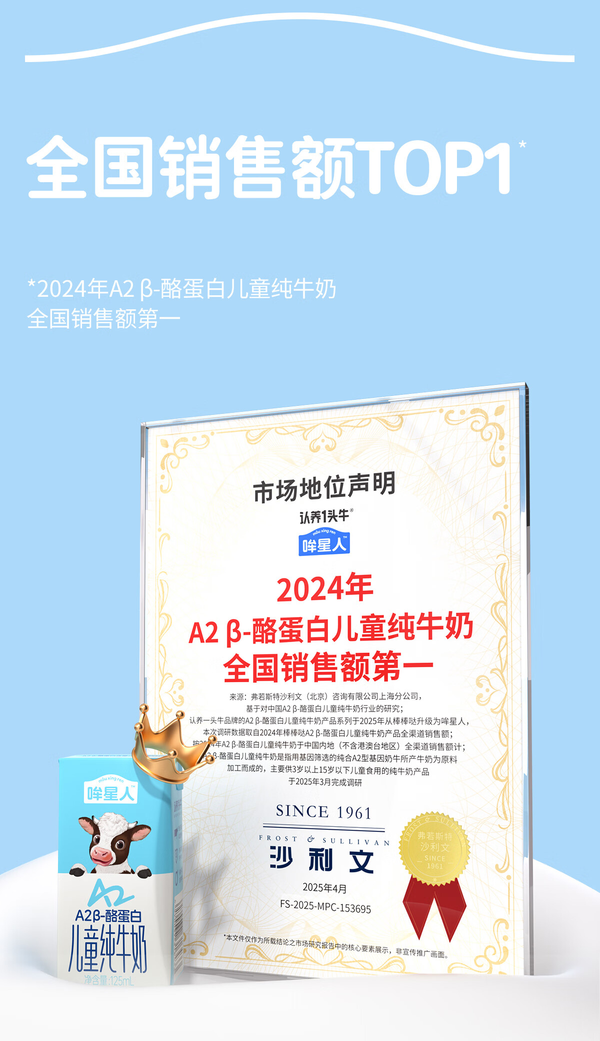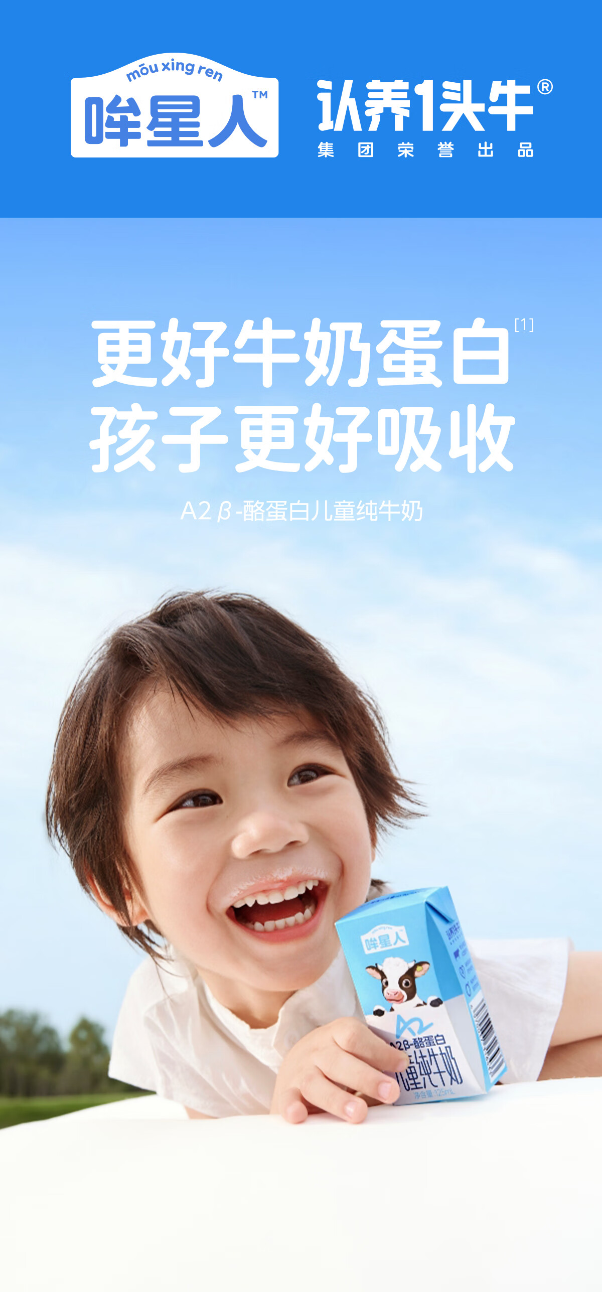 认养一头牛哞星人A2β-酪蛋白儿童奶纯牛奶125ml*16盒整箱营养早餐奶部分9月 125ml*16盒*2箱