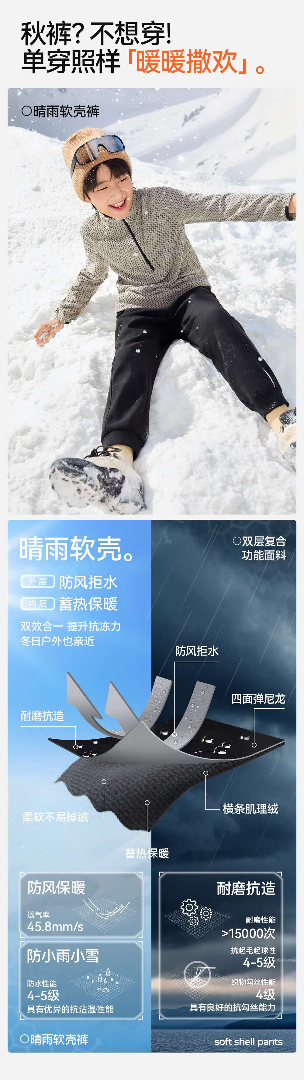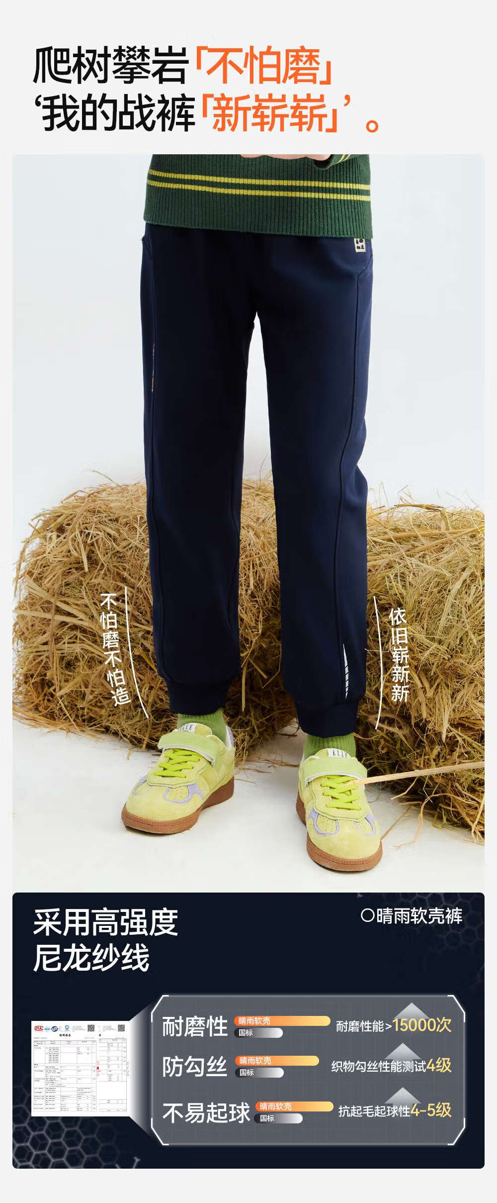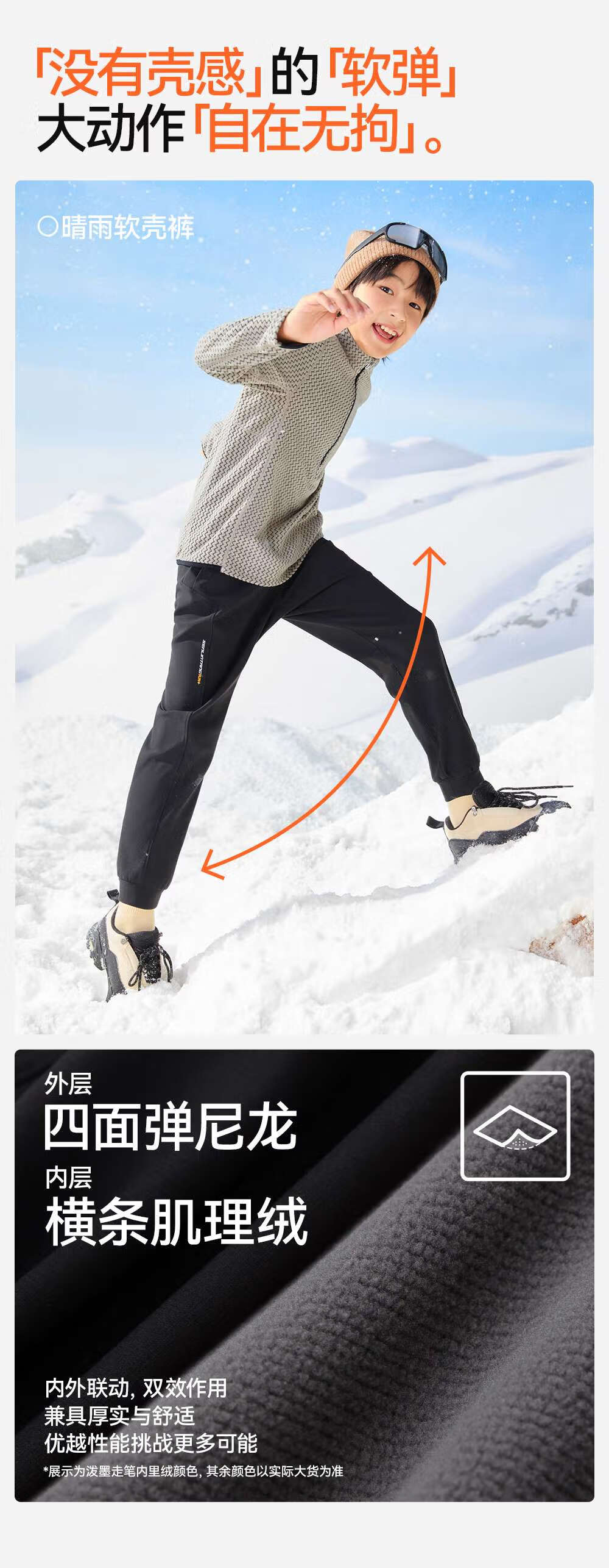 森林棠特调版型【晴雨软壳】森林棠25冬防风防泼水儿童户外加绒运动裤 香炉吐烟 均码 150cm