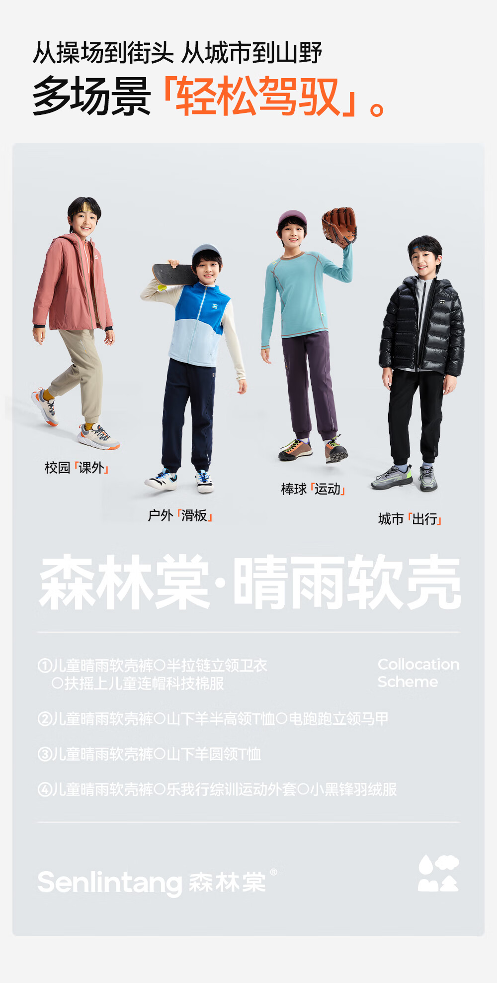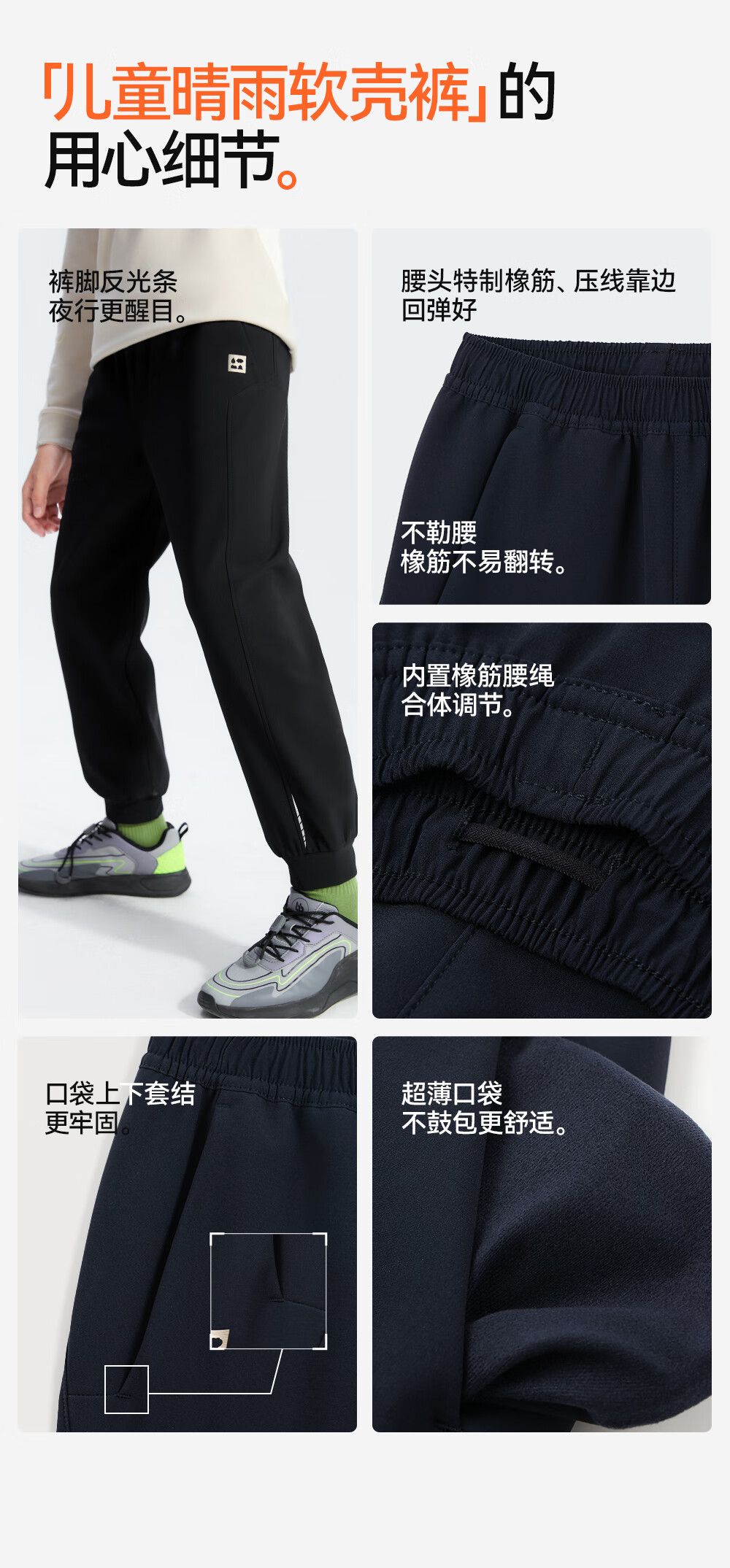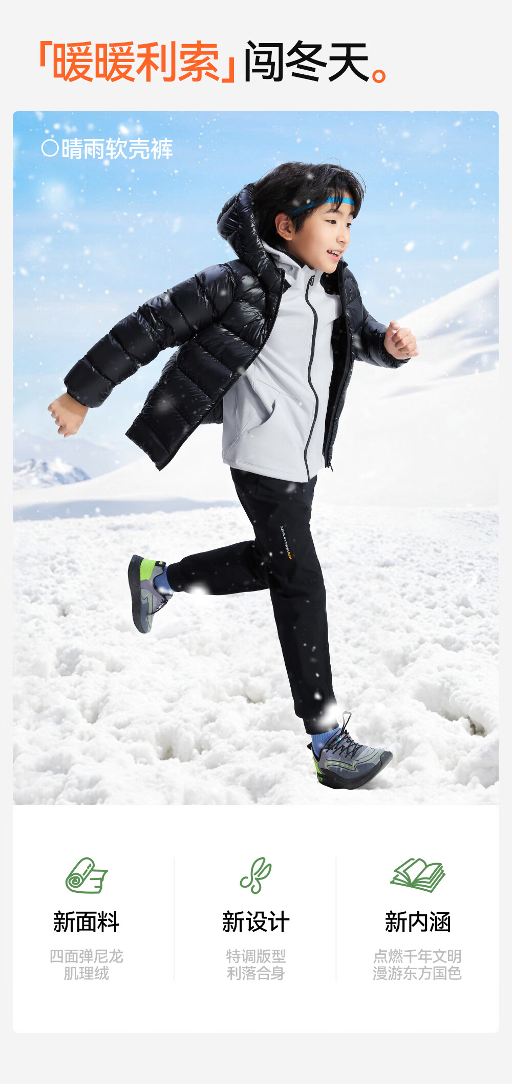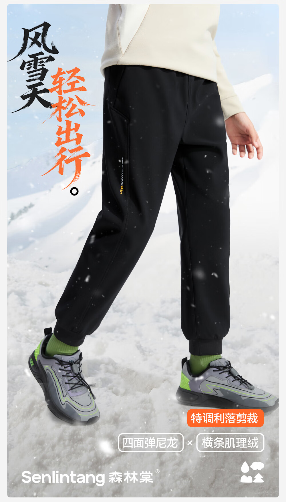 森林棠特调版型【晴雨软壳】森林棠25冬防风防泼水儿童户外加绒运动裤 香炉吐烟 均码 150cm