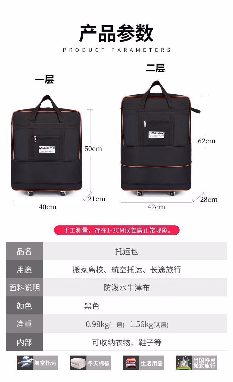 OUN 防水可背牛津布行李箱大容量旅行袋158航空托运包出国搬家行李包 特大号[藏蓝]不锈钢6轮可背