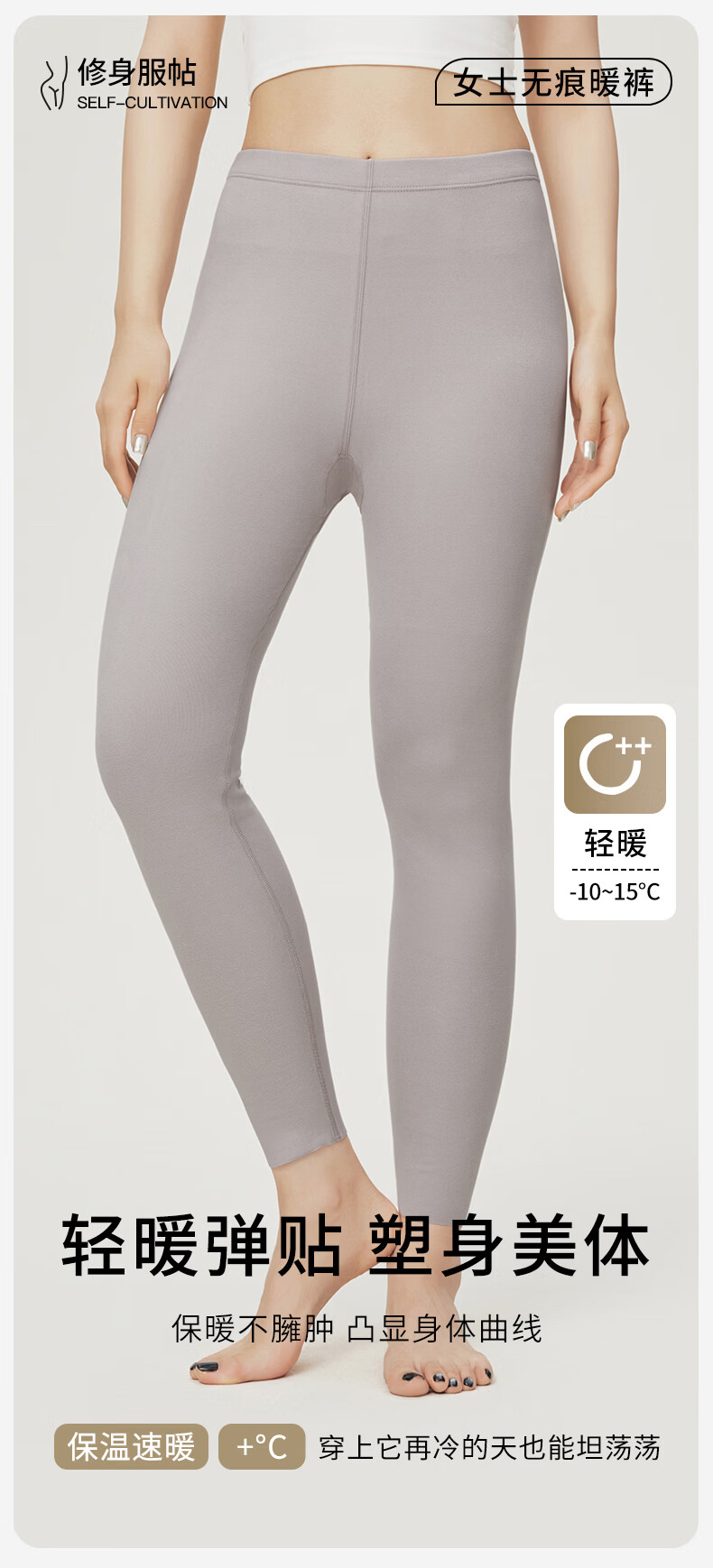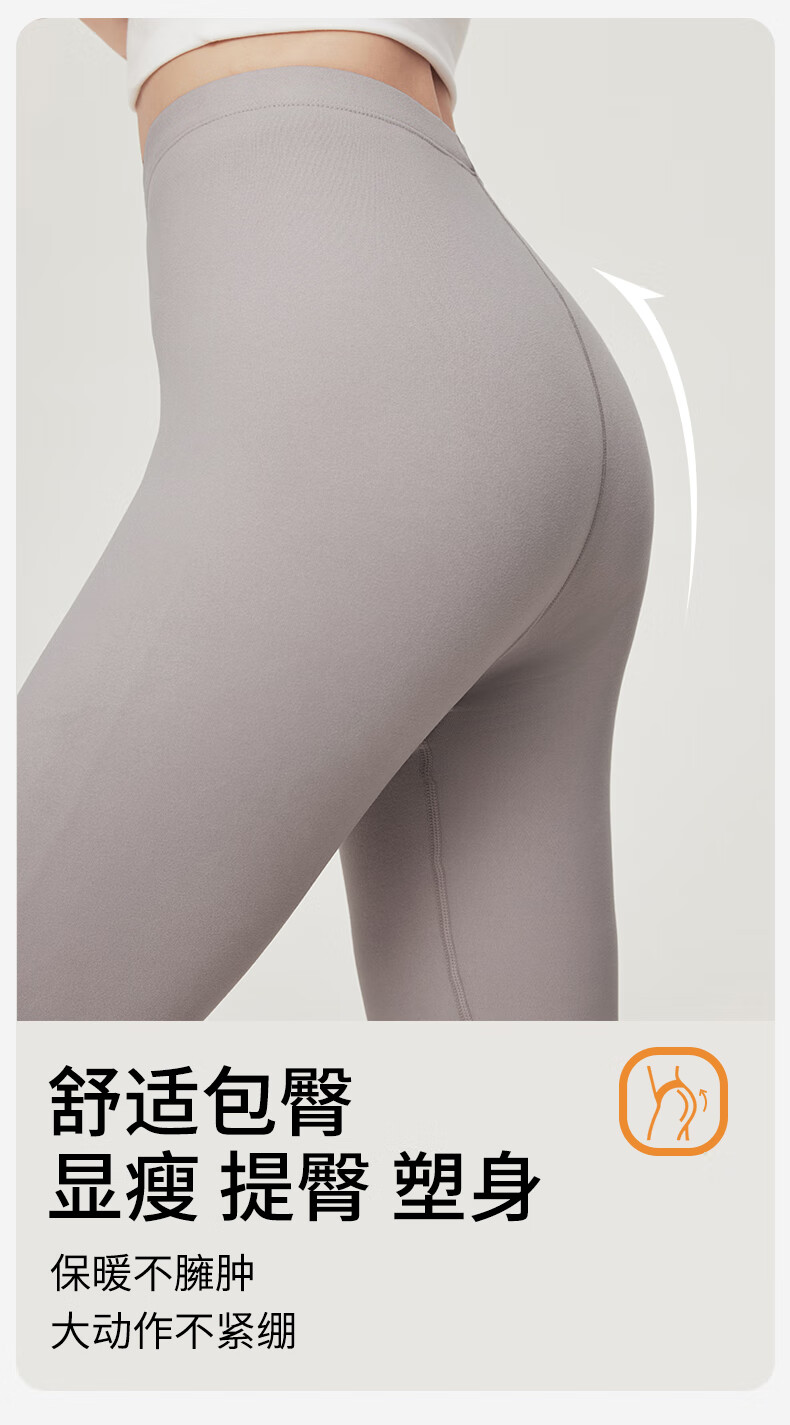 朵莱秀打底裤女外穿春季冬保暖高腰收腹无痕修身小脚裤 浅灰+浅灰 XL (建议125-150斤