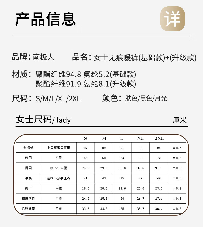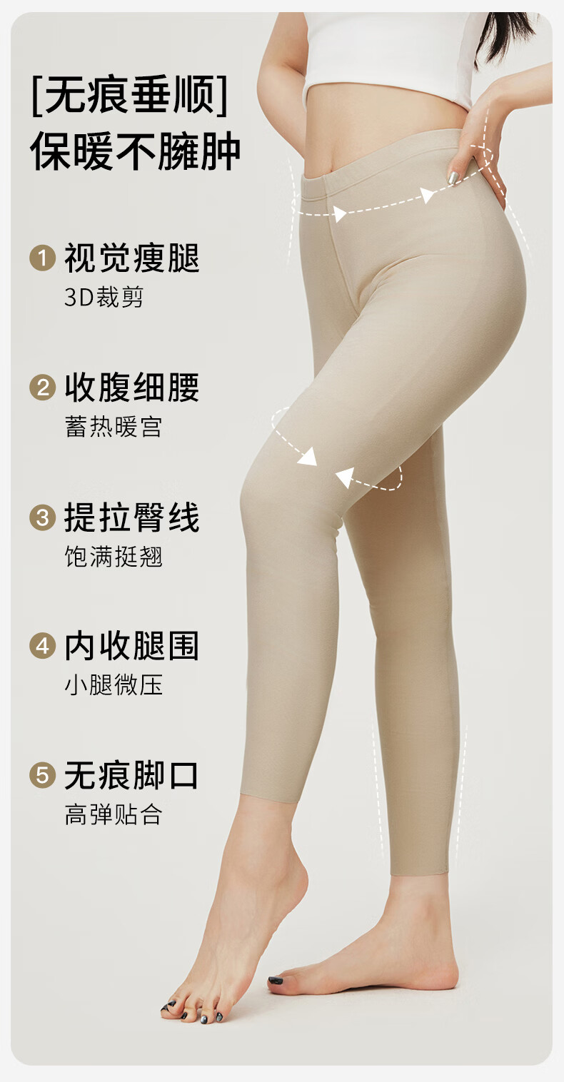 南极人(Nanjiren)女士高腰收腹裤10A抗菌远红外蓄热抗静电防螨无痕保暖裤 基础款-肤色 S