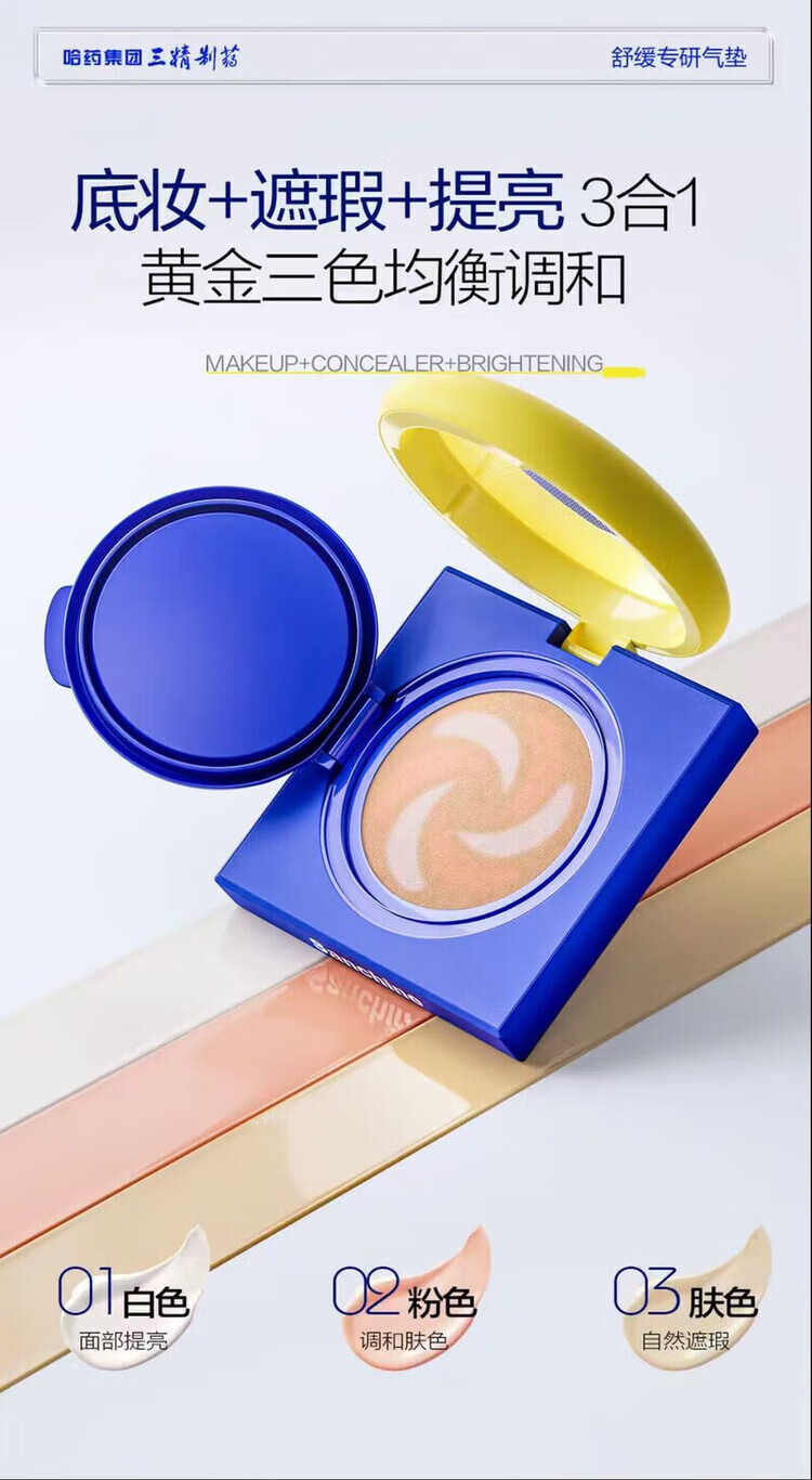 三精制药气垫[遮瑕+隔离+粉底三合一]敏感肌干皮油皮适用高效底妆定妆持久 舒敏气垫霜13g*2盒 赠替换装*2【到手4盒】