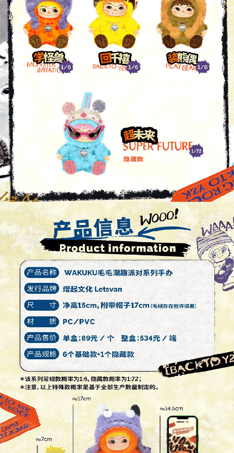 名创优品(MINISO)WAKUKU哇库库毛毛潮趣派对系列盲盒搪胶毛绒公仔潮玩明星同款潮流 单盒单款【第一弹】