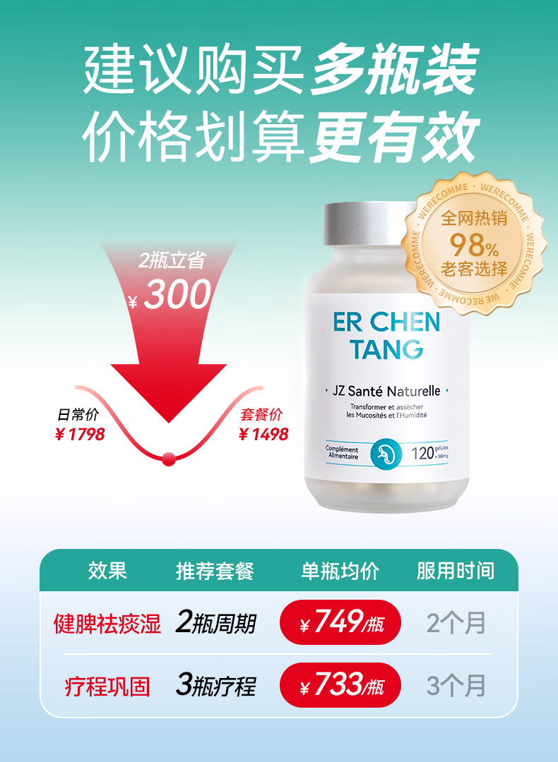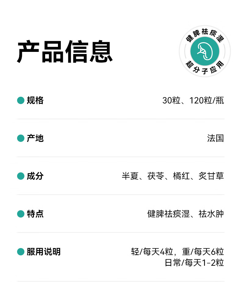 JZLPTC健之伴祛湿丸健脾祛痰湿无湿轻祛湿轻去湿气调脾胃法国进口 1瓶丨健脾祛痰湿