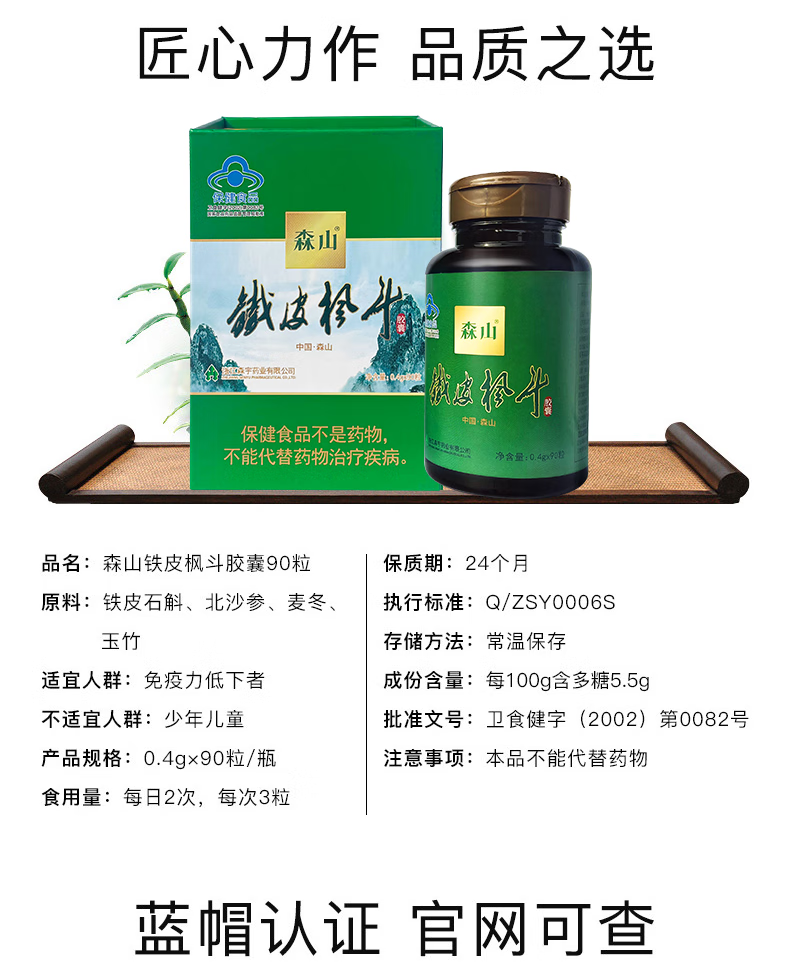 森山特级铁皮枫斗晶颗粒 石斛胶囊滋补养生 90粒瓶装 送长辈礼物 90粒*3盒装