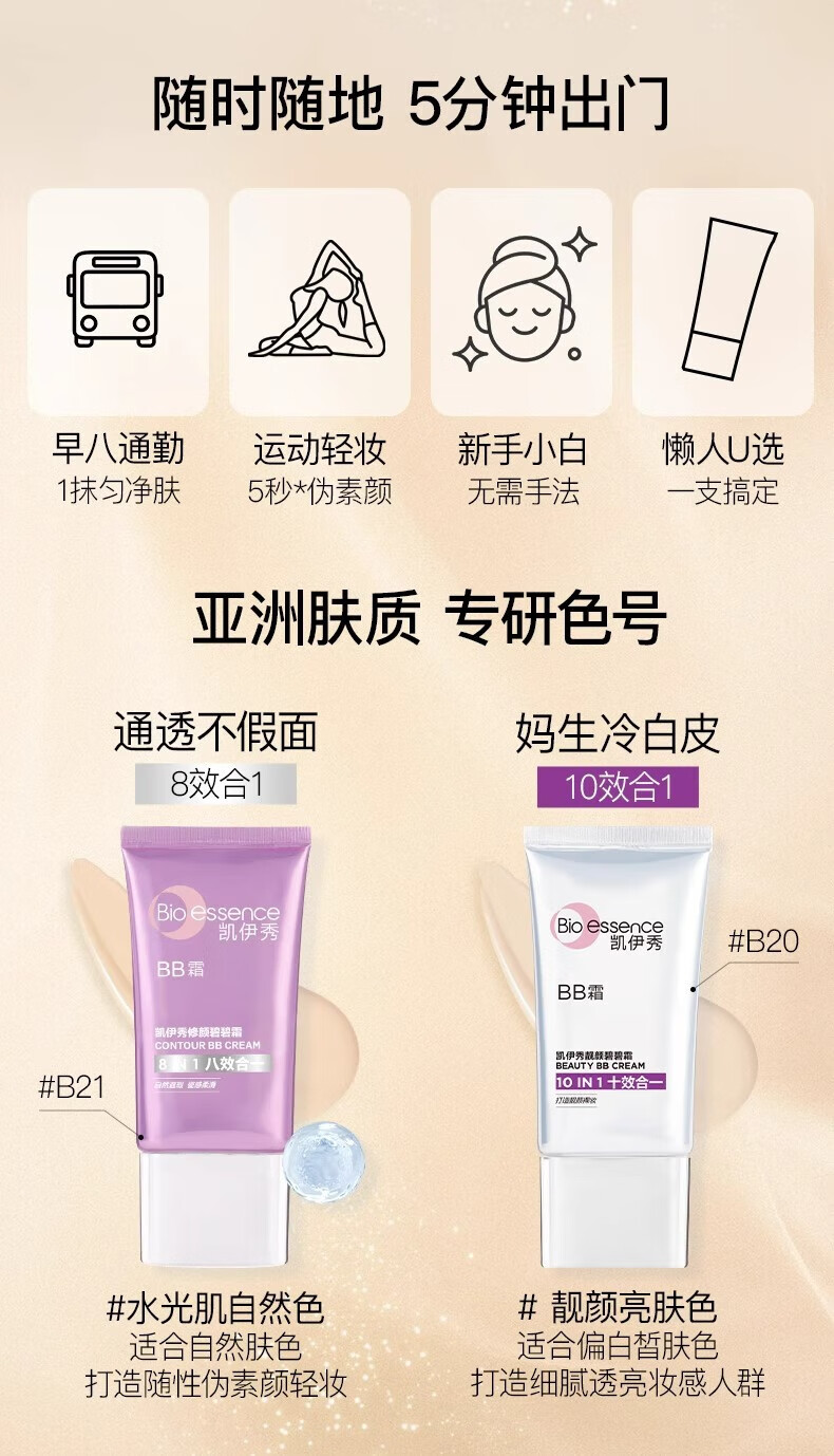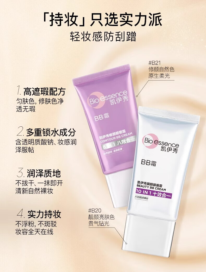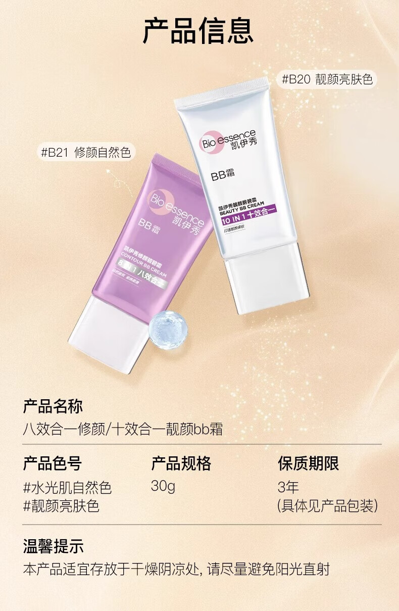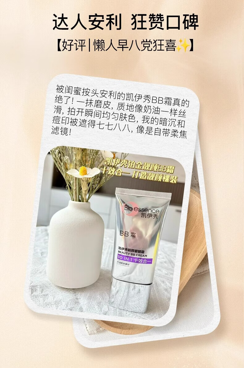 凯伊秀(Bio-essence)多效合一遮瑕BB霜十效铂金水润妆前打底亮肤遮盖斑点粉底圣诞礼物 凯伊秀十效铂金亮白BB霜粉底液30g