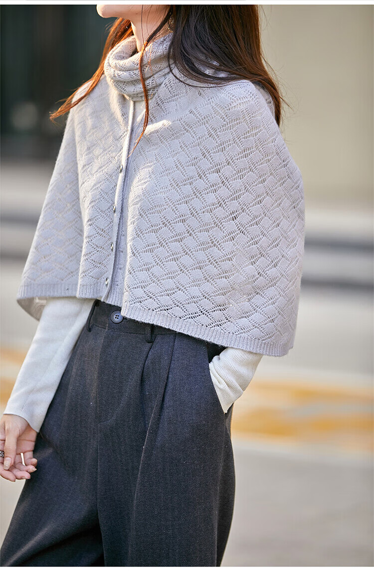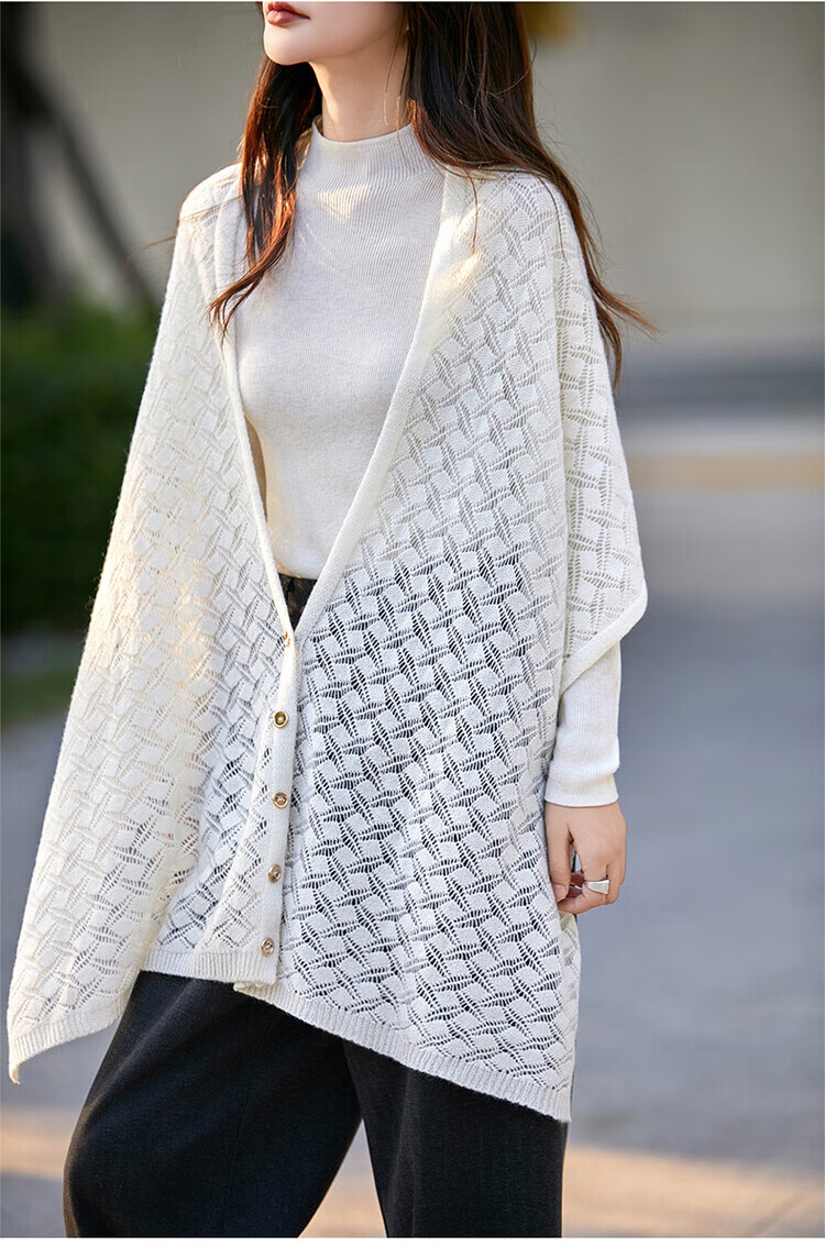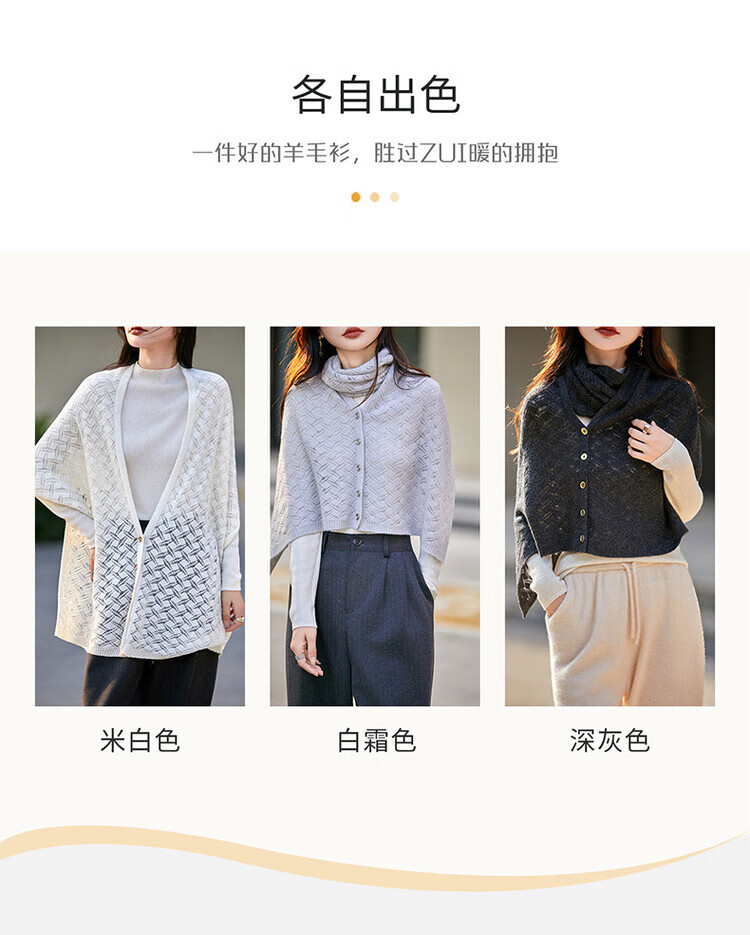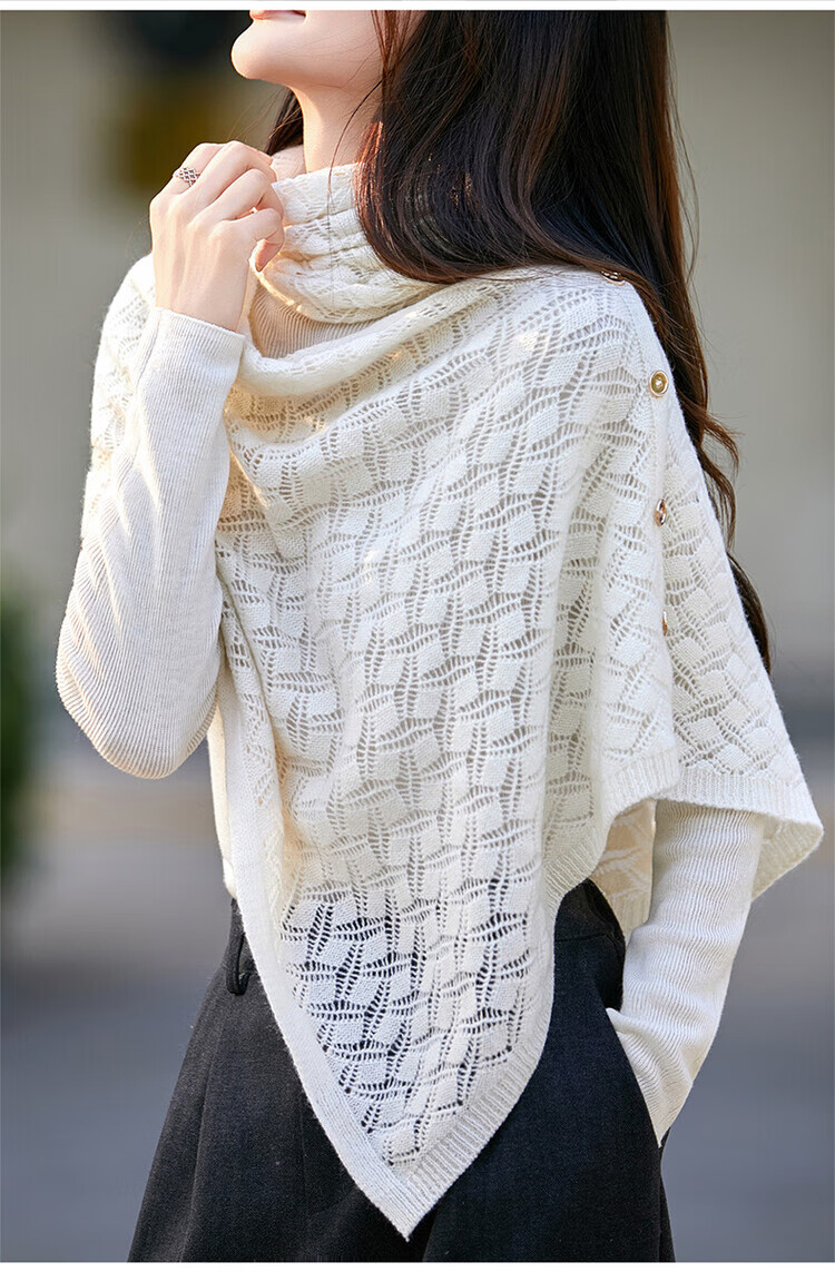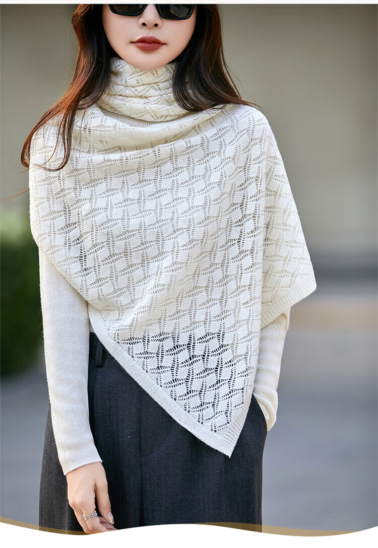 黛雅莫斯多功能羊毛披肩女秋冬新款镂空100%羊毛外搭斗篷披肩围巾 米色 180