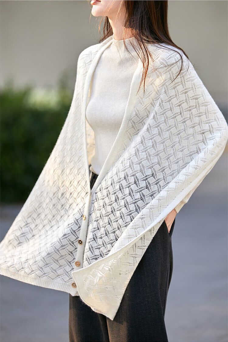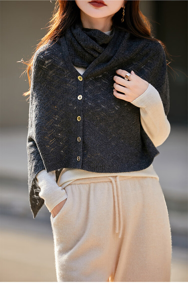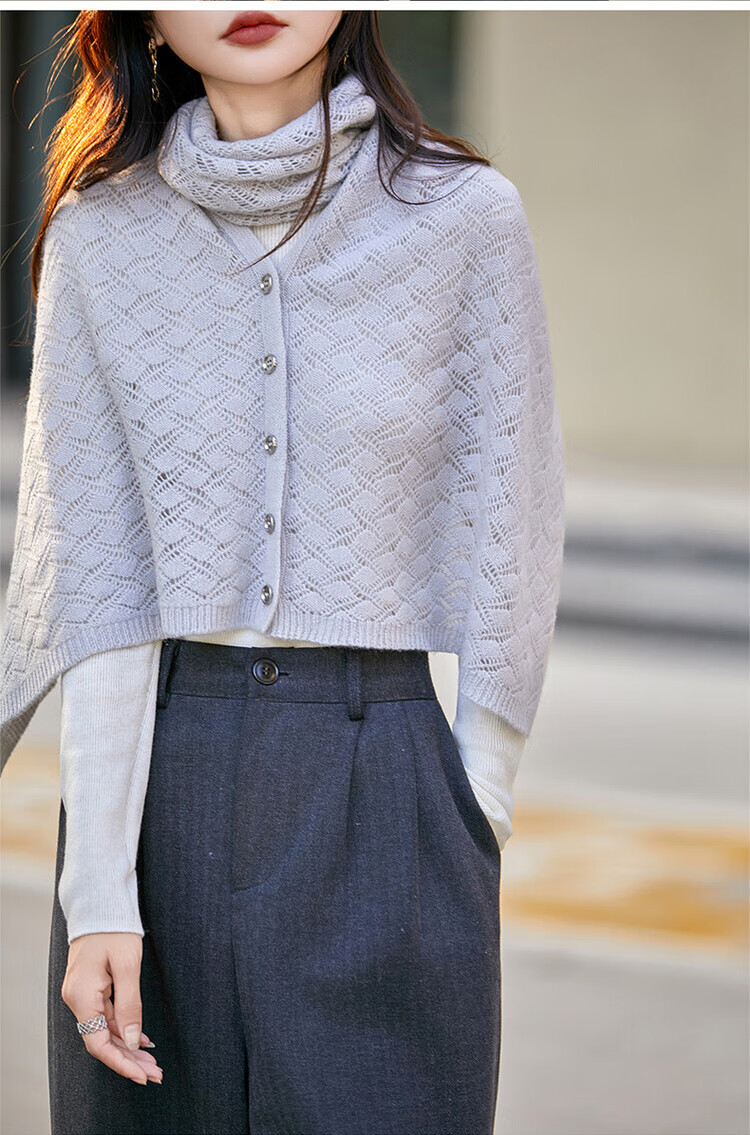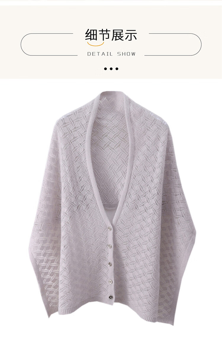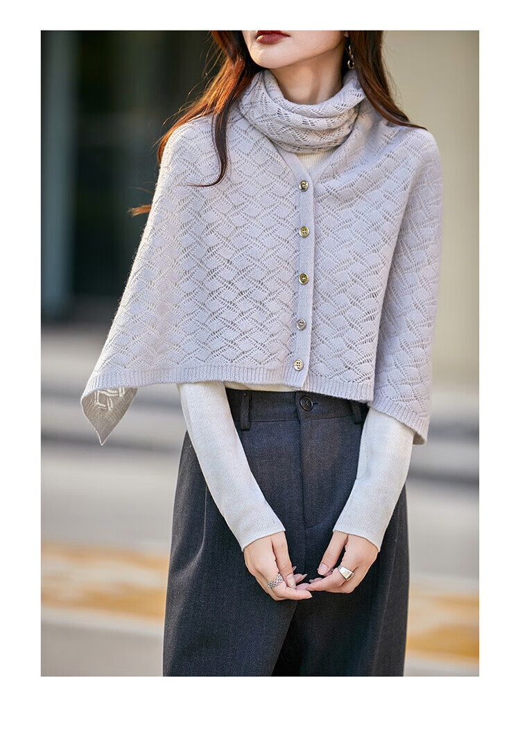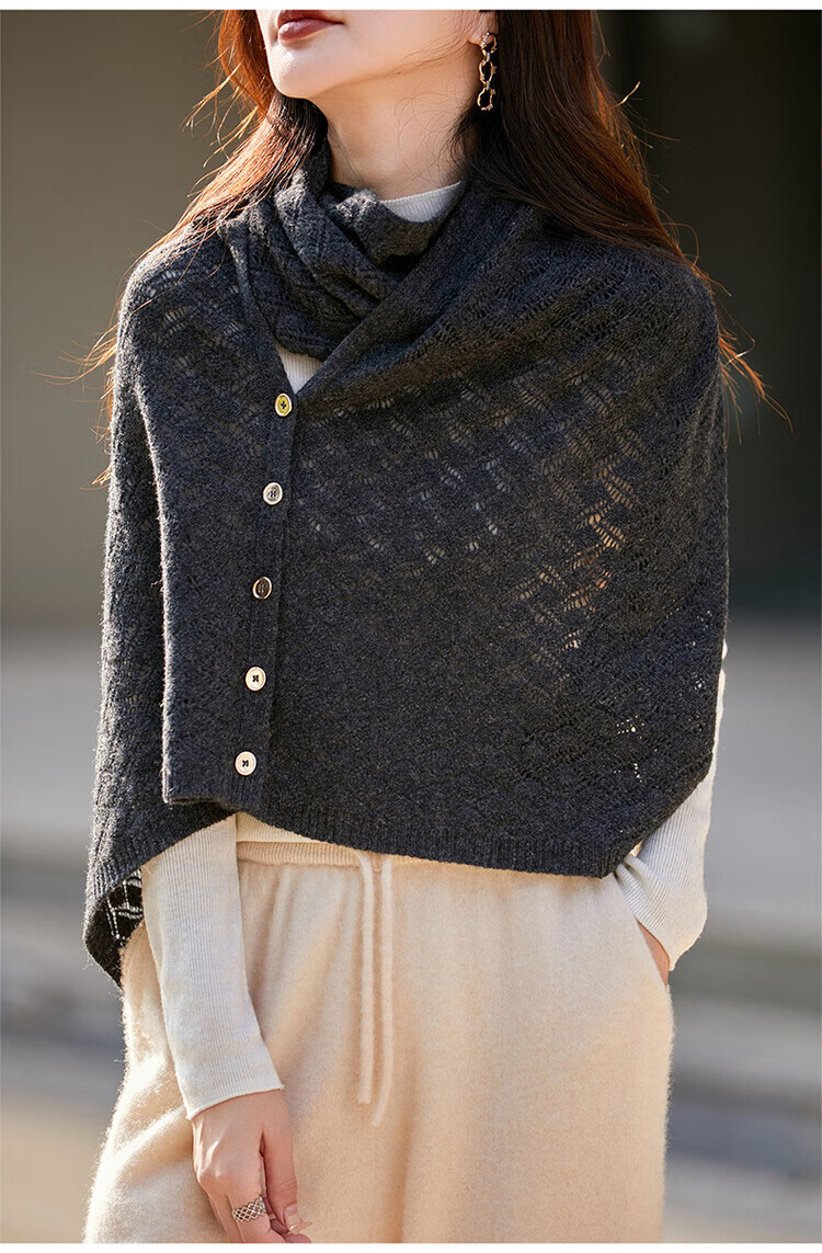 黛雅莫斯多功能羊毛披肩女秋冬新款镂空100%羊毛外搭斗篷披肩围巾 米色 180