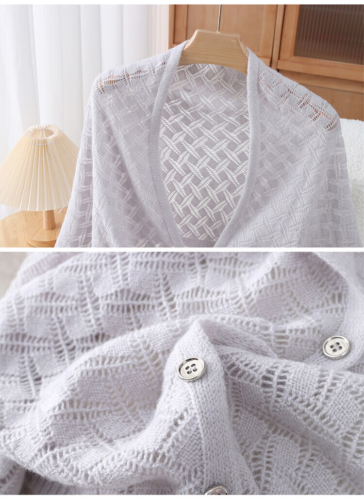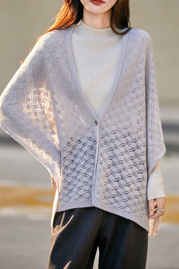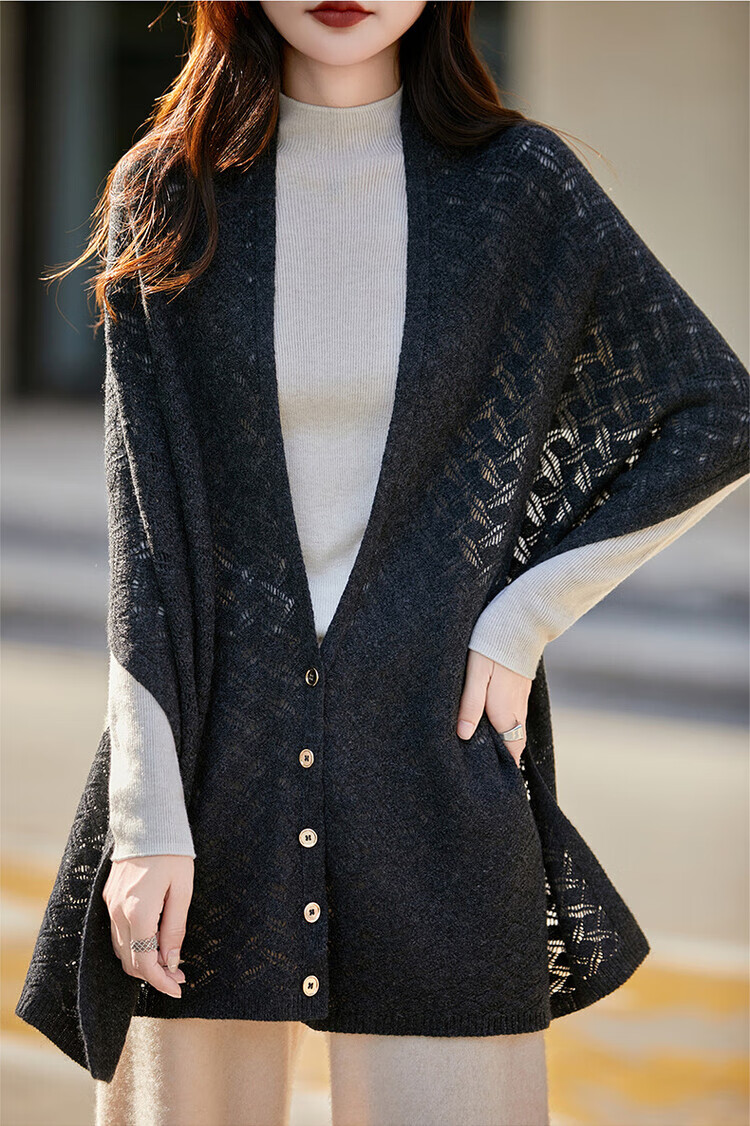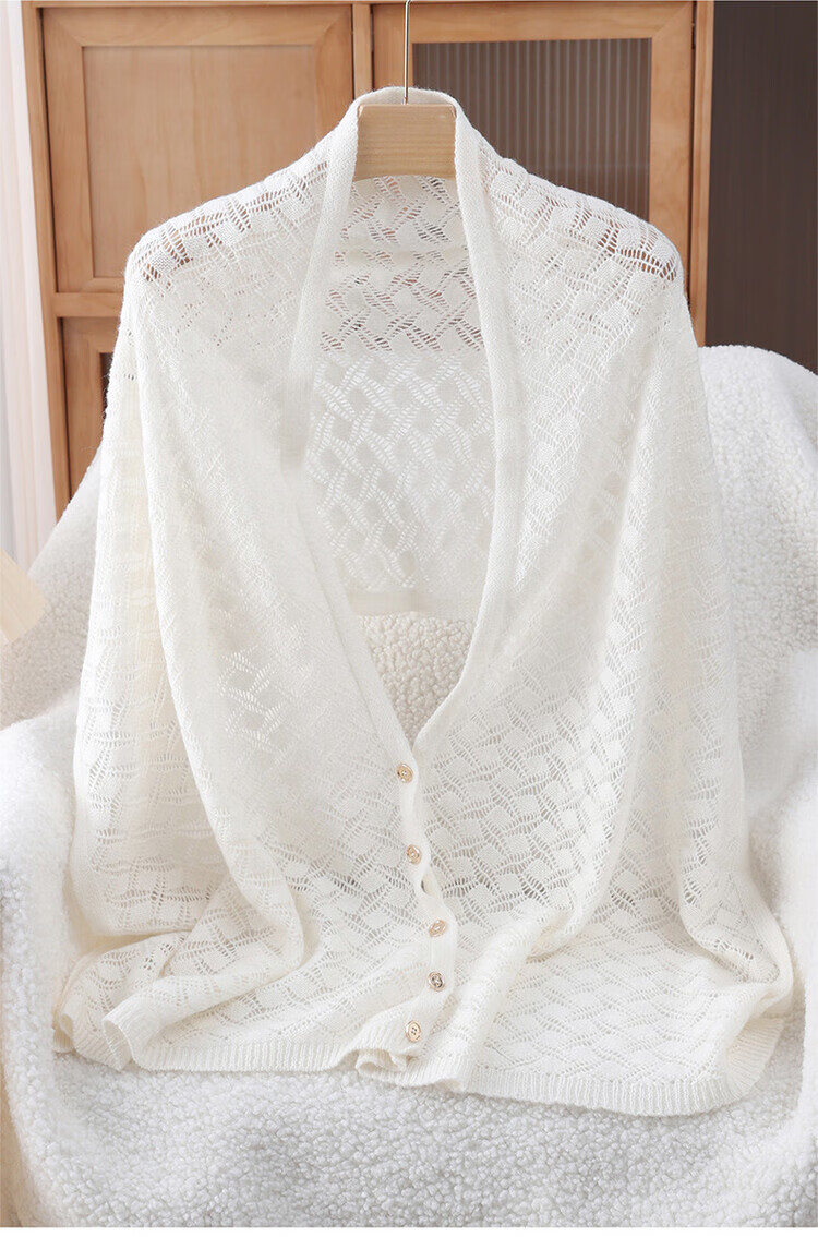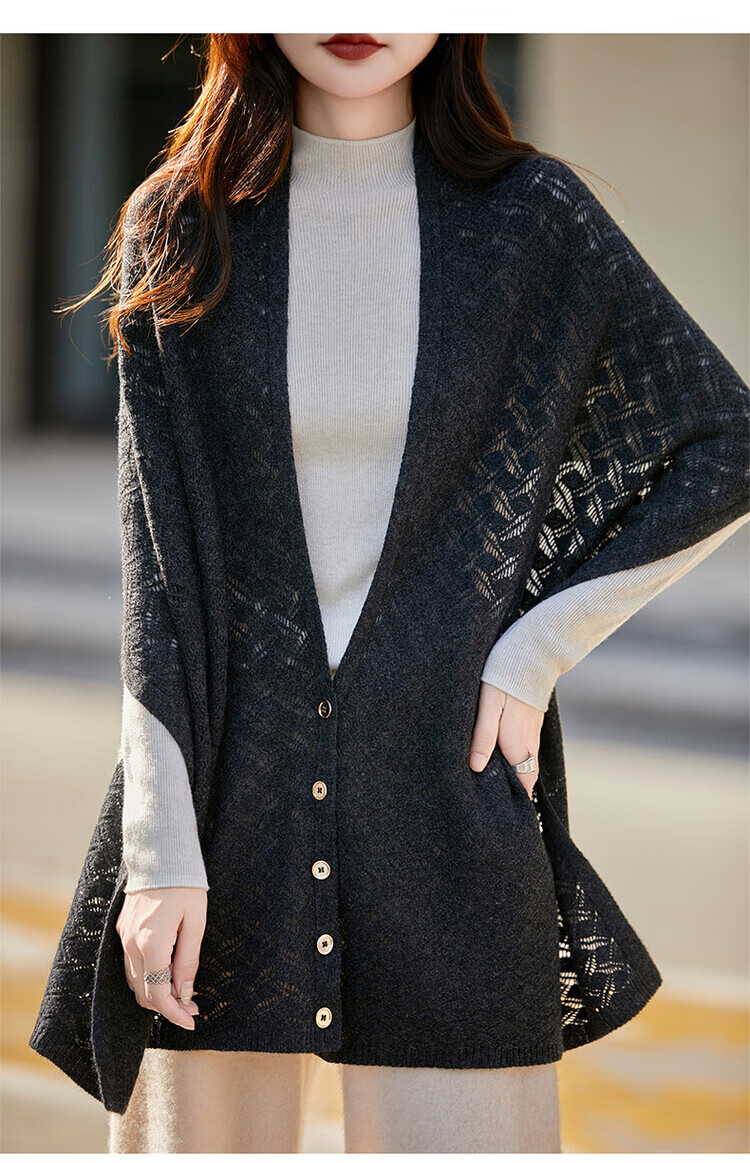 黛雅莫斯多功能羊毛披肩女秋冬新款镂空100%羊毛外搭斗篷披肩围巾 米色 180