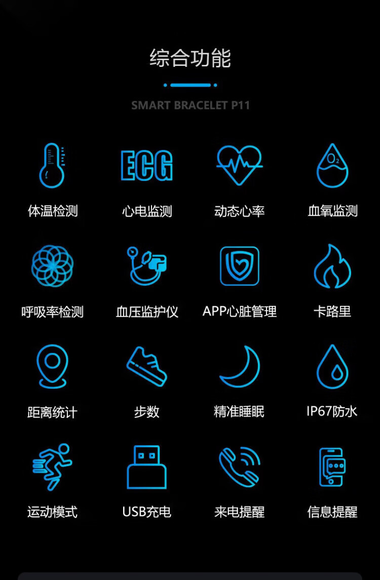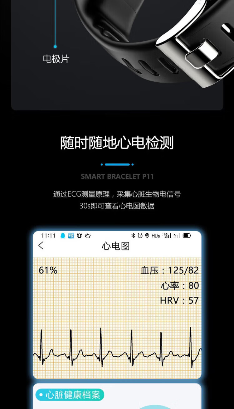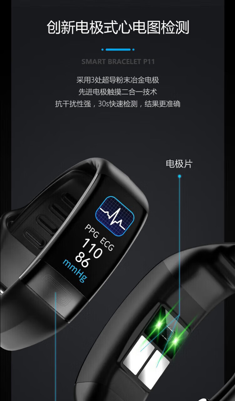 lieve华为机鸿蒙系统苹果机IOS适用高精准健康智能血压手环心率报警血氧检测仪心电图男女运动手表 升级版曜石黑(体温心率心电血氧血压)