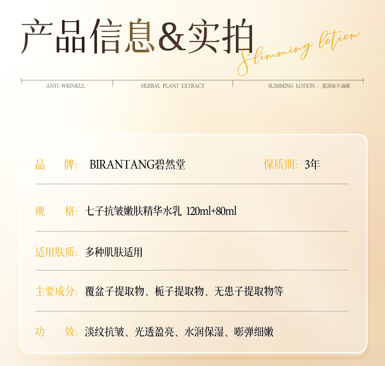 碧然堂七子抗皱嫩肤精华水乳爽肤水护肤品 七子抗皱嫩肤精华水 120ml