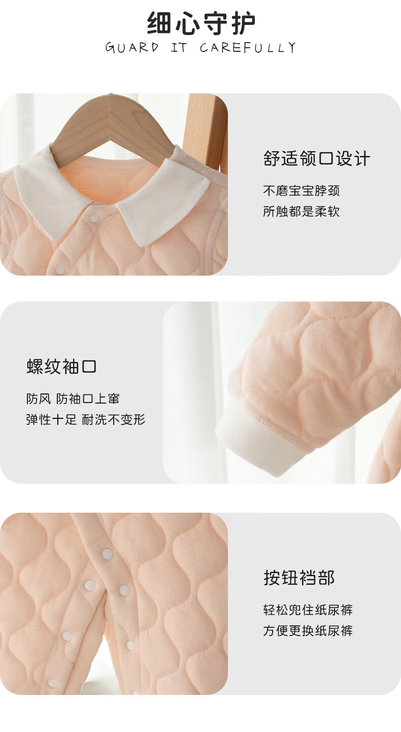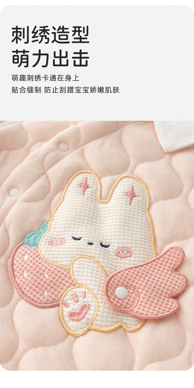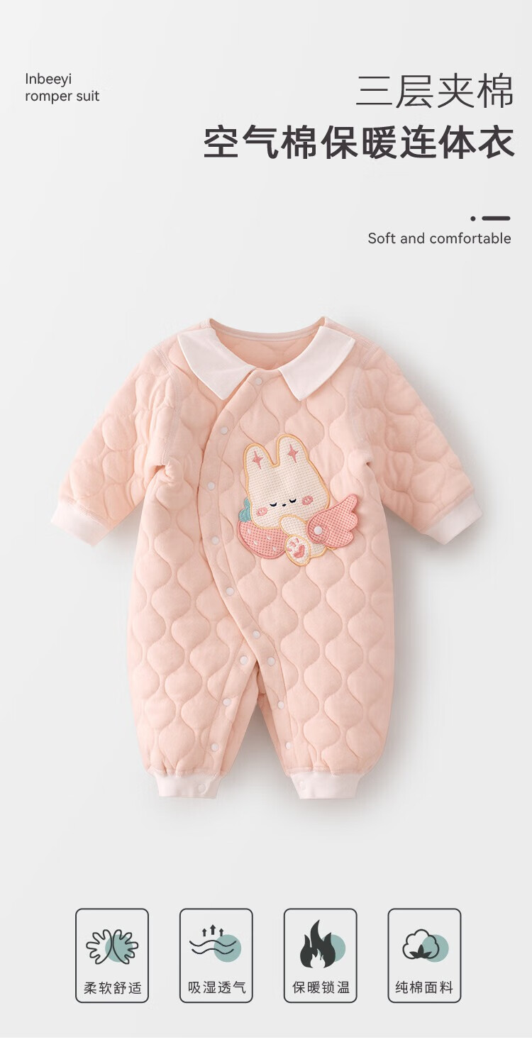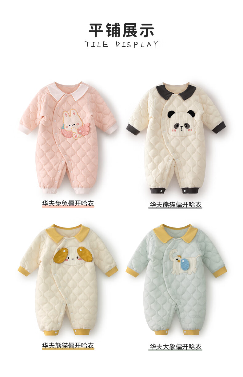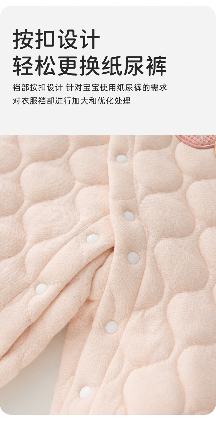 婴蓓依满月婴儿秋冬连体衣百天宝宝高品质保暖哈衣刺绣卡通无骨睡衣爬服 华夫熊猫 59cm