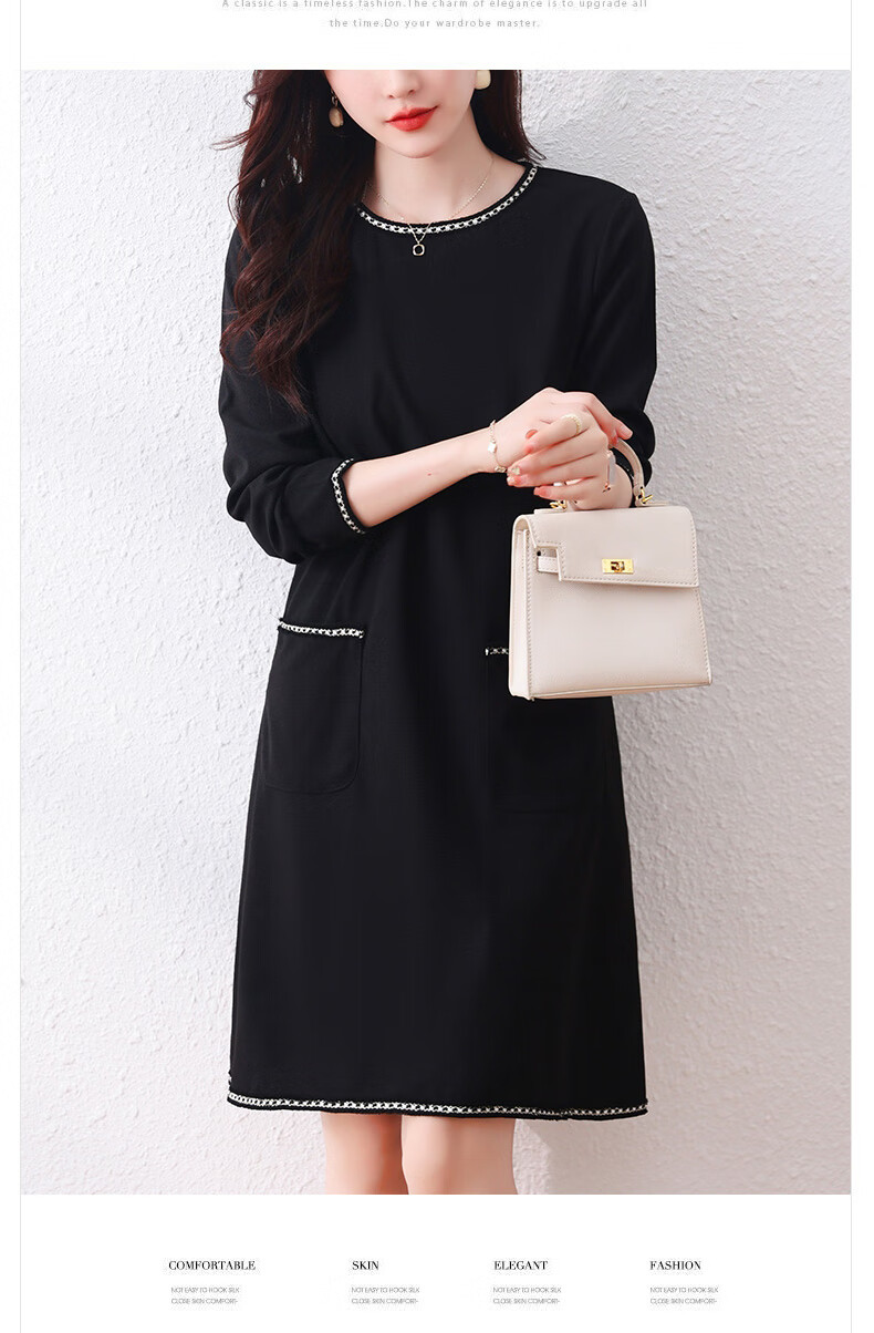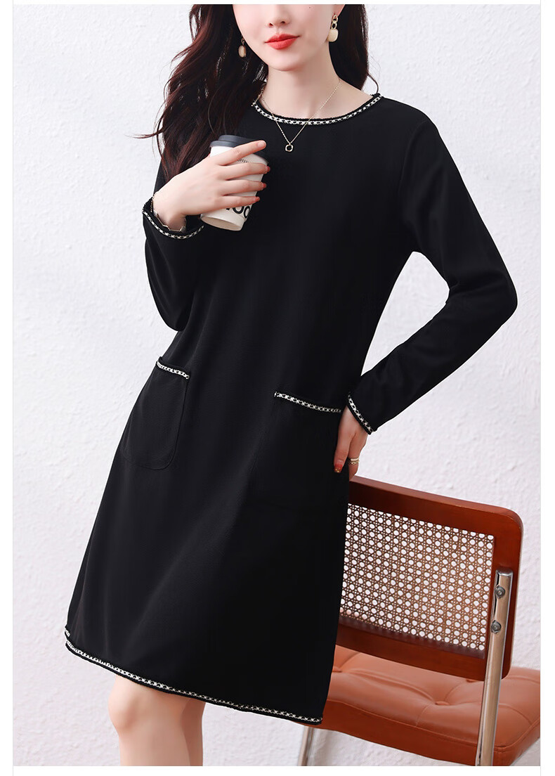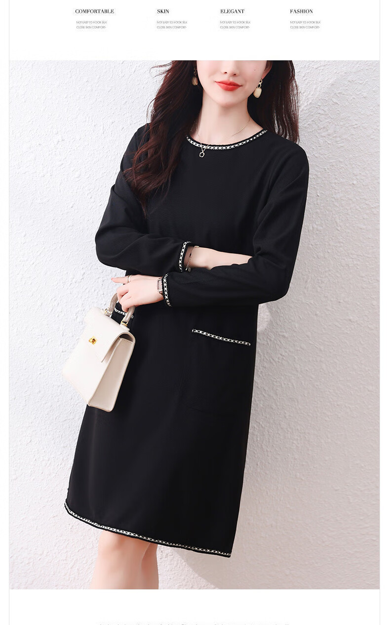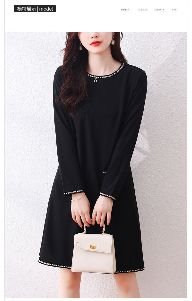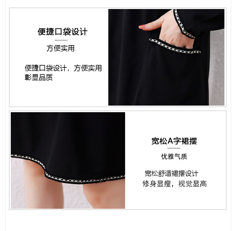 莎妮朵罗大码女装春秋装新品胖女人遮肚子显瘦胖mm收腰A字圆领连衣裙19655 黑色 2XL建议135-150斤穿着