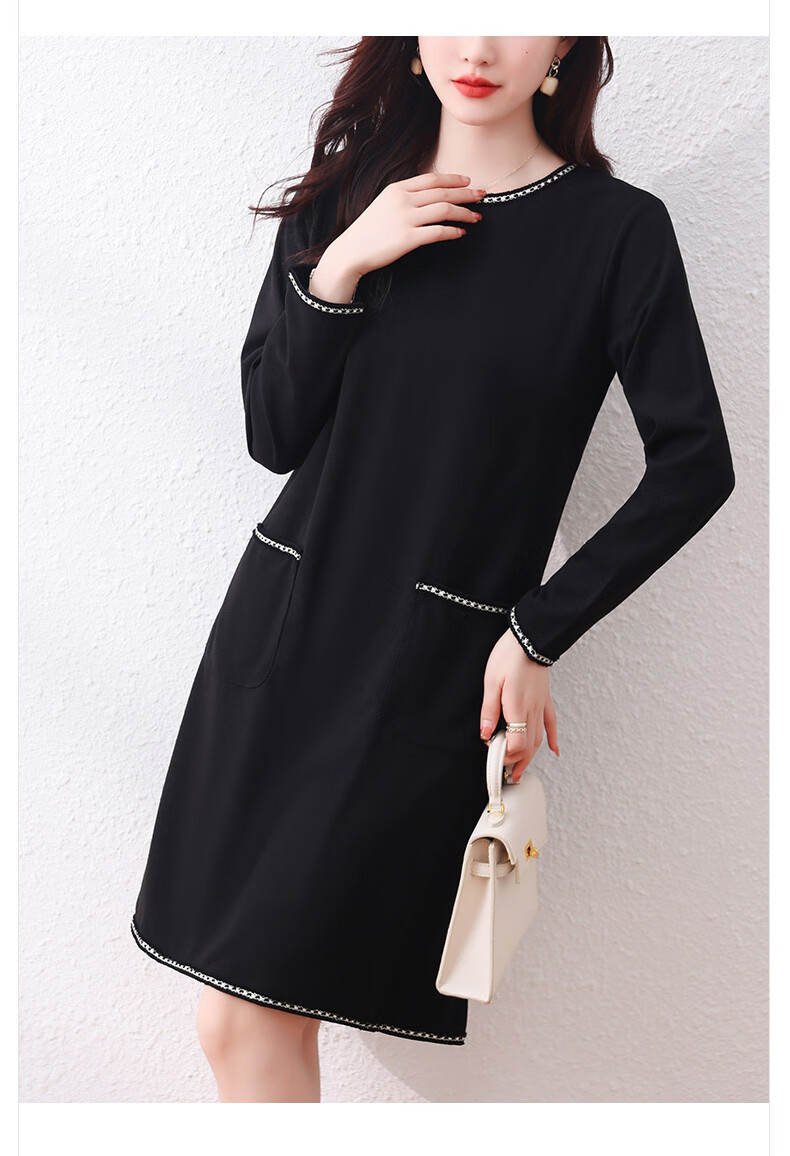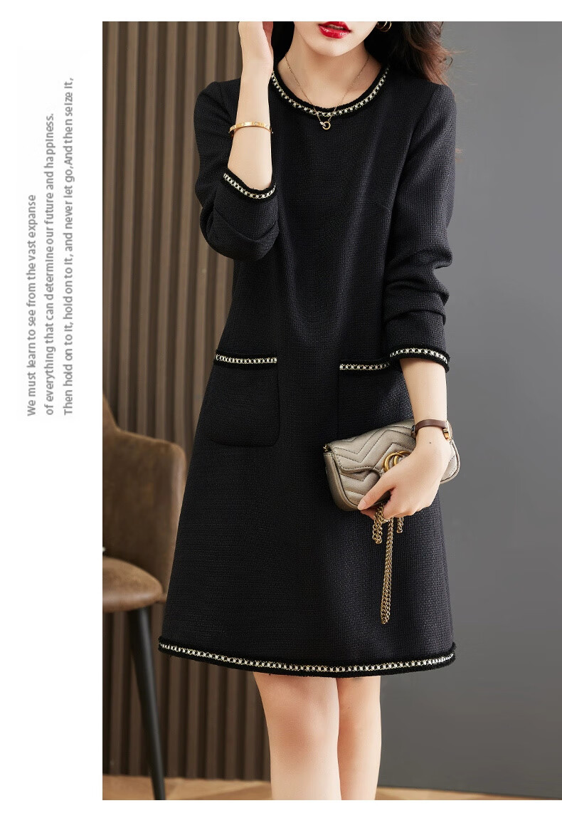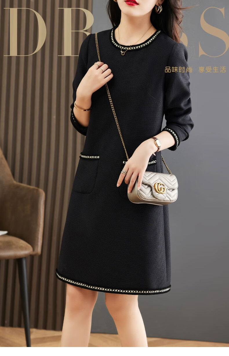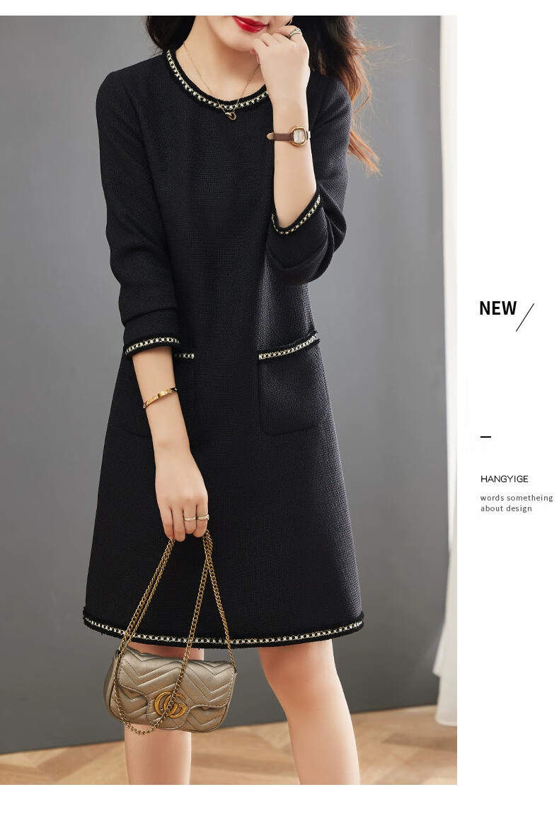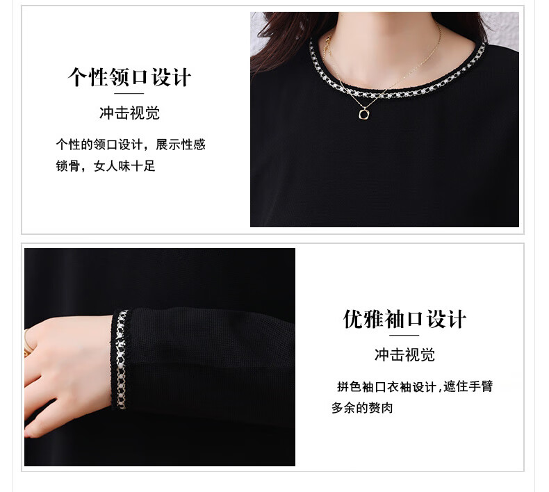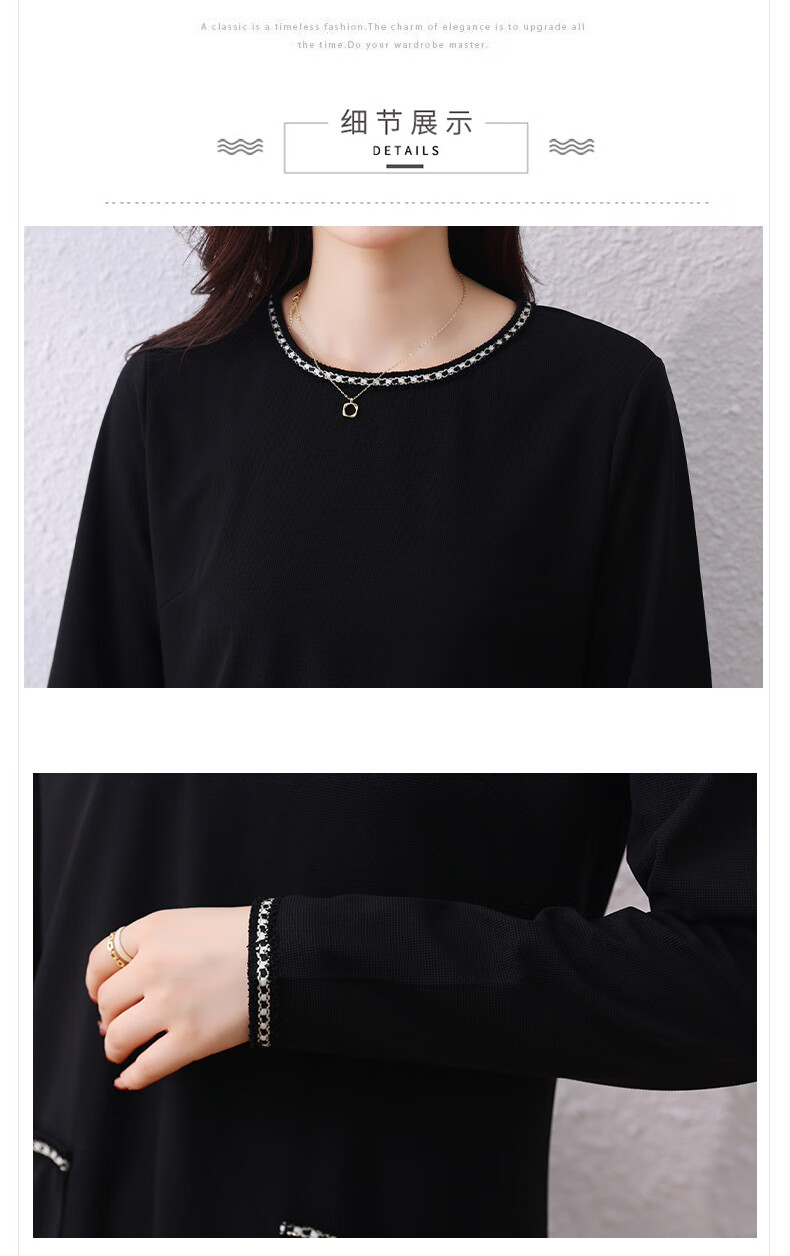 莎妮朵罗大码女装春秋装新品胖女人遮肚子显瘦胖mm收腰A字圆领连衣裙19655 黑色 2XL建议135-150斤穿着