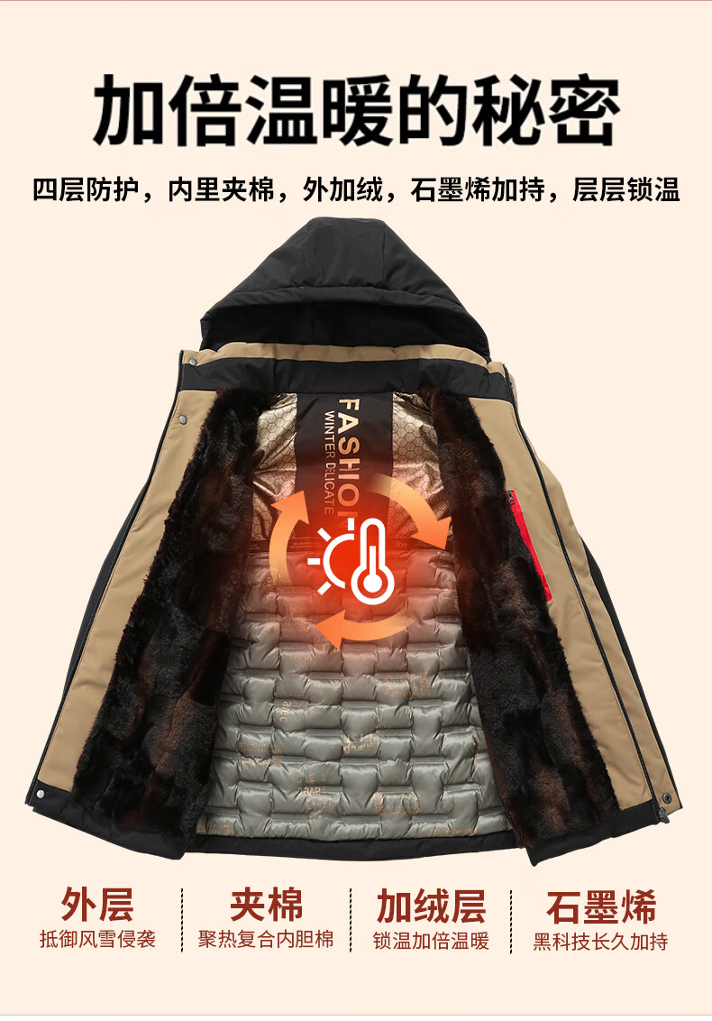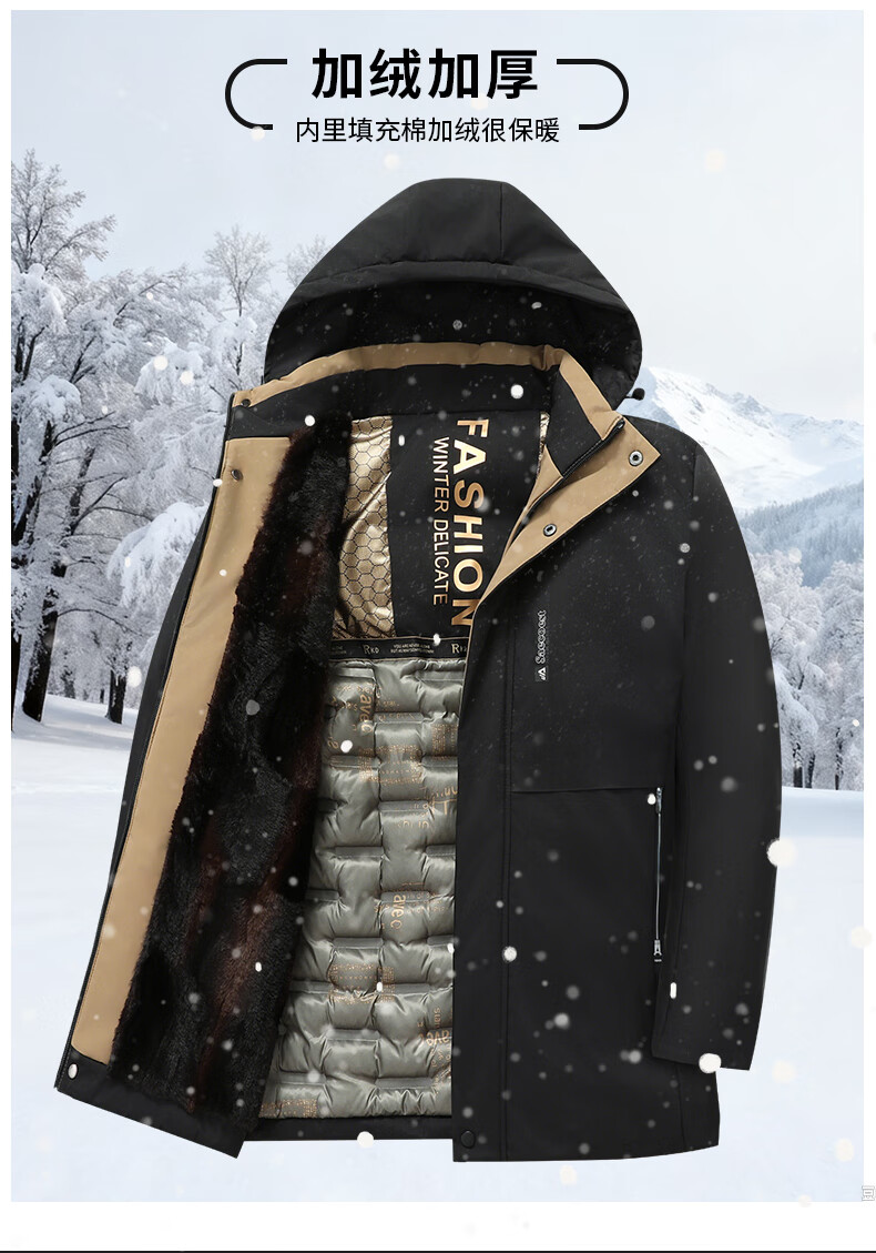 皮尔卡丹(pierre cardin)棉服男2025冬季外套中年宽松加绒加厚棉衣爸爸冬装棉袄子男 黑色 XL