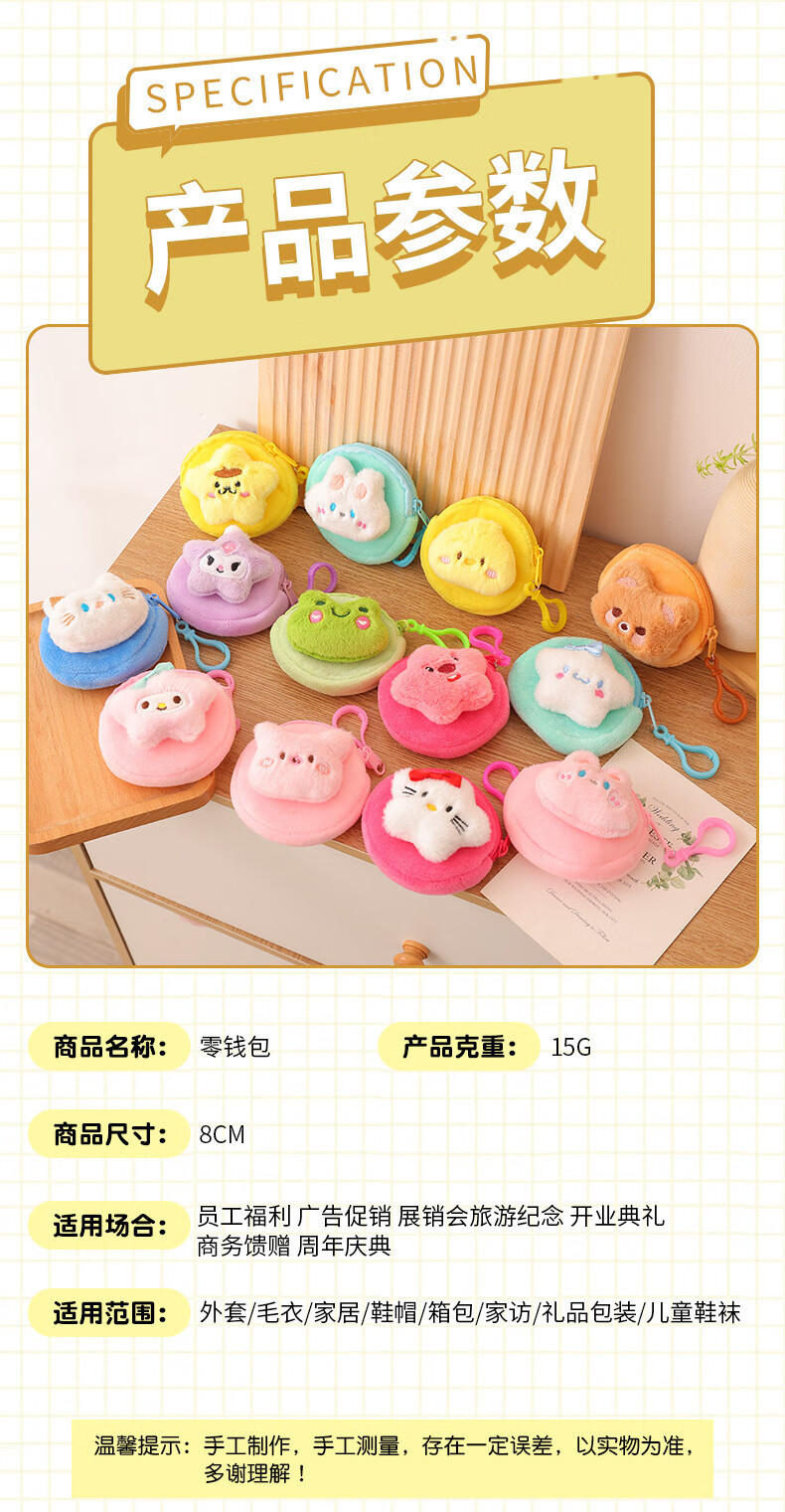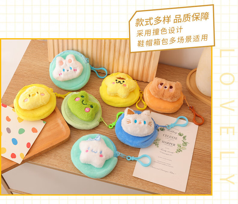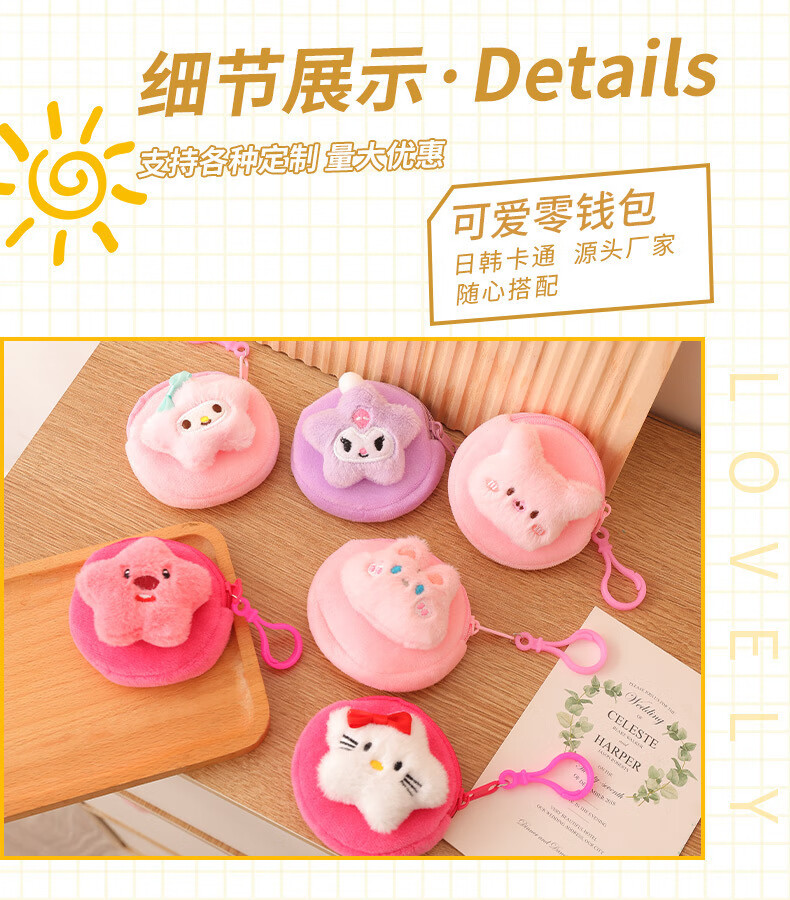 【精选好礼】卡通零钱包可爱少女心毛绒可挂包包迷你零钱硬币耳机 布丁狗星星零钱包