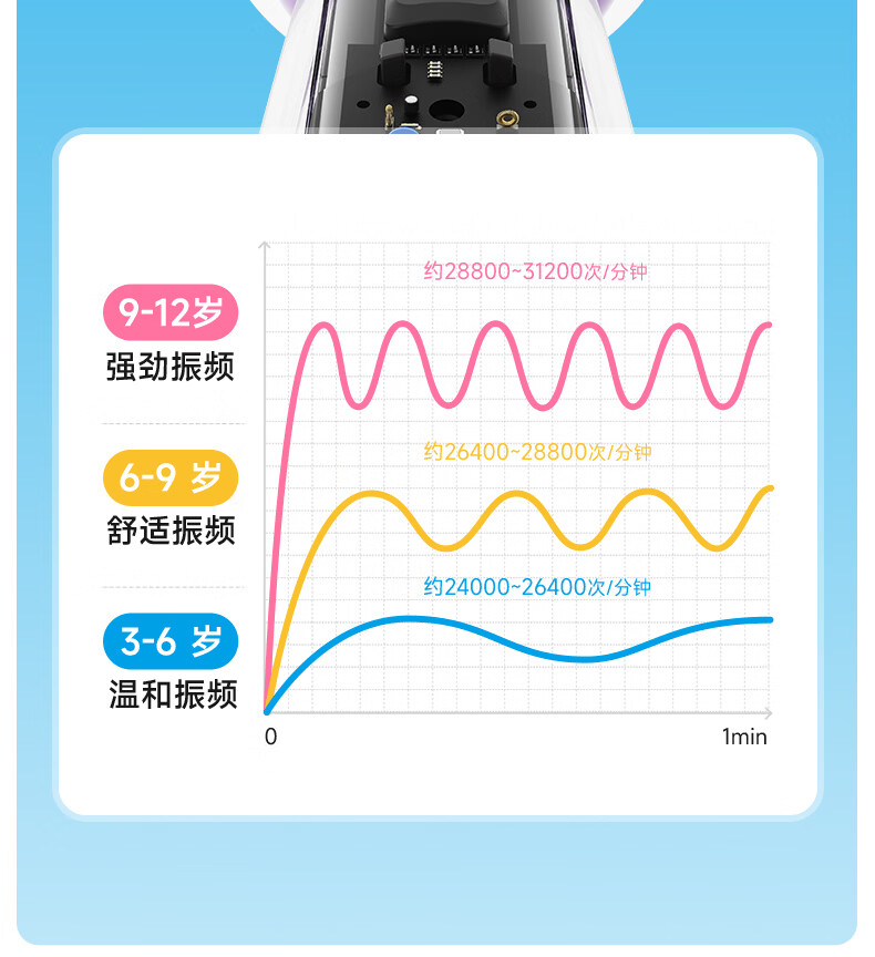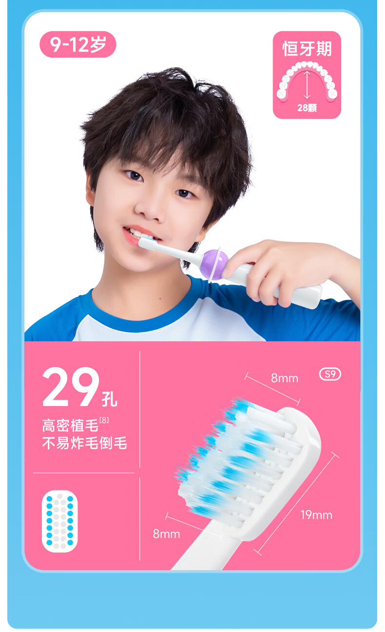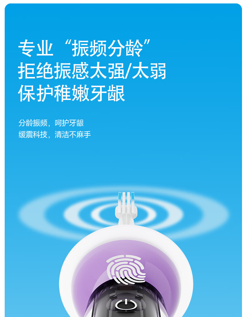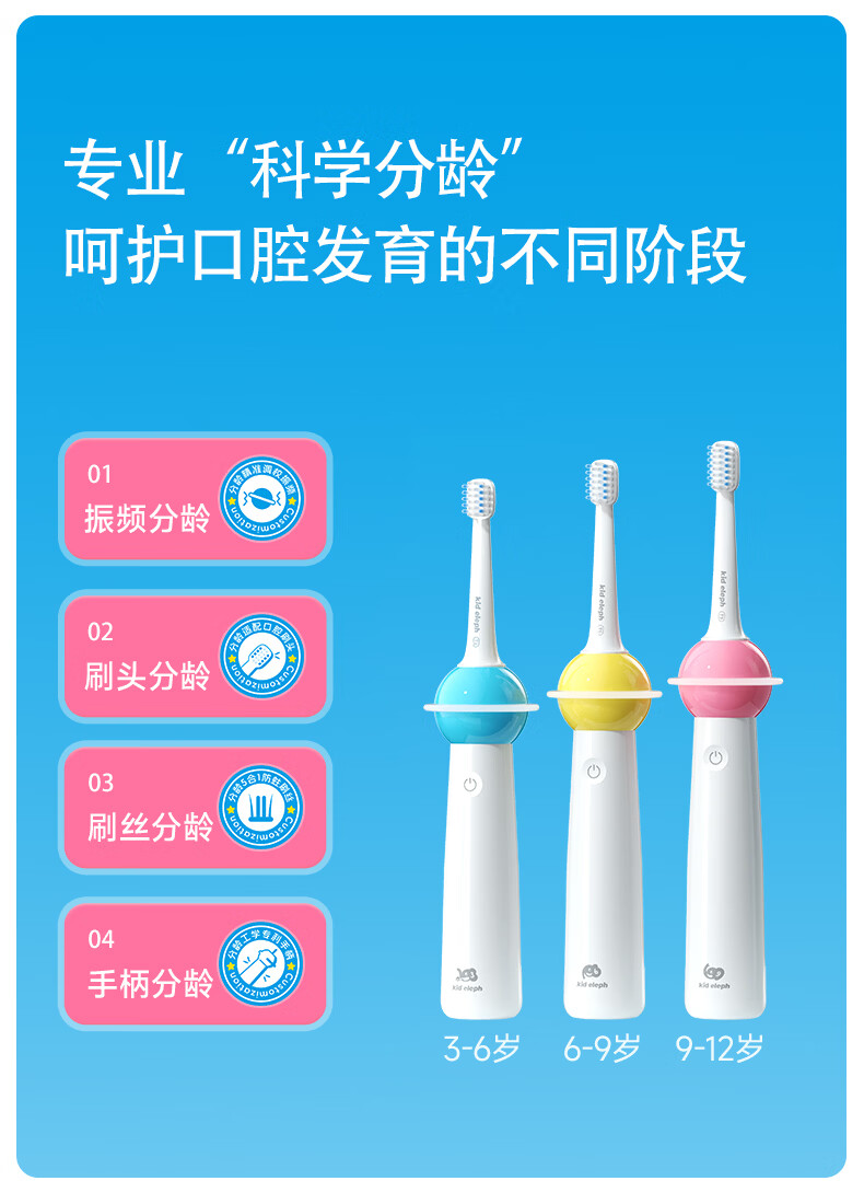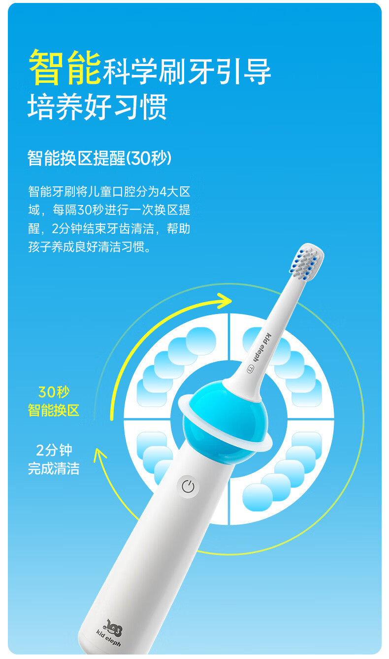 小象宝宝超薄刷头儿童分龄电动牙刷扫振自动式清洁软毛3-6岁6-9岁9-12岁专用含氟刷丝防蛀防龋智能分区定时 【6-9岁】换牙期专用-绚丽紫