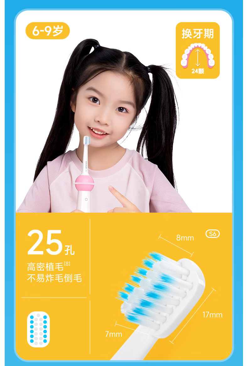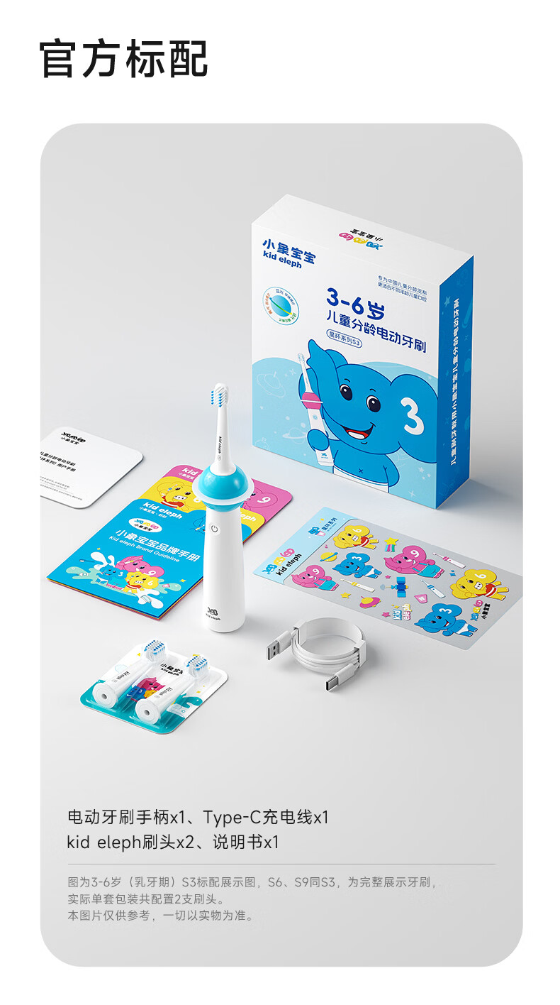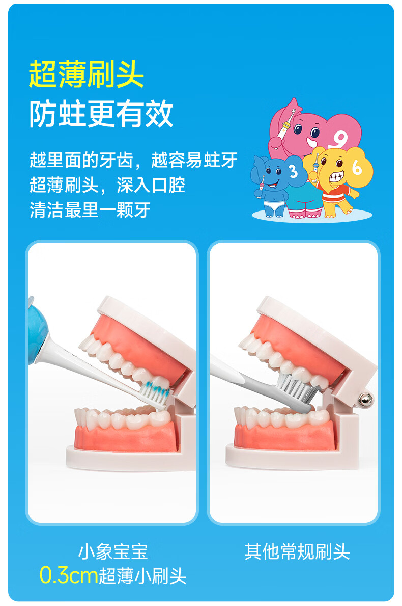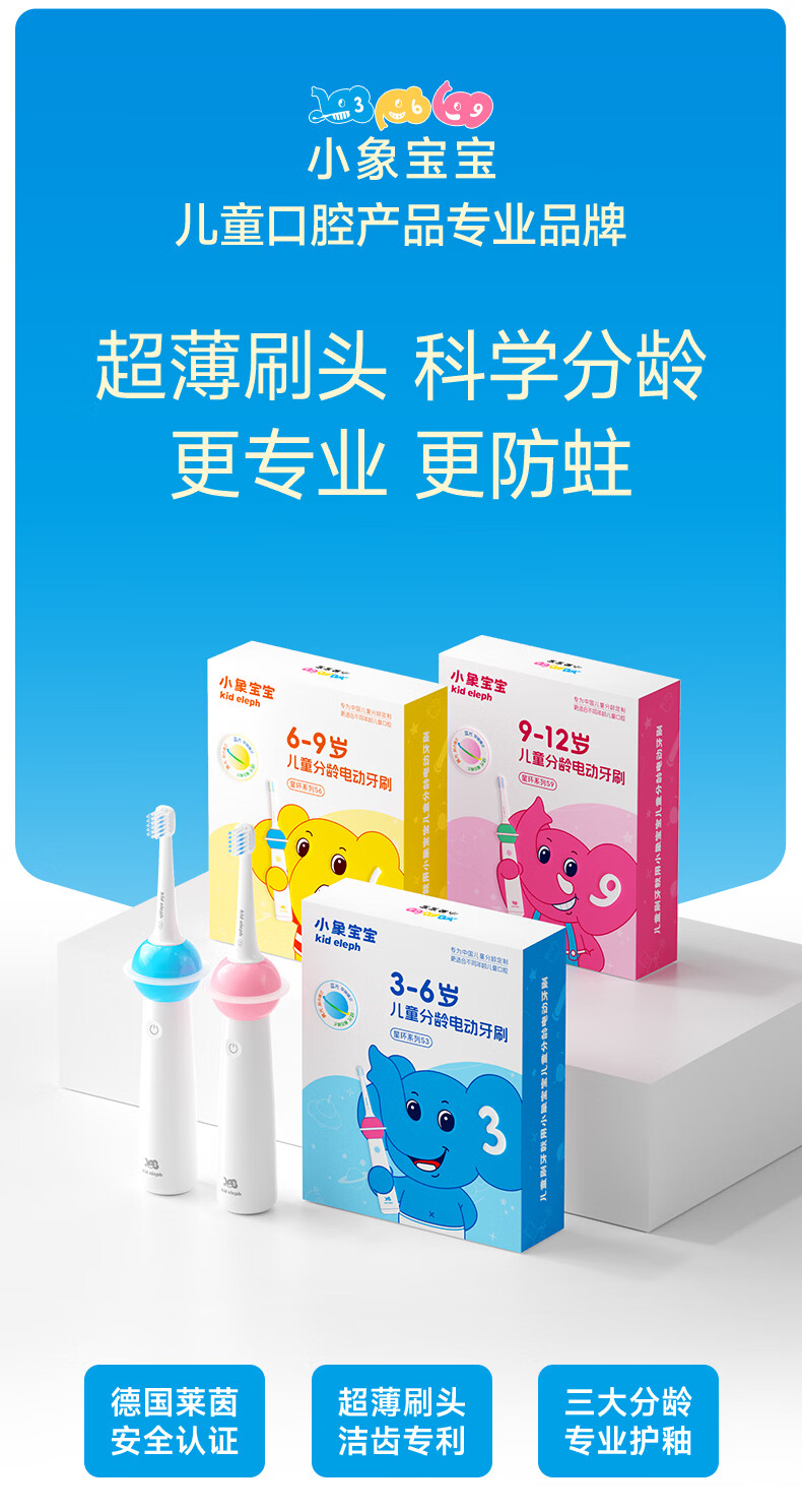 小象宝宝超薄刷头儿童分龄电动牙刷扫振自动式清洁软毛3-6岁6-9岁9-12岁专用含氟刷丝防蛀防龋智能分区定时 【6-9岁】换牙期专用-绚丽紫