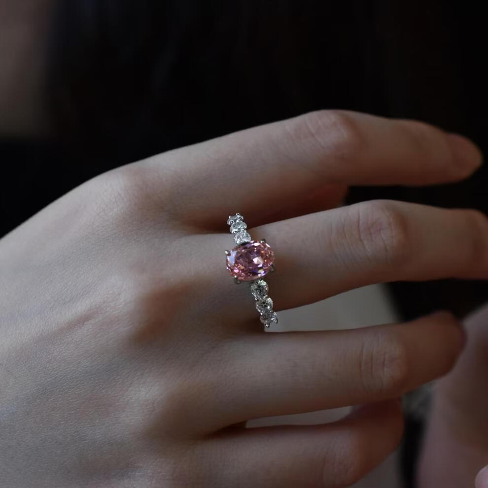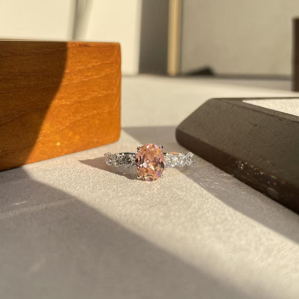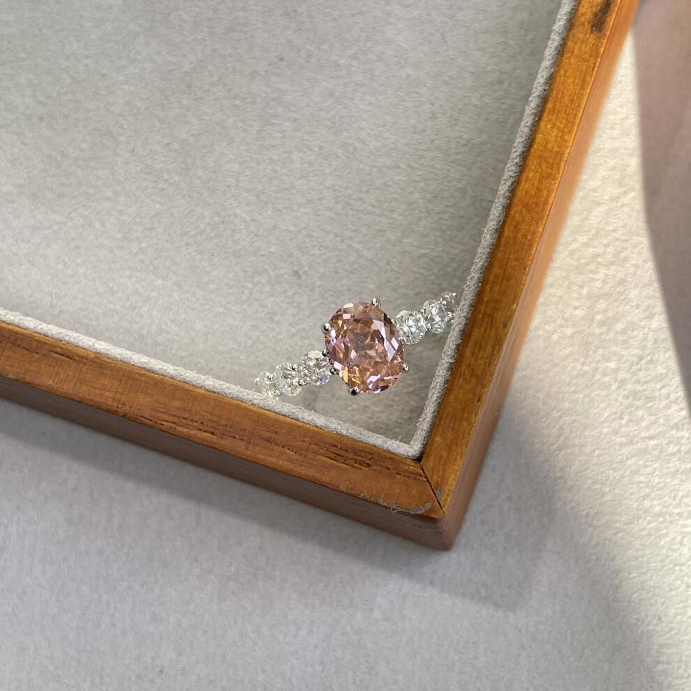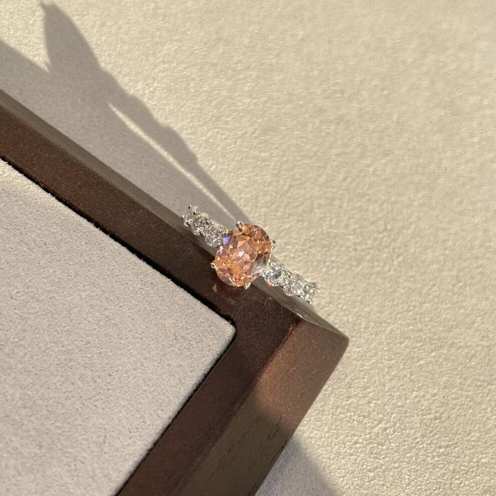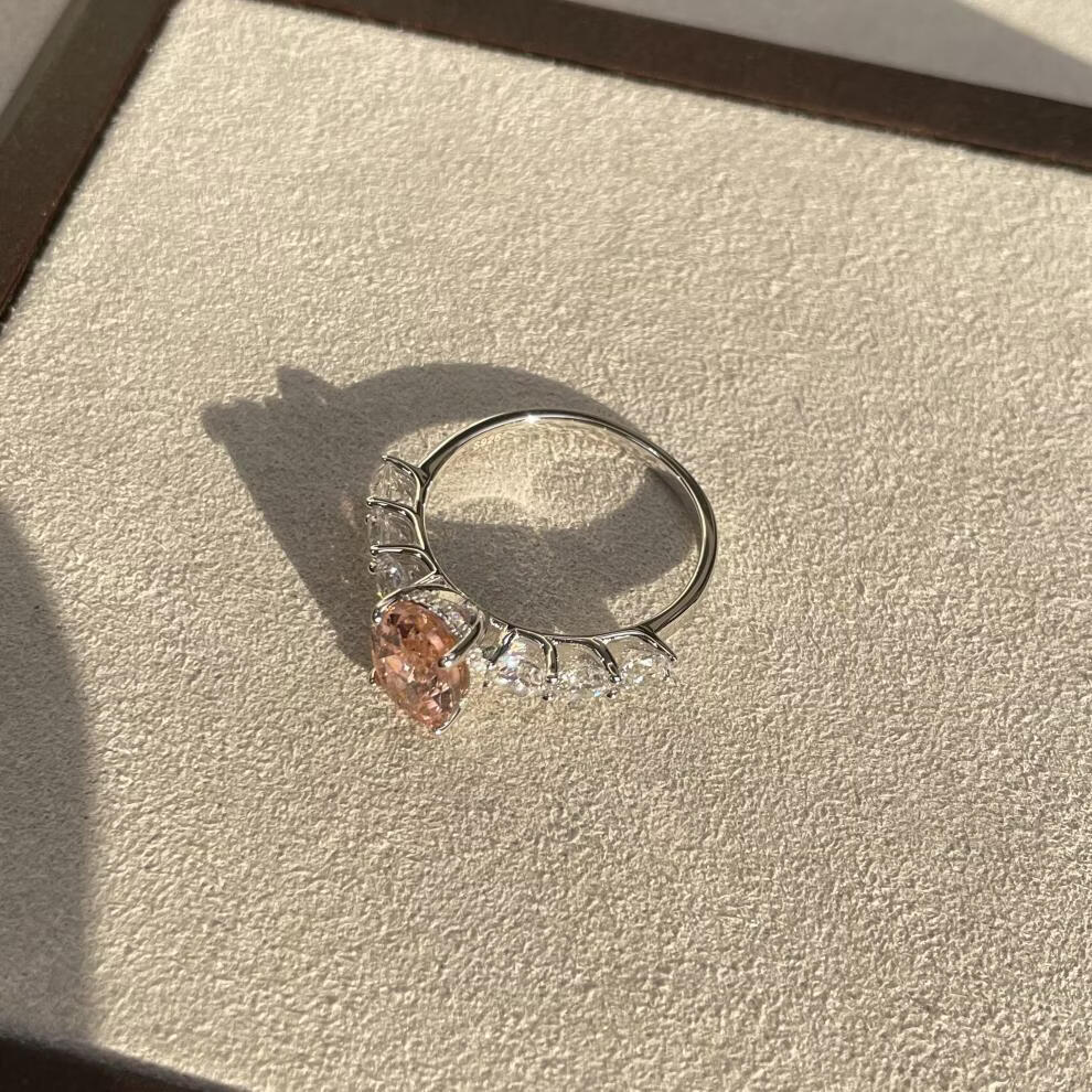 拉帕帕拉恰粉s925银戒指7*9培育高碳钻人工彩宝镶嵌 美号5号-港号10-11号-指围50