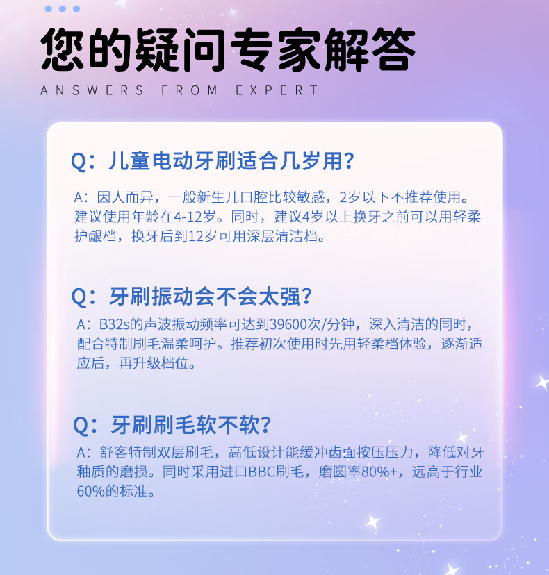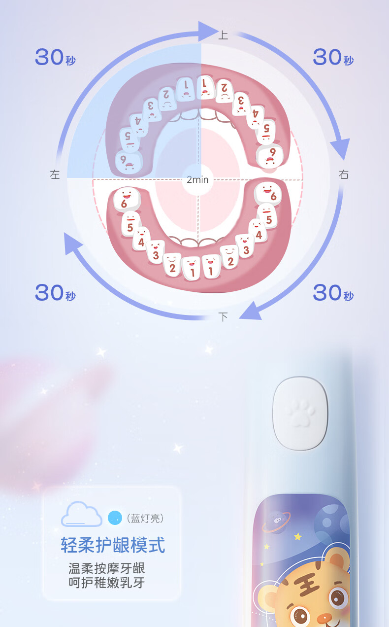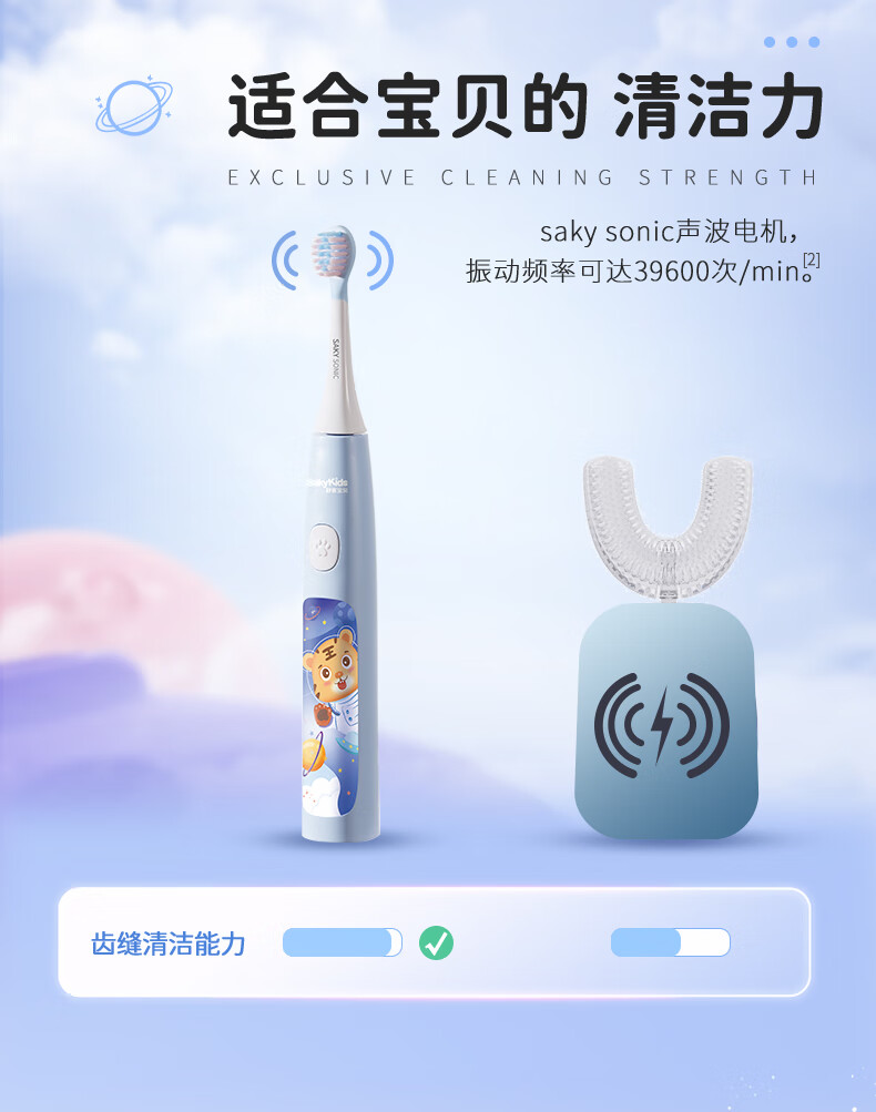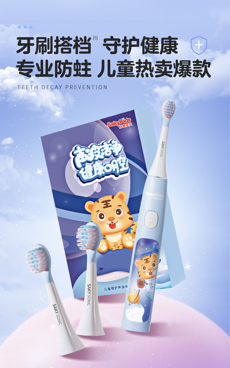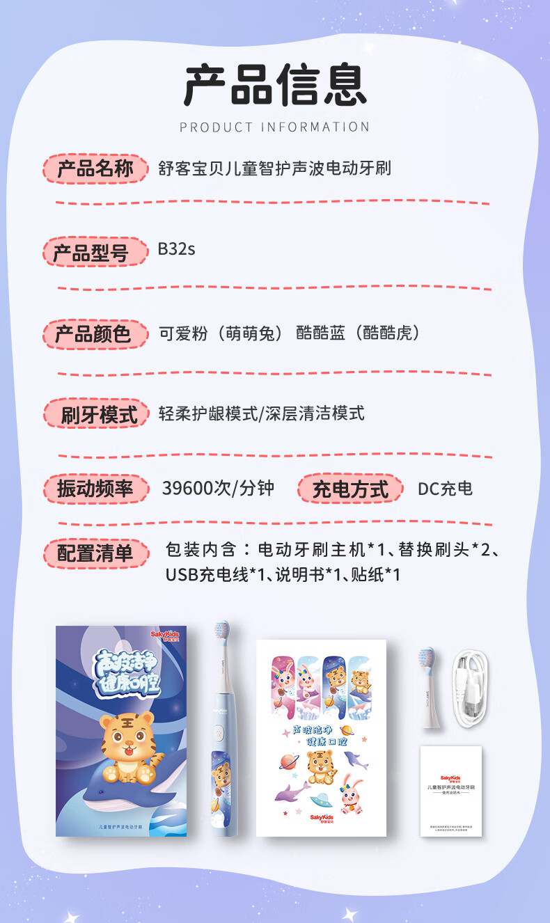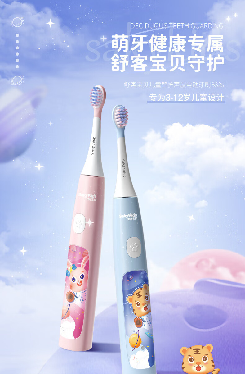 舒客宝贝儿童小孩电动牙刷高效清洁防蛀牙软毛护龈智能定时B32s 男宝(适用3-12岁)儿童节礼物国家补贴