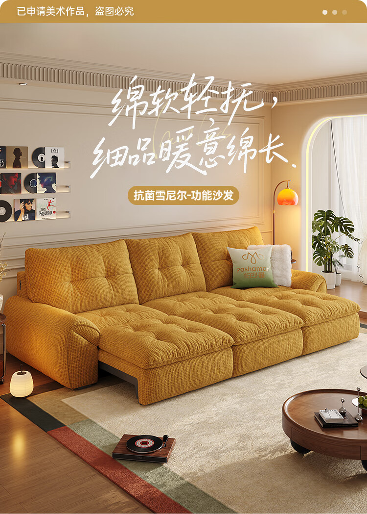 帕沙曼云朵电动沙发床客厅2025新款现代简约伸缩直排布艺沙发GF502-C 【语音+遥控+APP】3.35米多人位·三电动 【旗舰版】雪尼尔TY82 (硅胶棉+紫罗兰+竹炭海绵)