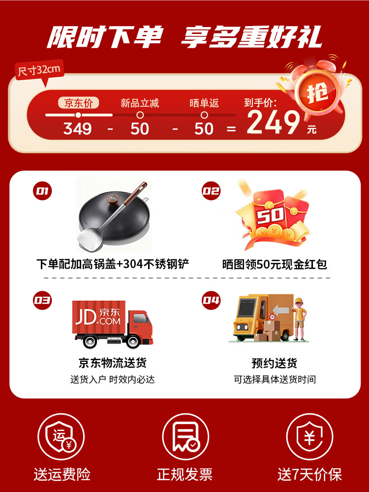 万代传铁锅章丘款炒锅不粘锅锻打无涂层老式炒锅燃气煤气灶通用圆底锅 【4-8人使用】 36cm 手工锻打古法黑锅