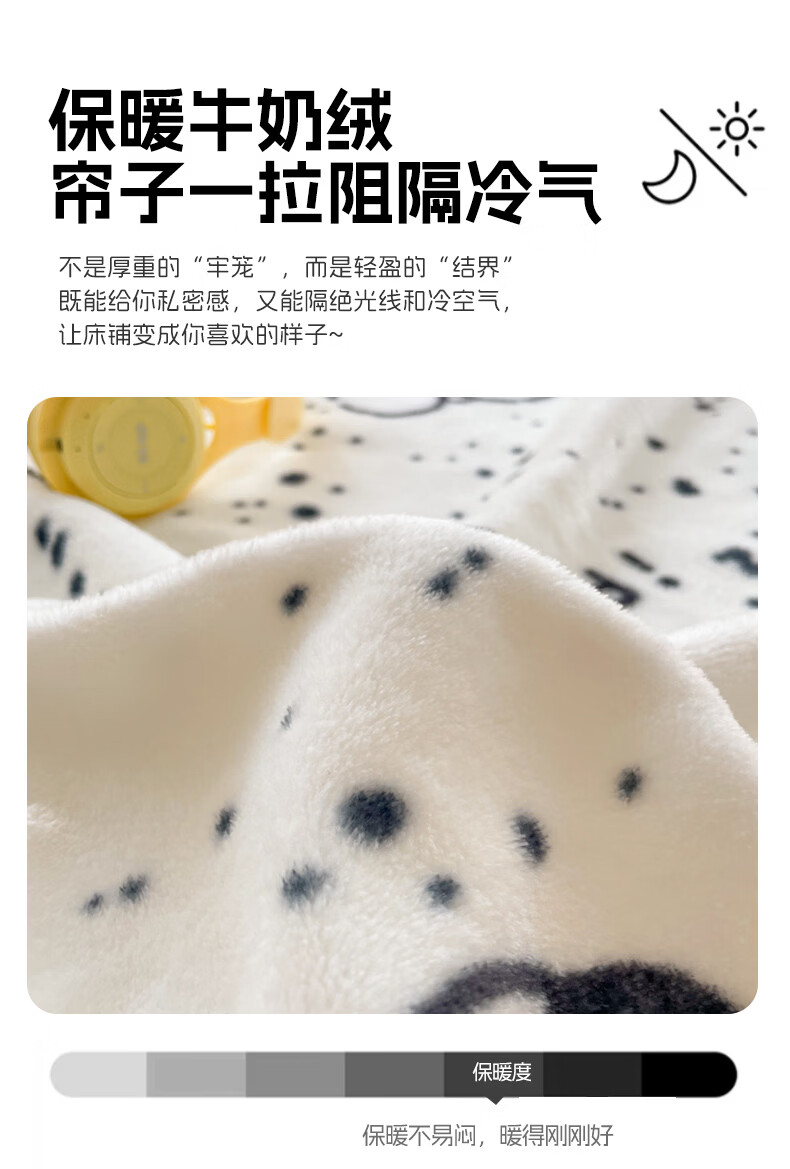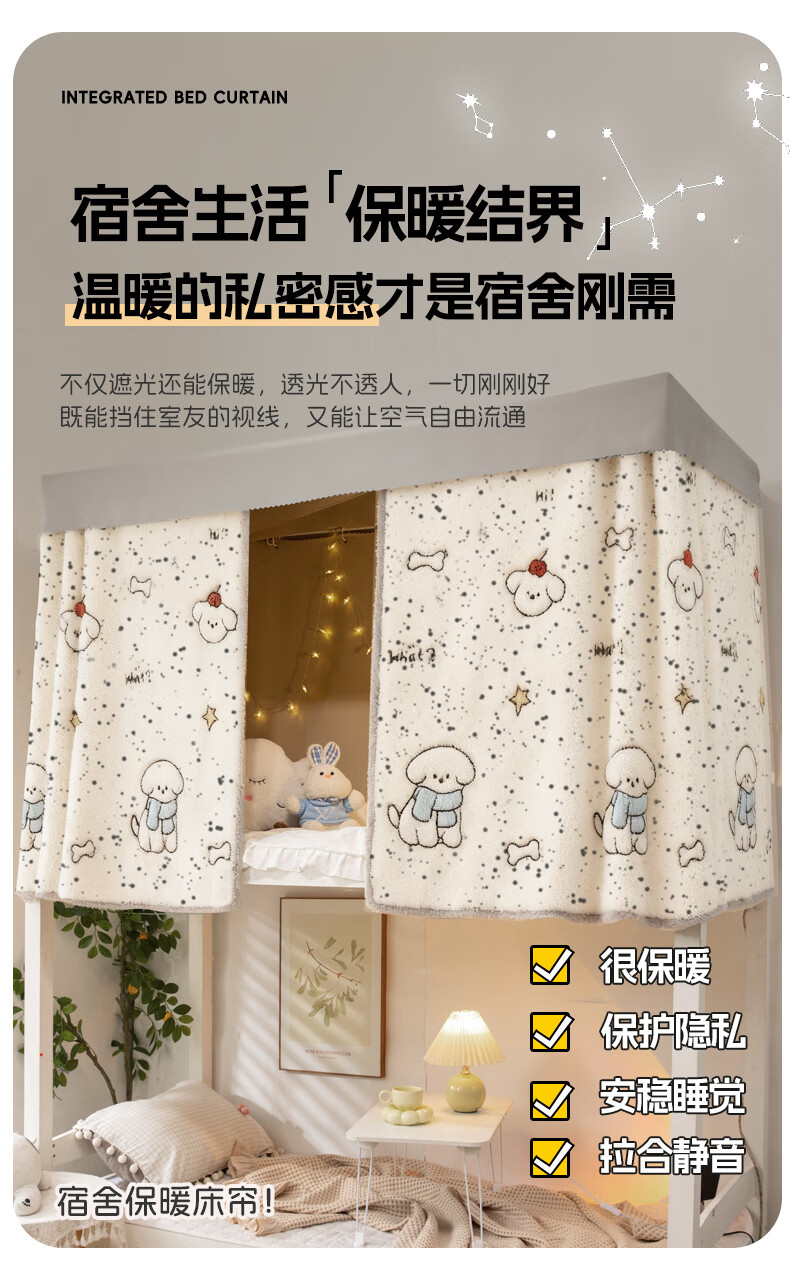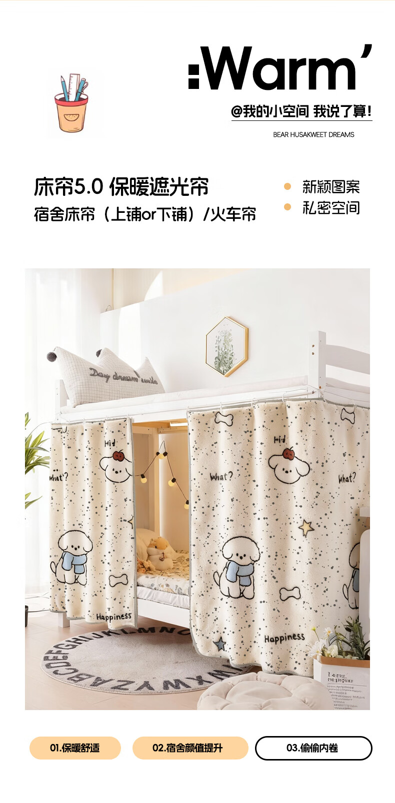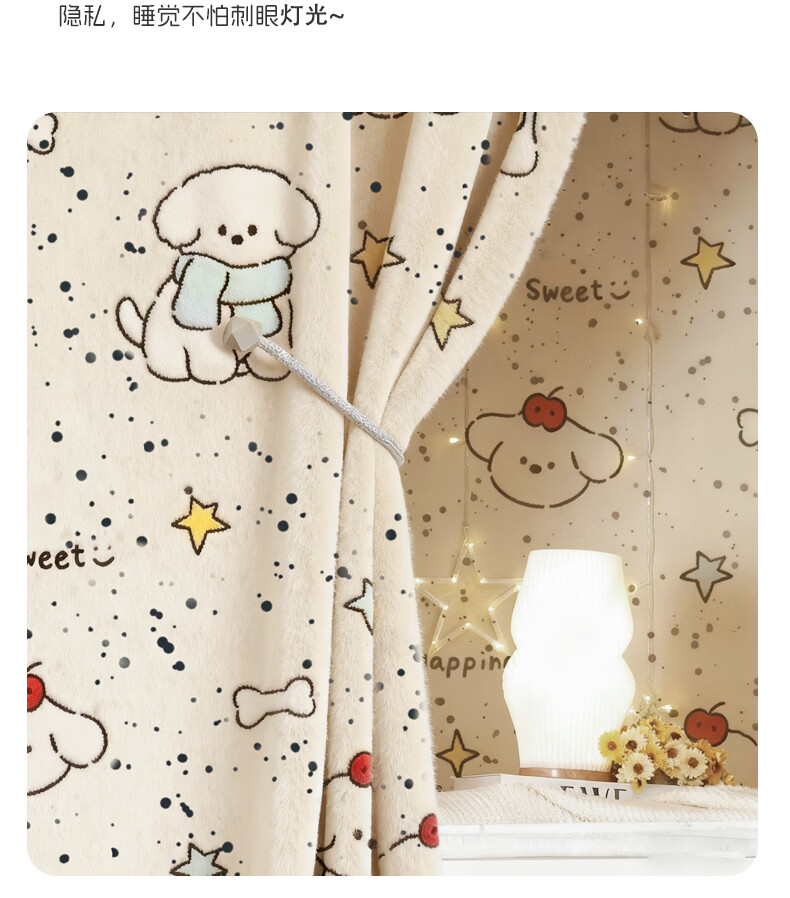高睿宿舍款保暖绒床帘冬季加厚款帘子床上下铺遮光透气卡通帘2025新款 斑点小狗【加厚防寒-宿舍保暖帘】 1.15*2.0米【1片围正面】含挂环