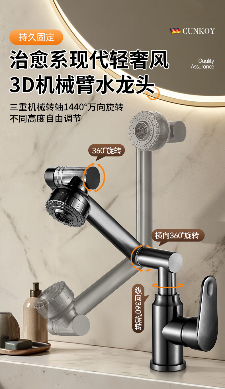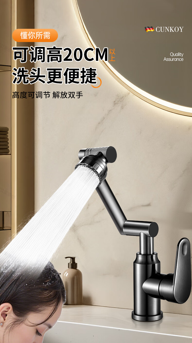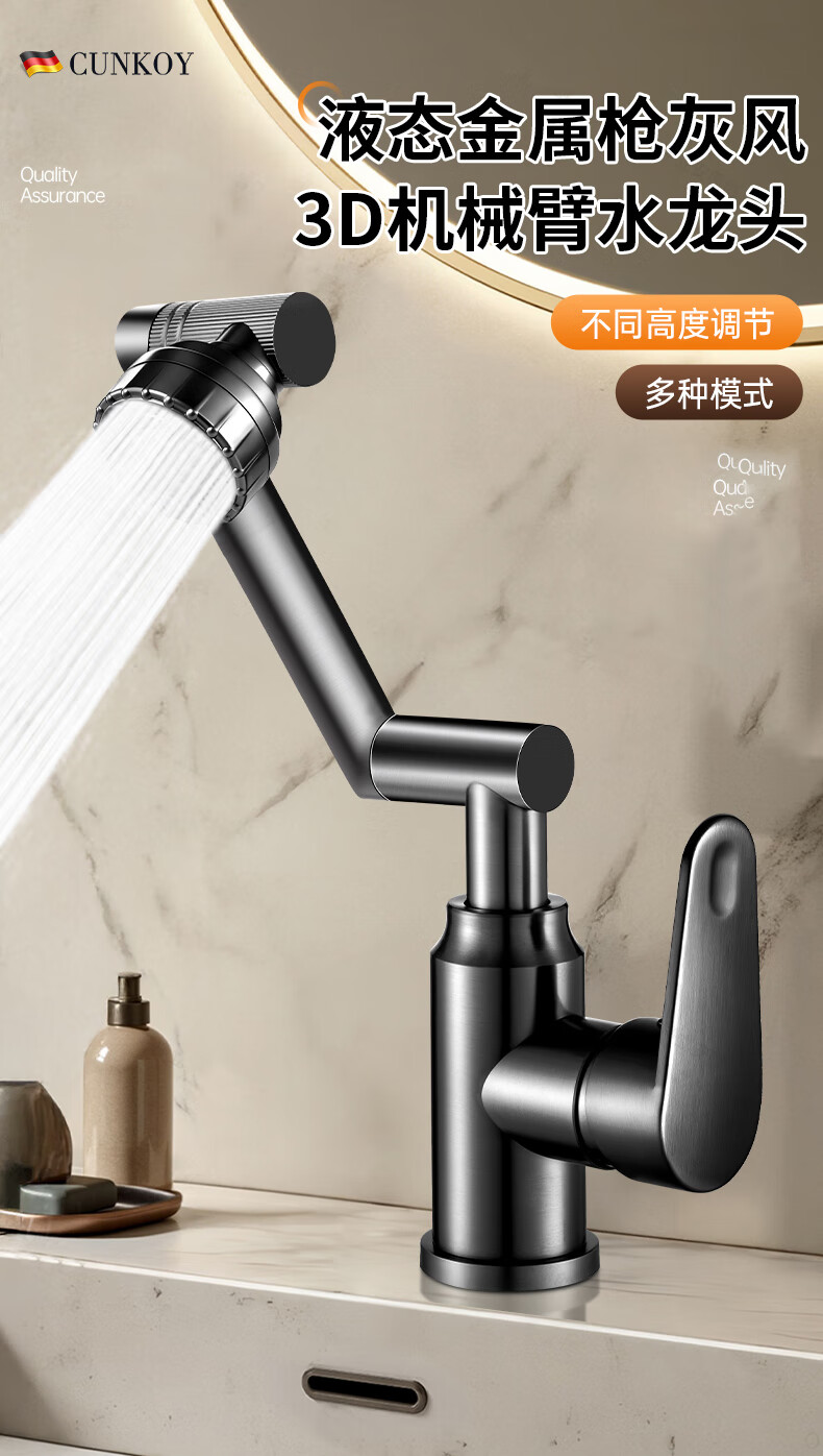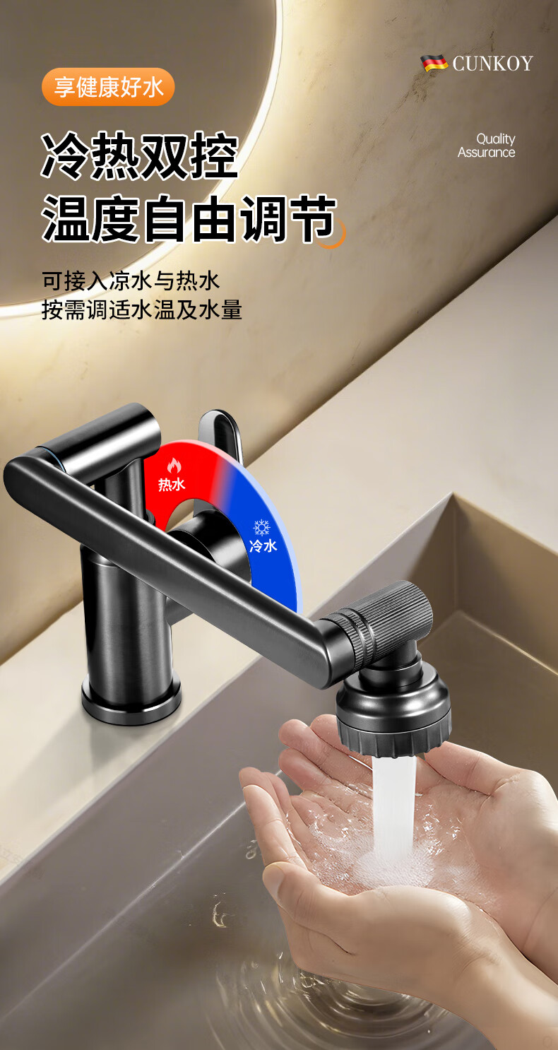 CUNKOY【德国】面盆水龙头洗手盆池洗脸盆台盆卫生间冷热水二合一水龙头 招财猫面盆龙头【304不锈钢】枪灰 漏水包退换丨配80cm原装进水管*2