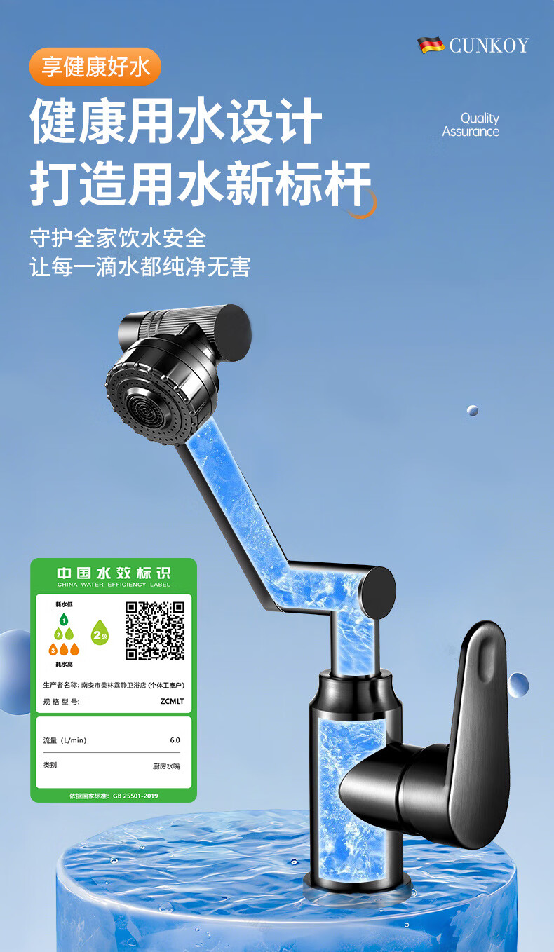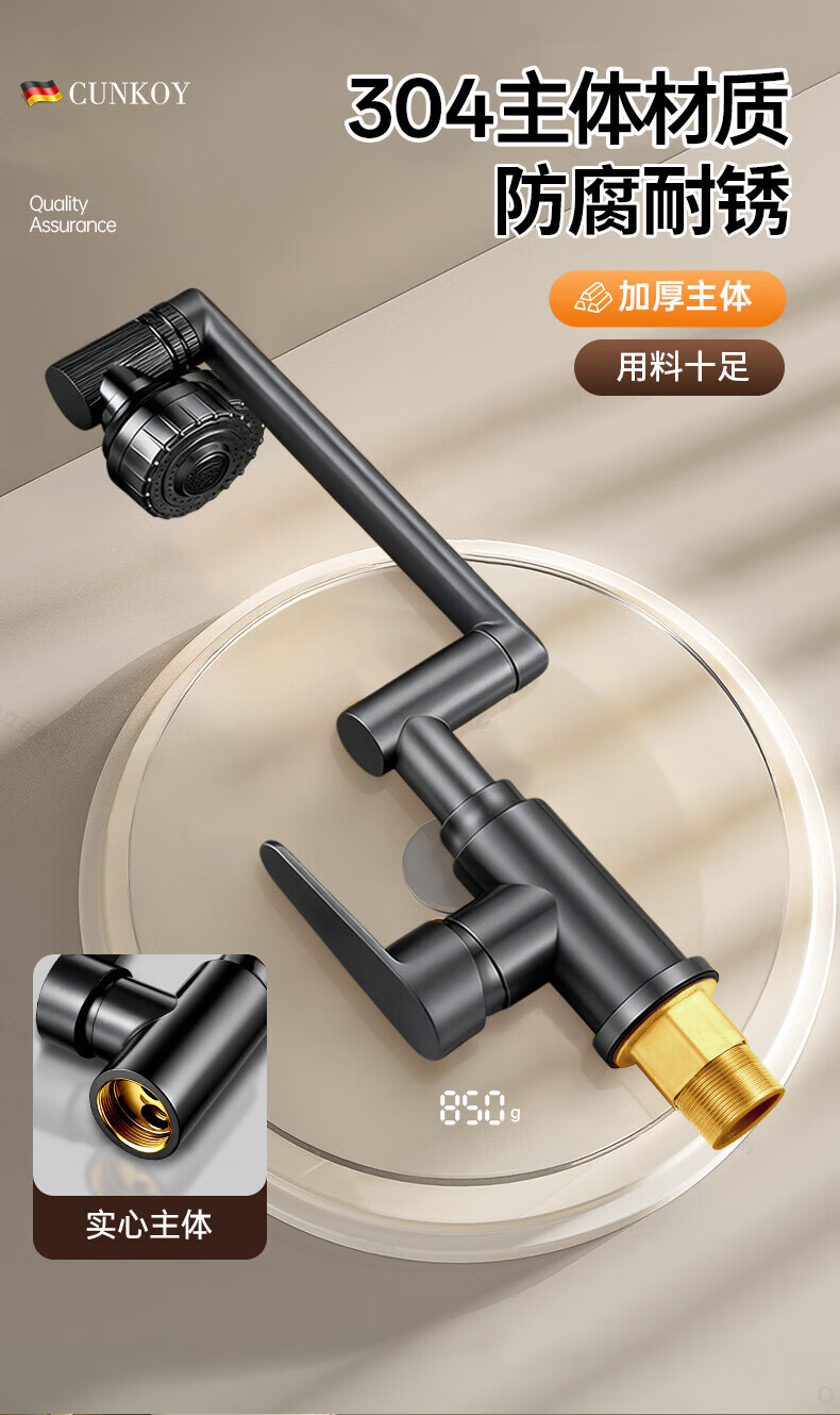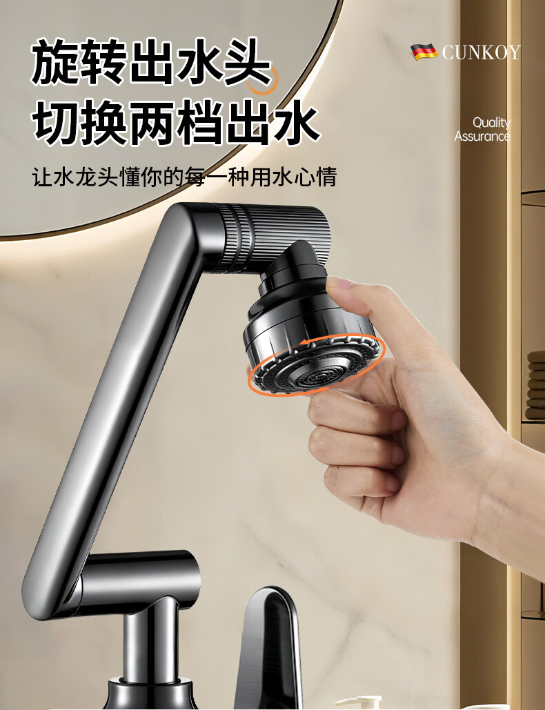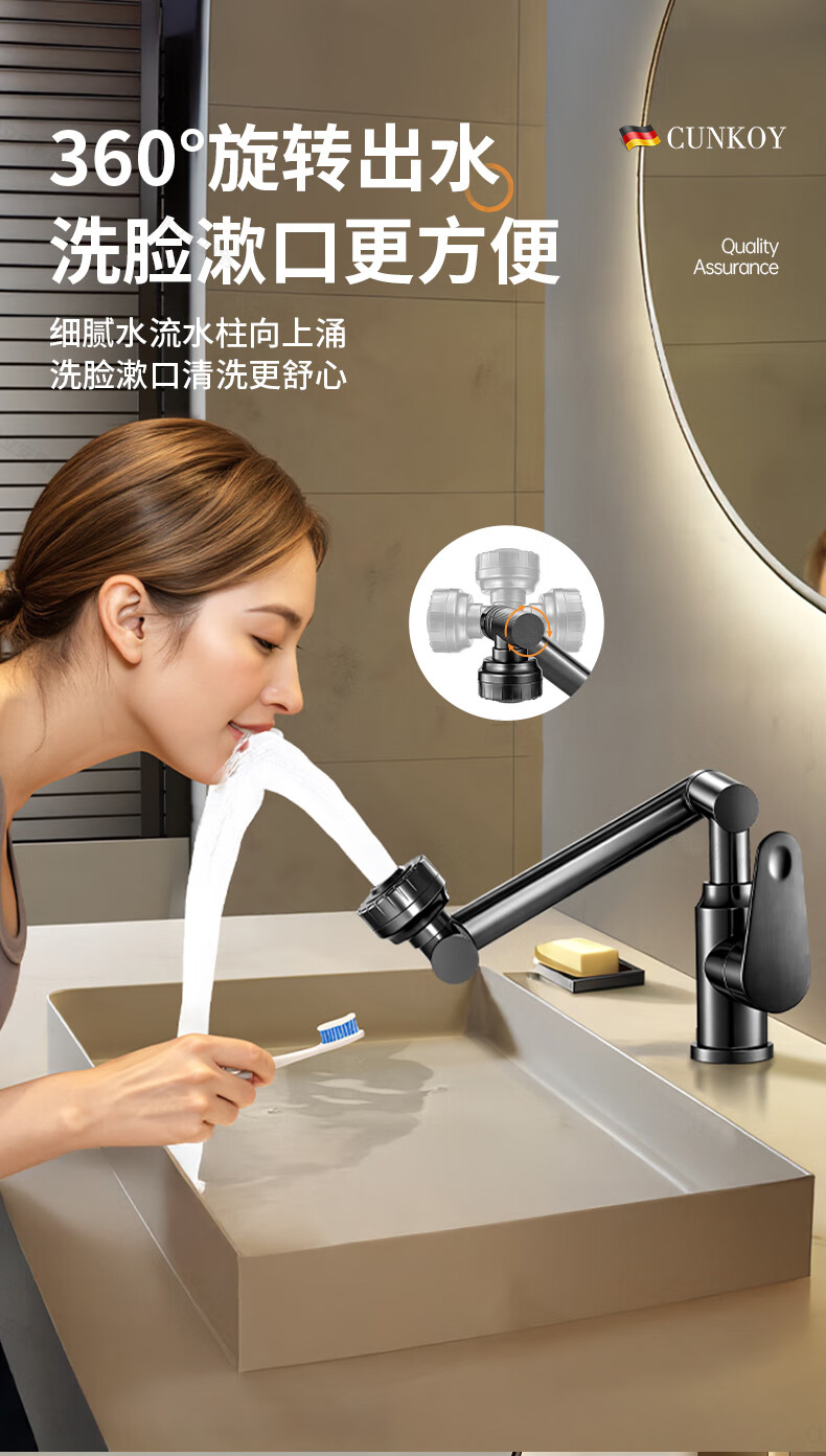 CUNKOY【德国】面盆水龙头洗手盆池洗脸盆台盆卫生间冷热水二合一水龙头 招财猫面盆龙头【304不锈钢】枪灰 漏水包退换丨配80cm原装进水管*2