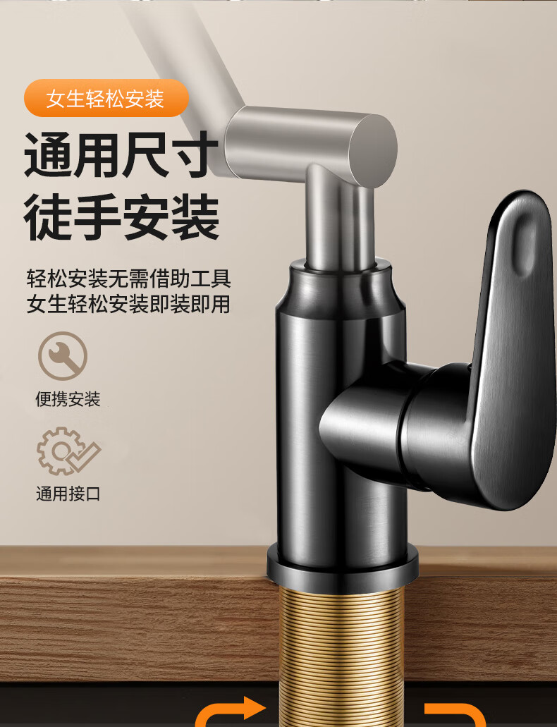 箭牌304不锈钢冷热水龙头可旋转抽拉龙头厨房抽拉式