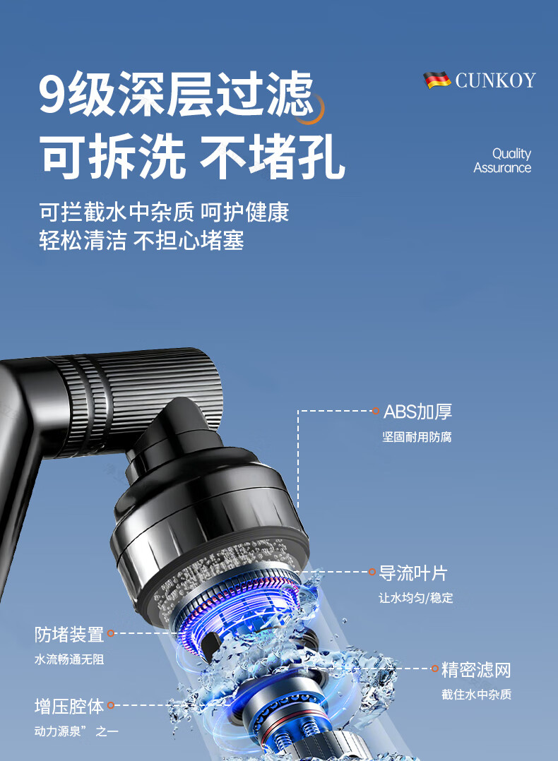 麦小登万向过滤调档增压一键止水花洒喷头净水除氯沐浴洗澡卫浴高压喷头 万向过滤花洒(单个喷头)