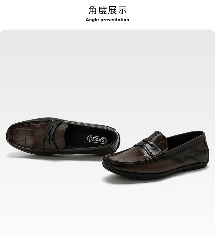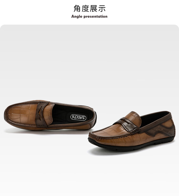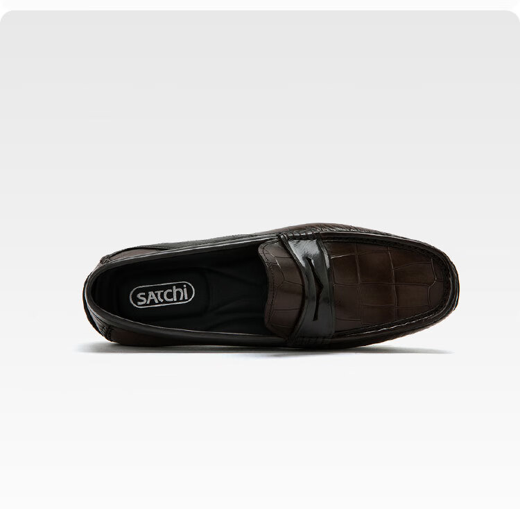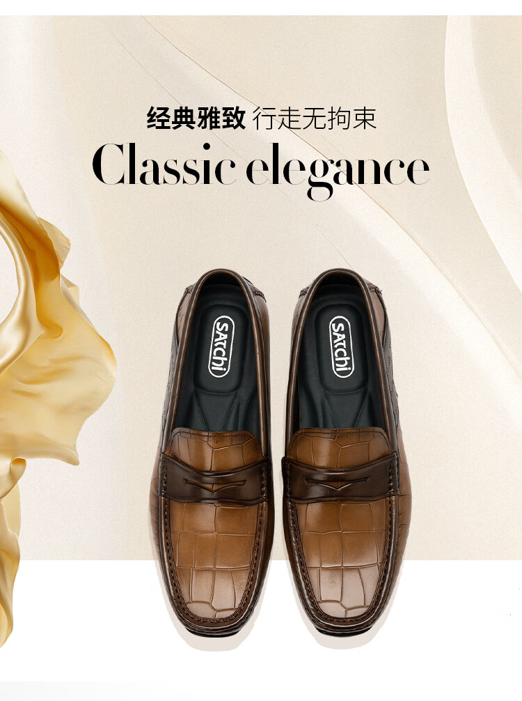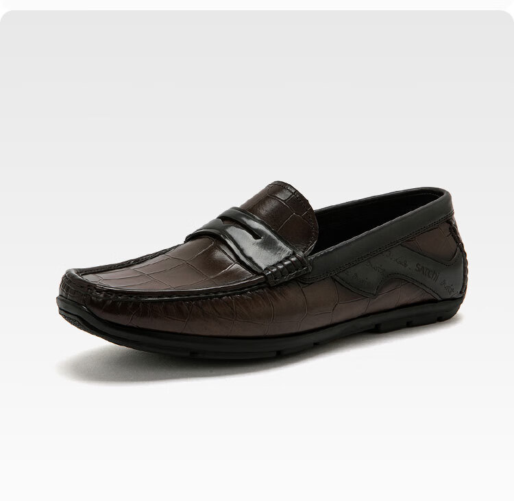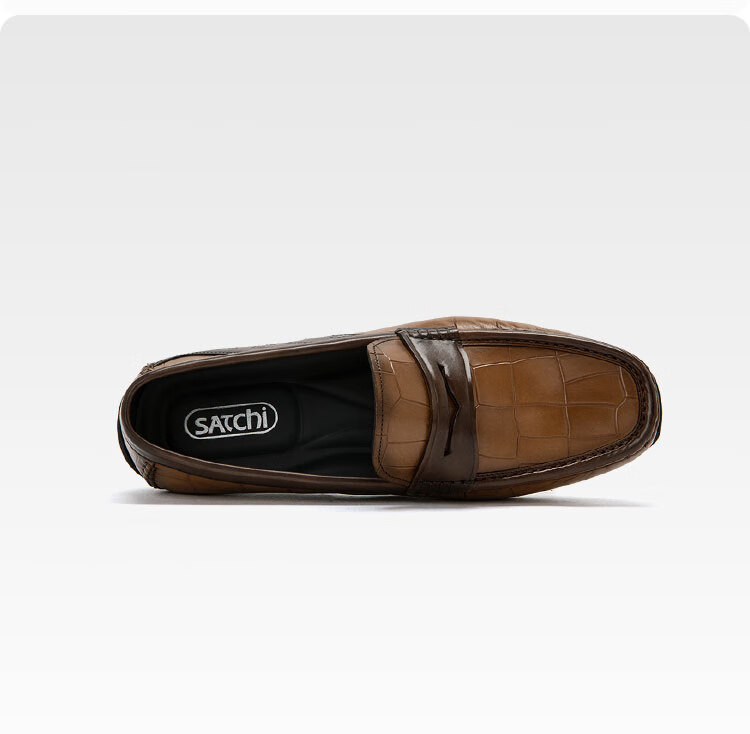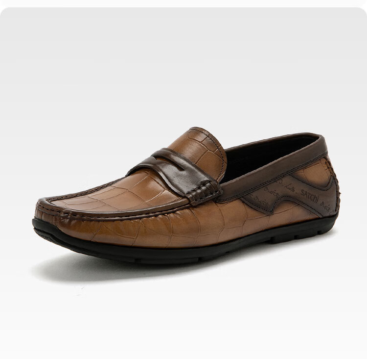 沙驰(SATCHI)男鞋牛皮舒适轻便鳄鱼纹豆豆鞋商务休闲鞋百搭套脚皮鞋 咖色(1AXVB4278) 40 欧码(选小一码)