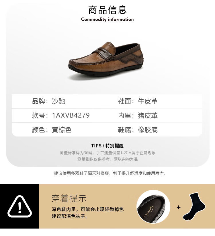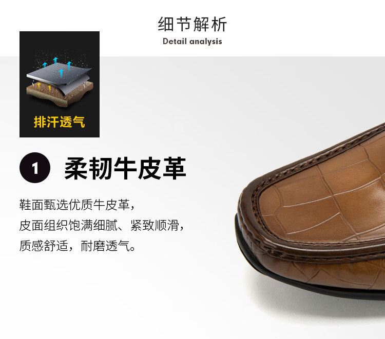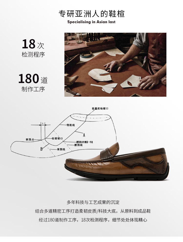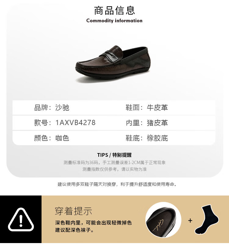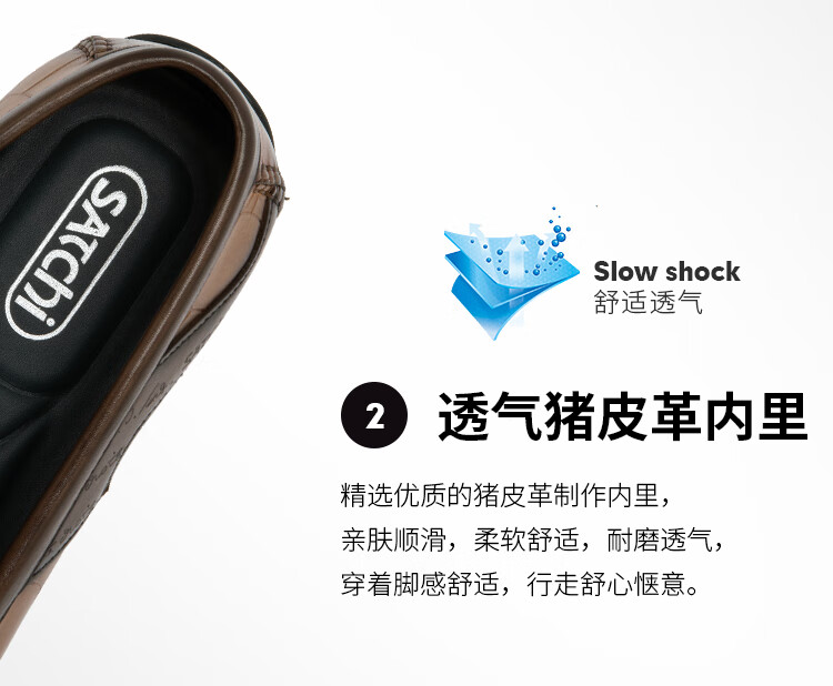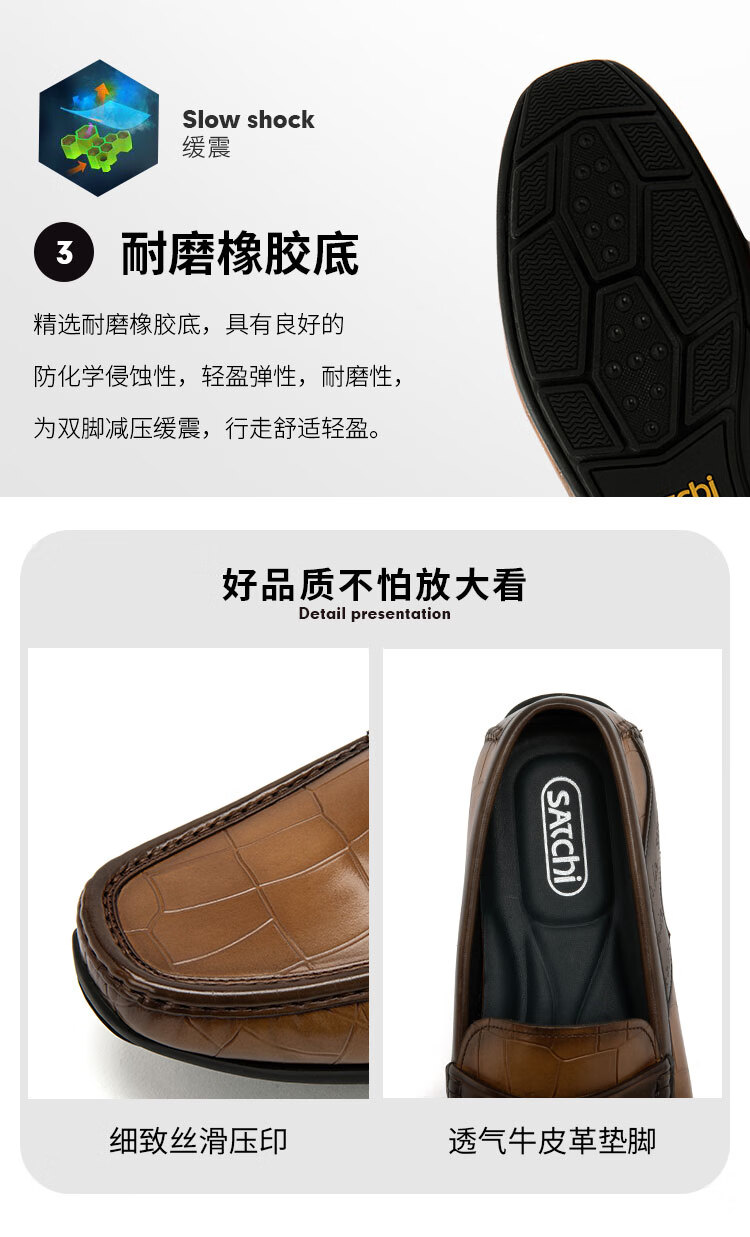 沙驰(SATCHI)男鞋牛皮舒适轻便鳄鱼纹豆豆鞋商务休闲鞋百搭套脚皮鞋 咖色(1AXVB4278) 40 欧码(选小一码)