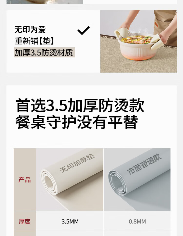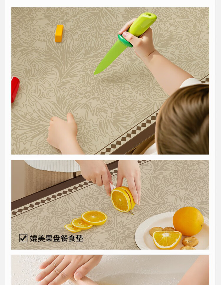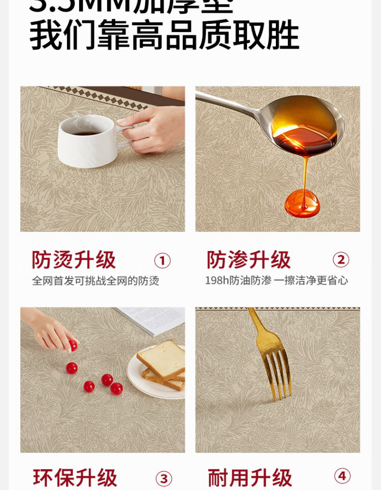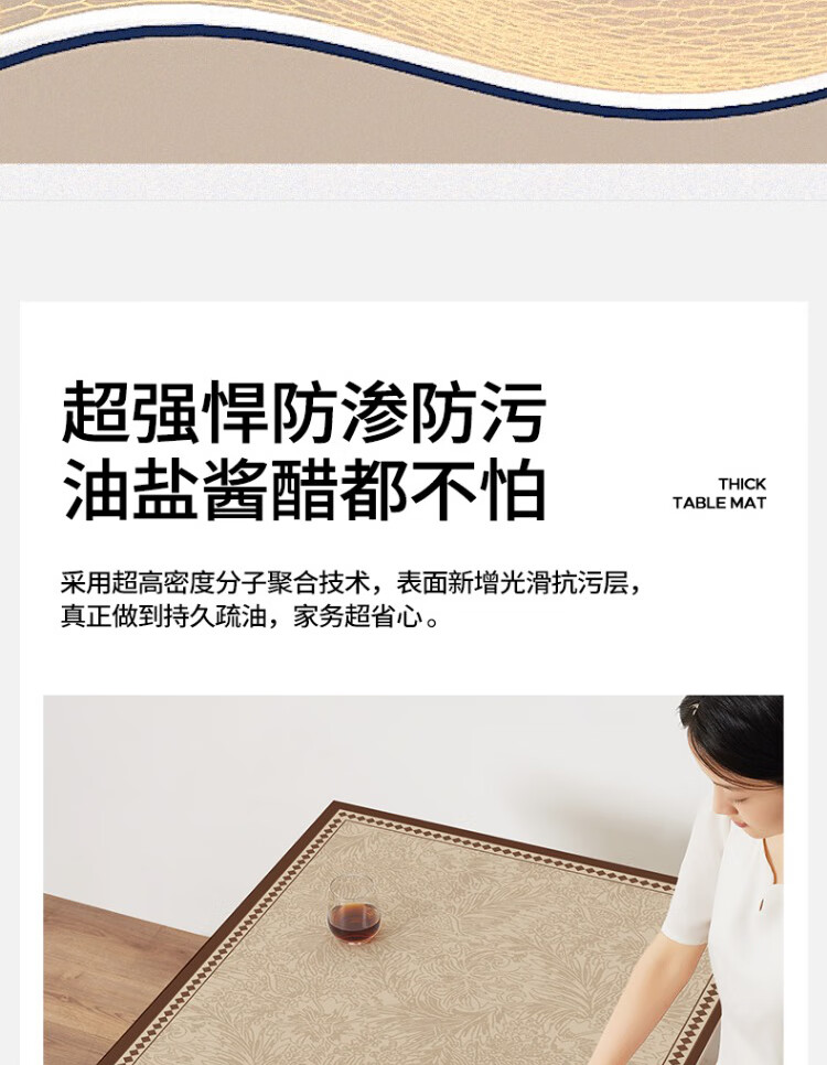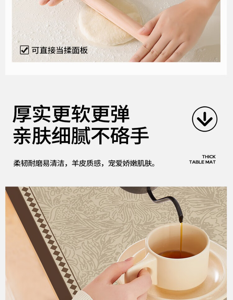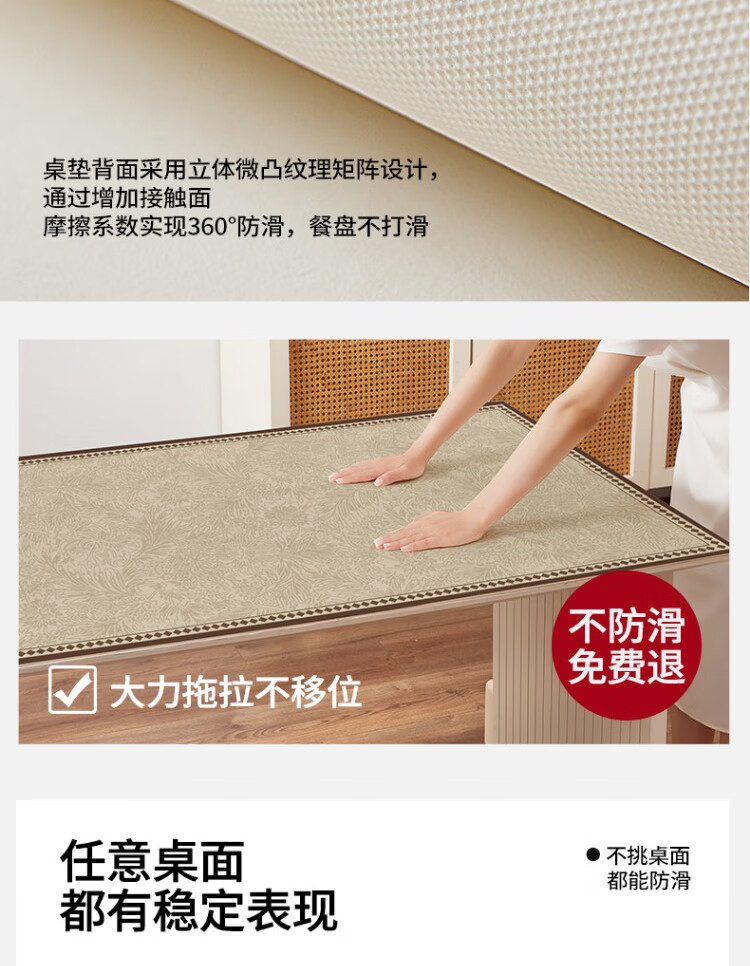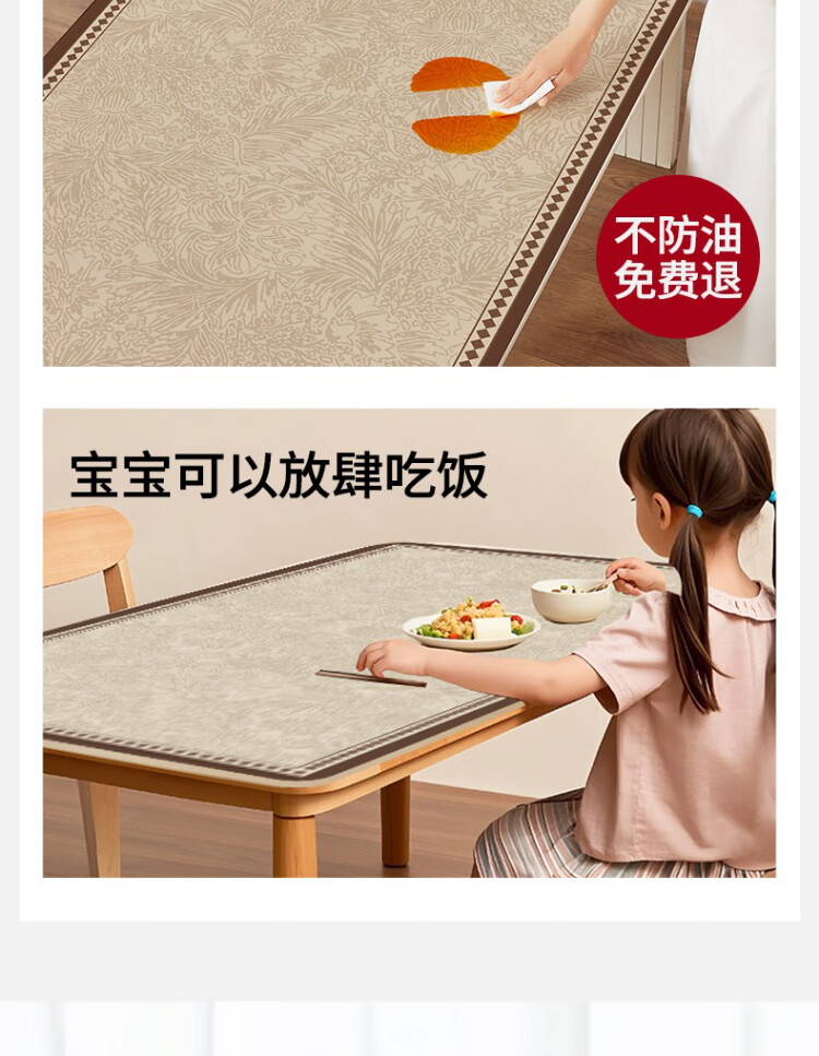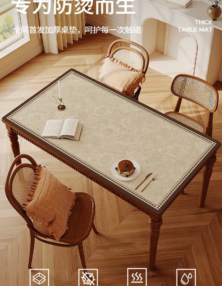 朗格【0异味硅胶】中古风桌布防水防油防烫免洗桌垫轻奢高级感餐桌垫 罗薇 【升级防滑紧贴桌面】 60*60cm