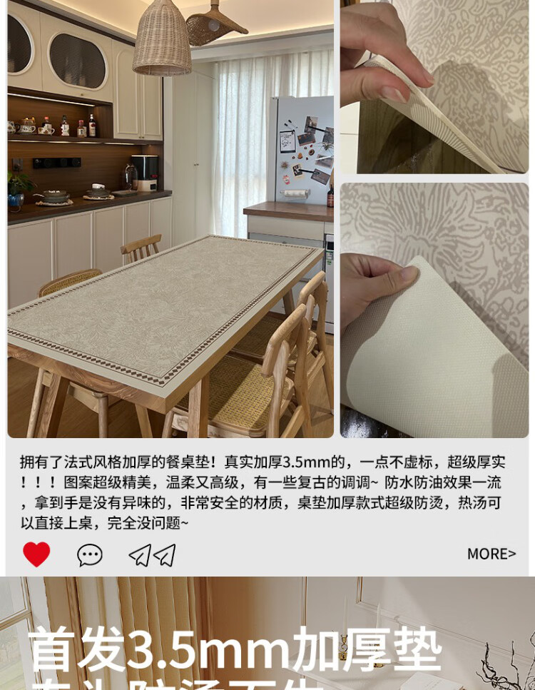 无印良品加厚桌布防水防油免洗轻奢高级感桌垫法式桌面保护垫餐桌垫 米尔城堡 60*60cm