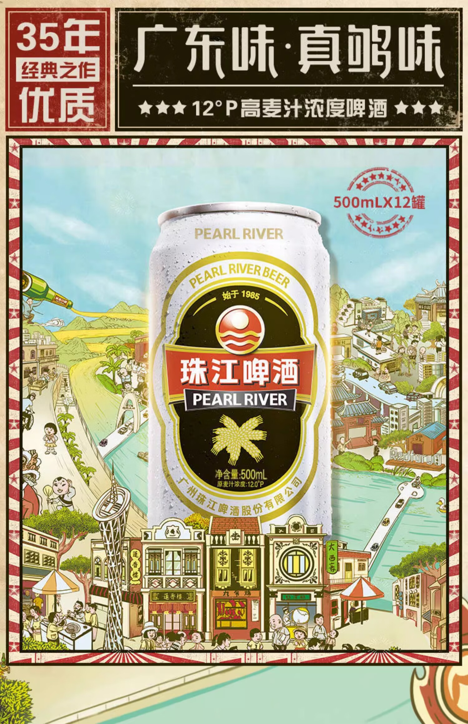 珠江啤酒(PEARL RIVER)12度 经典老珠江啤酒500ml*12听 整箱装 京东自营