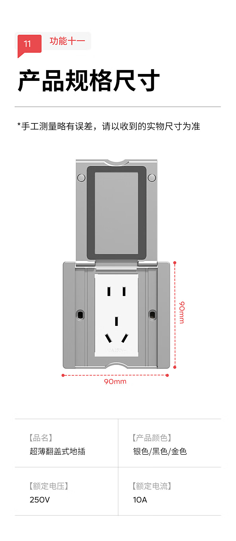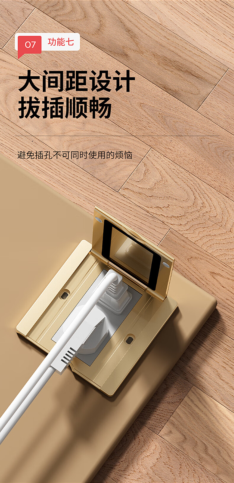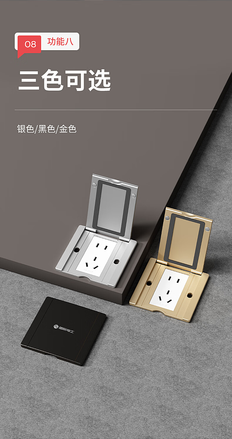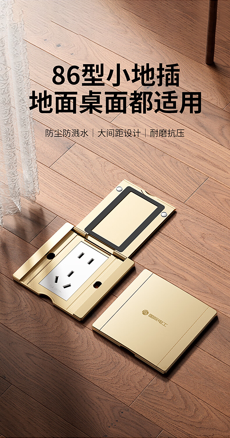 国际电工(FDD)86型超薄翻盖地插桌面隐藏嵌入式五孔电源网络面板防水地面插座 【86型金色】10A五孔