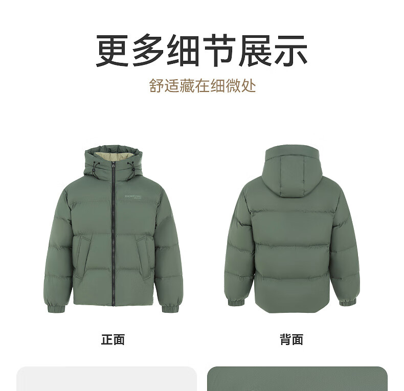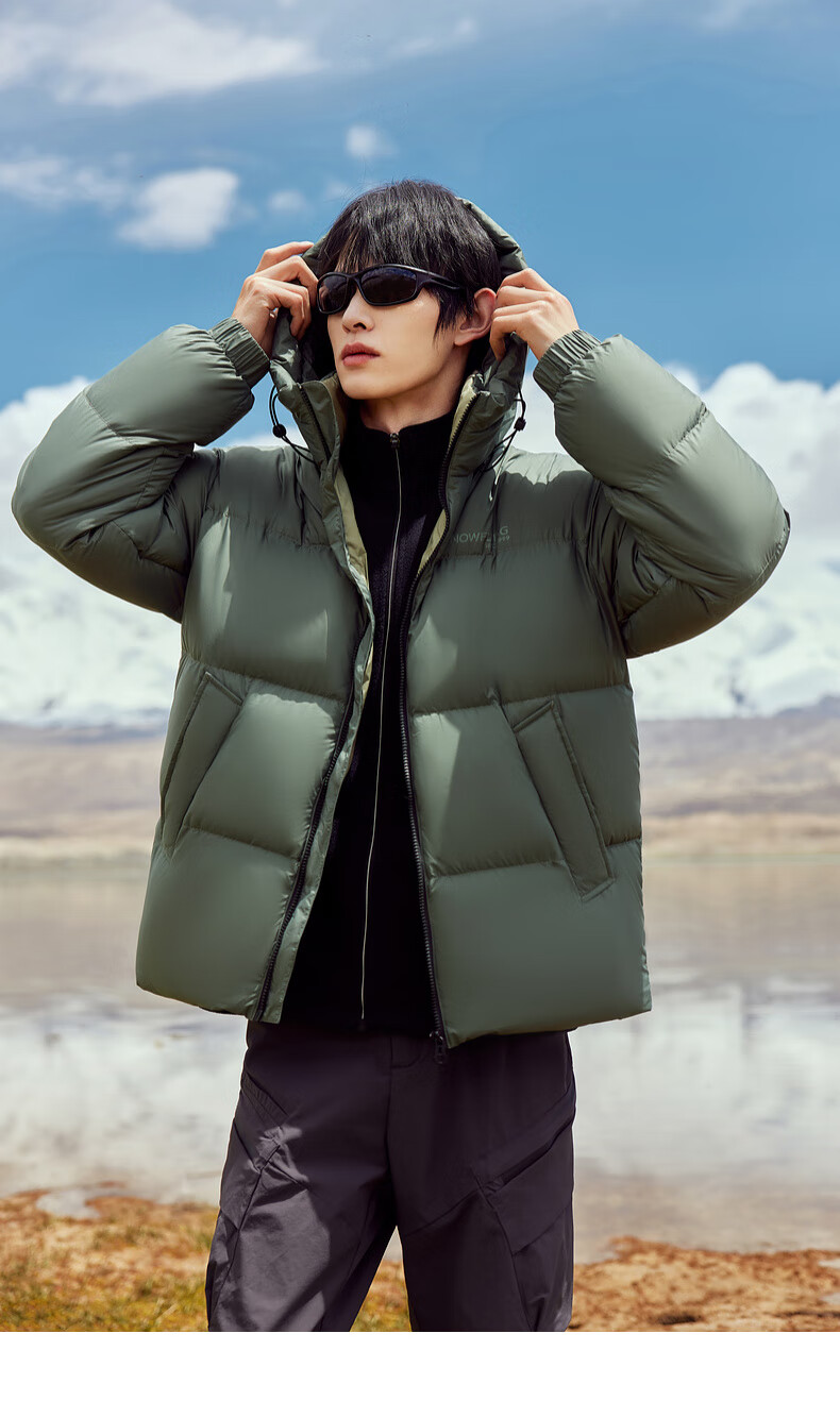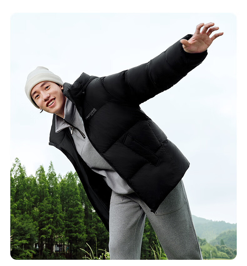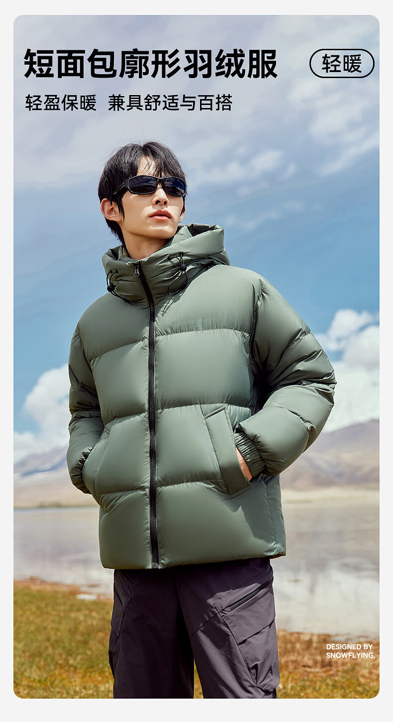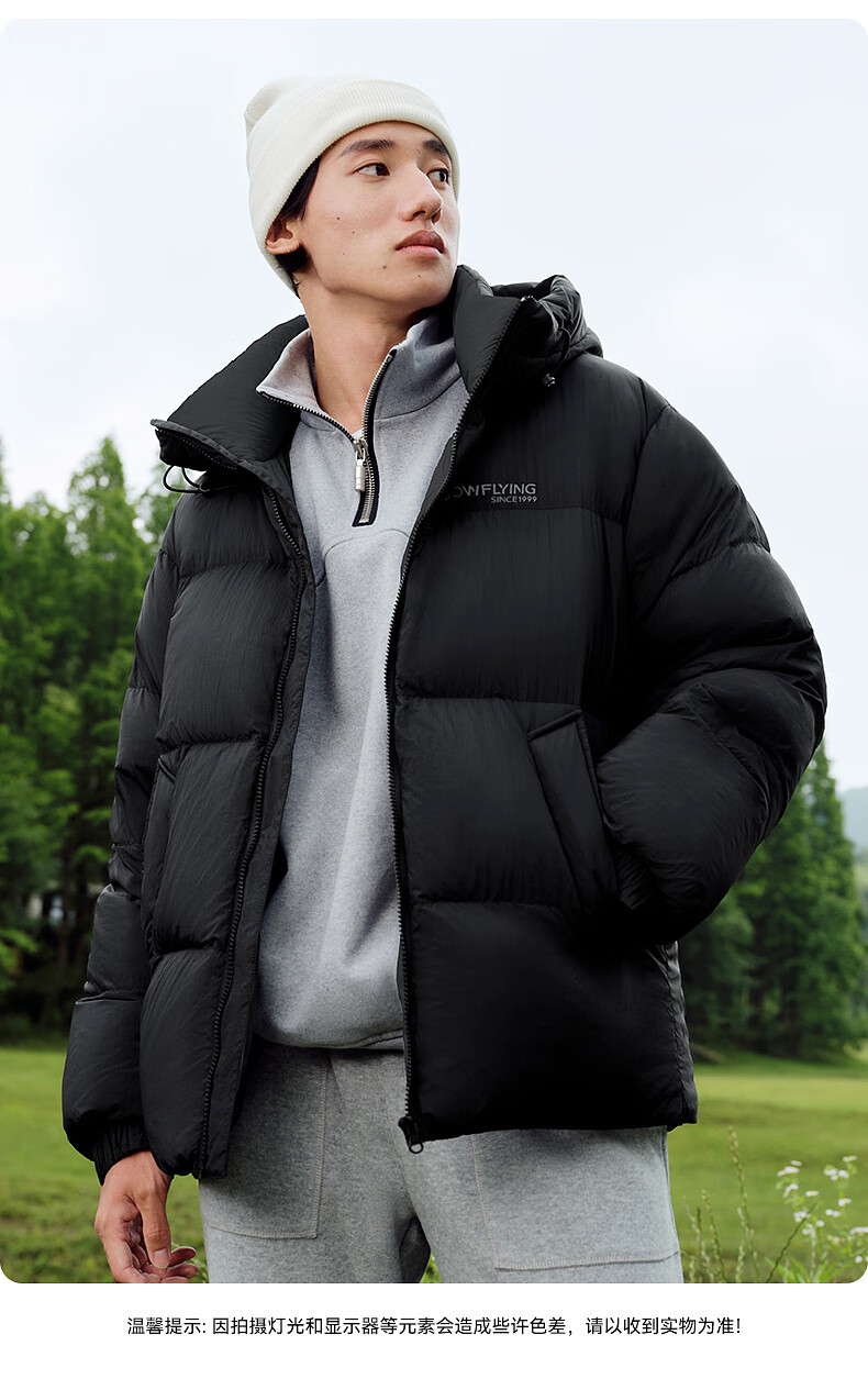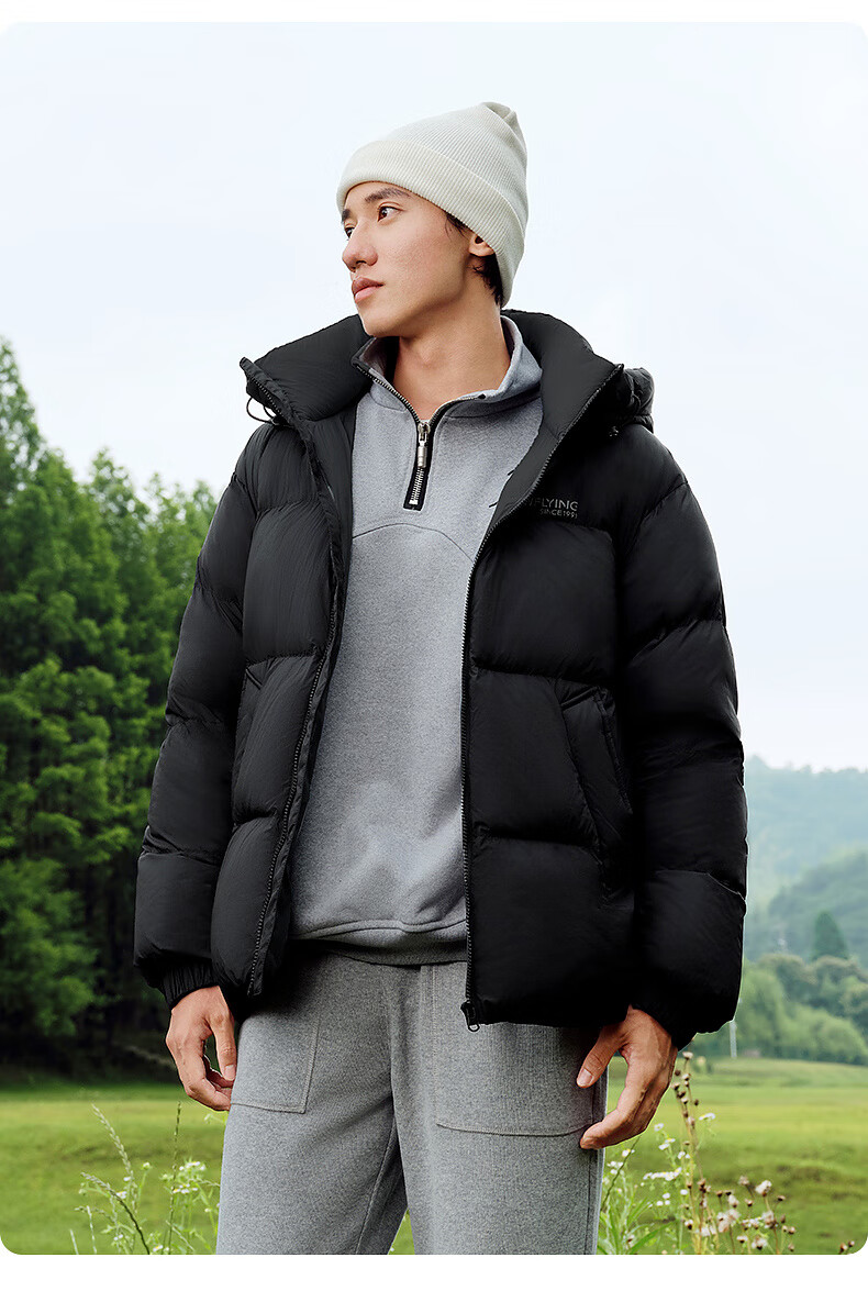雪中飞【零压系列】新款短款经典廓形面包羽绒服轻盈保暖男士拉链插袋 黑色|8056 L 175/96A