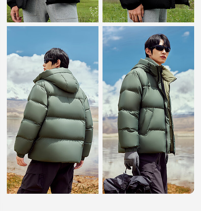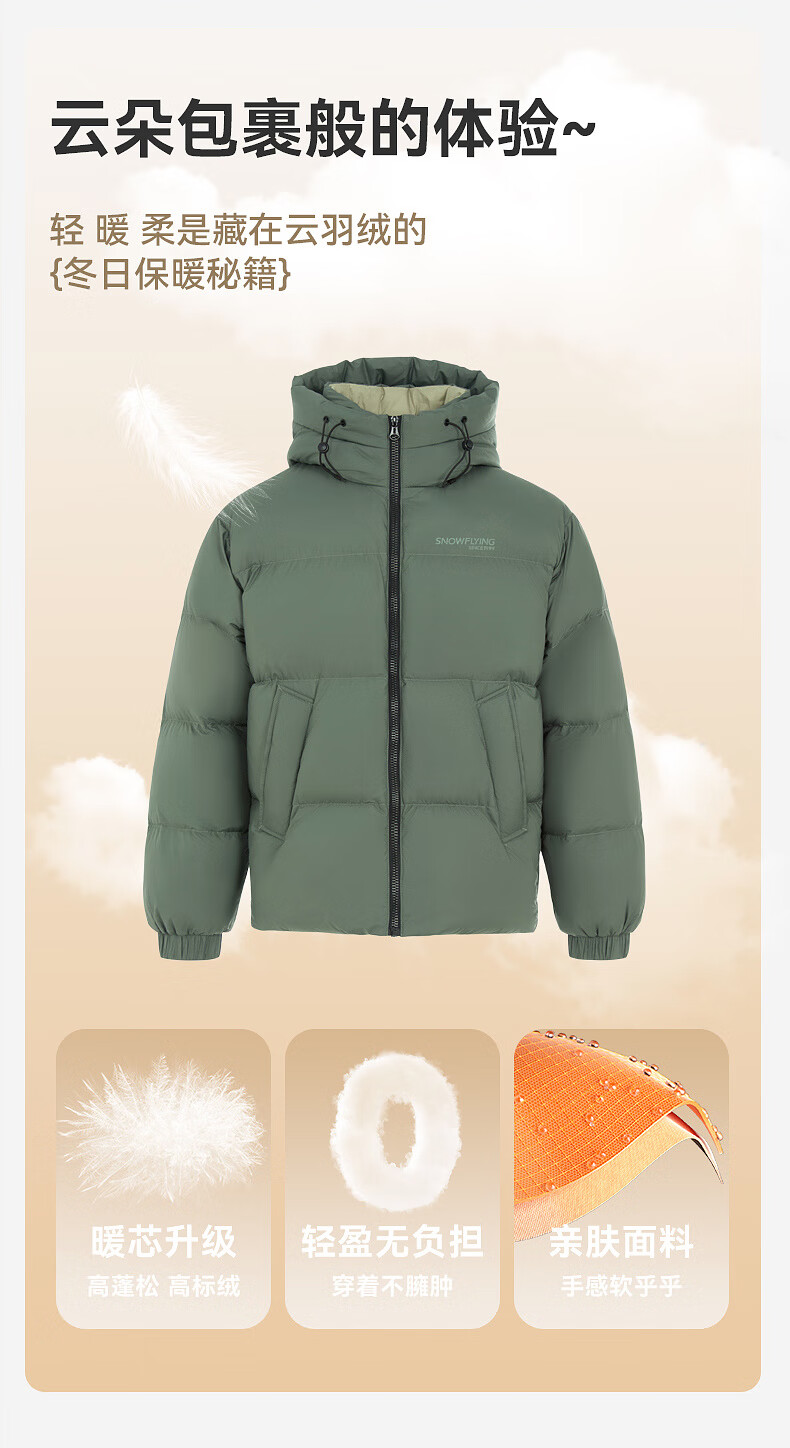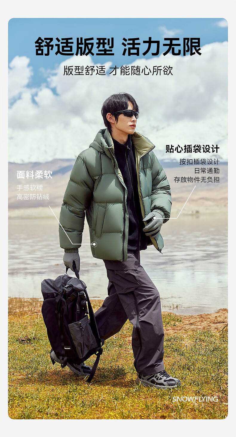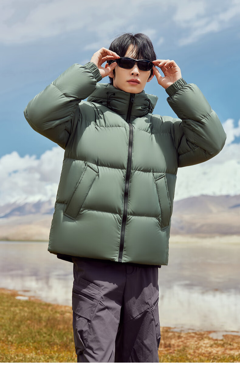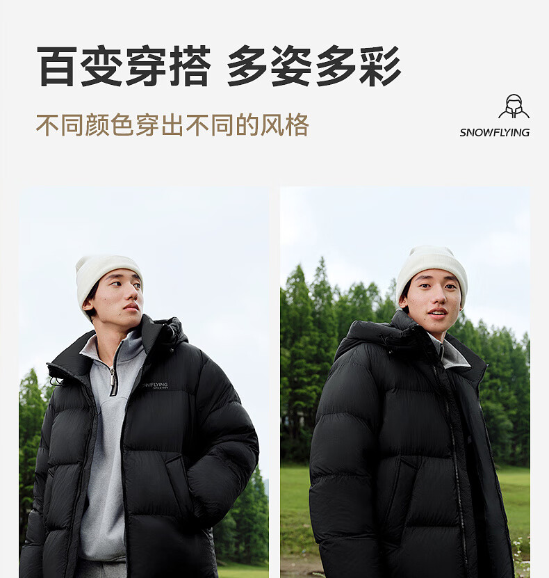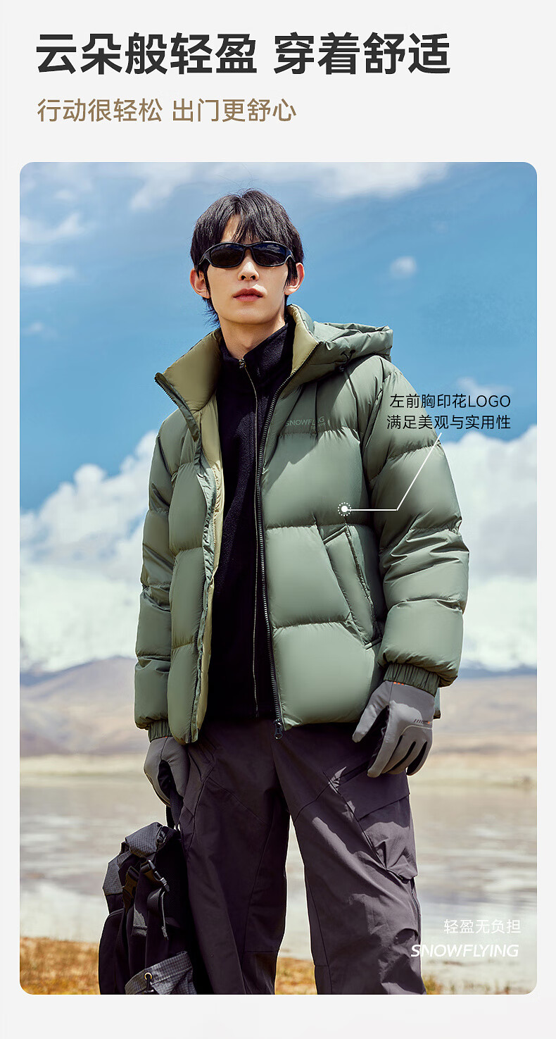 雪中飞【零压系列】新款短款经典廓形面包羽绒服轻盈保暖男士拉链插袋 黑色|8056 L 175/96A
