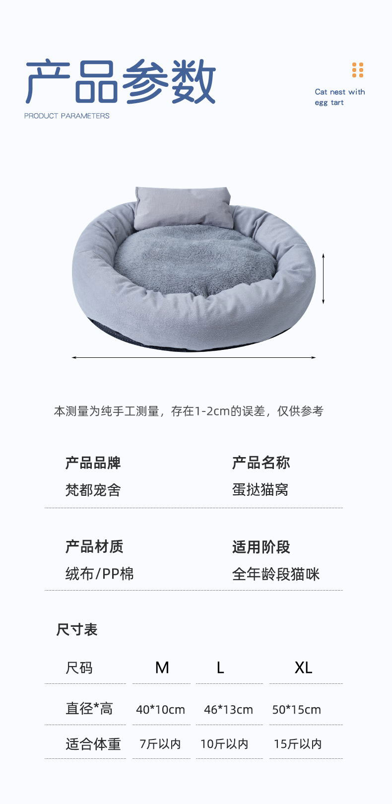 梵都宠舍猫窝冬季保暖蛋挞猫垫子四季通用猫狗窝猫床宠物窝