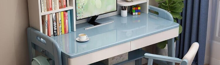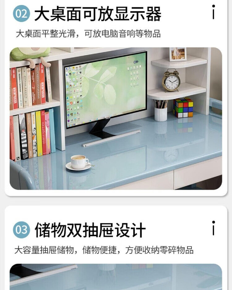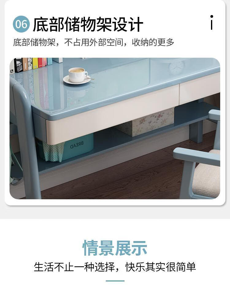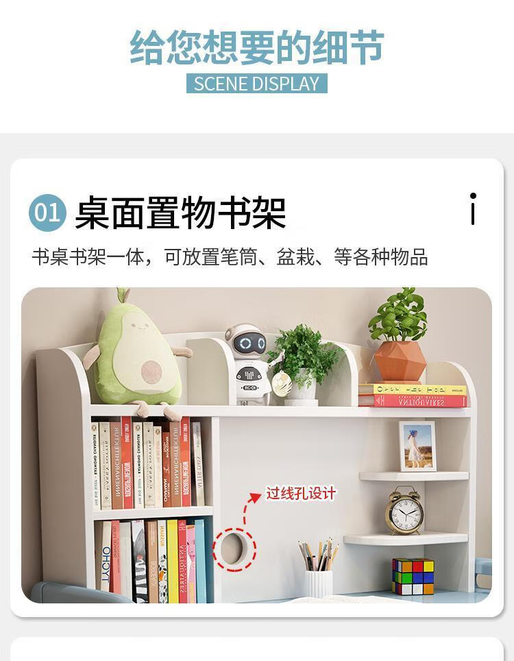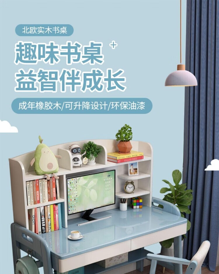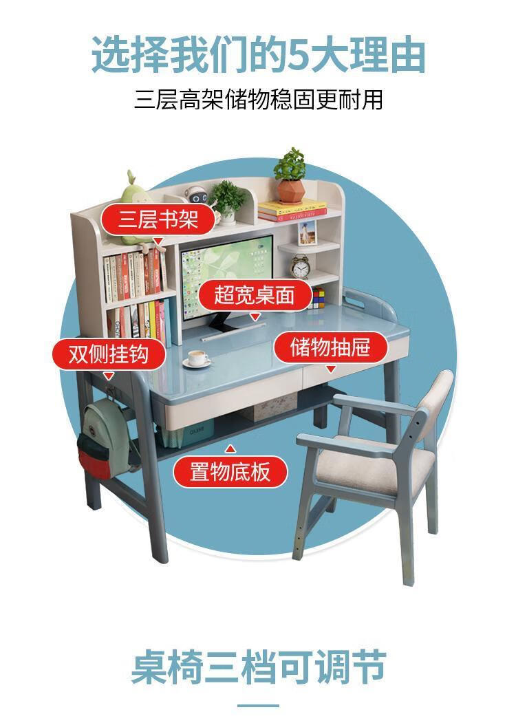 倘然之家实木学习桌男孩儿童书桌书架一体简约电脑桌家用卧室学生写字桌子 【蓝白色】单桌 实木打造. 80x60x135cm
